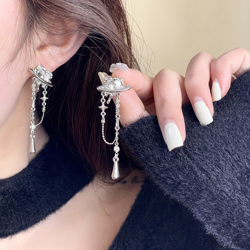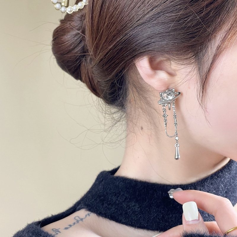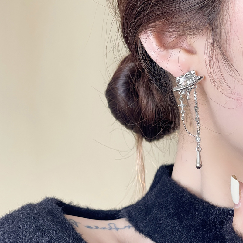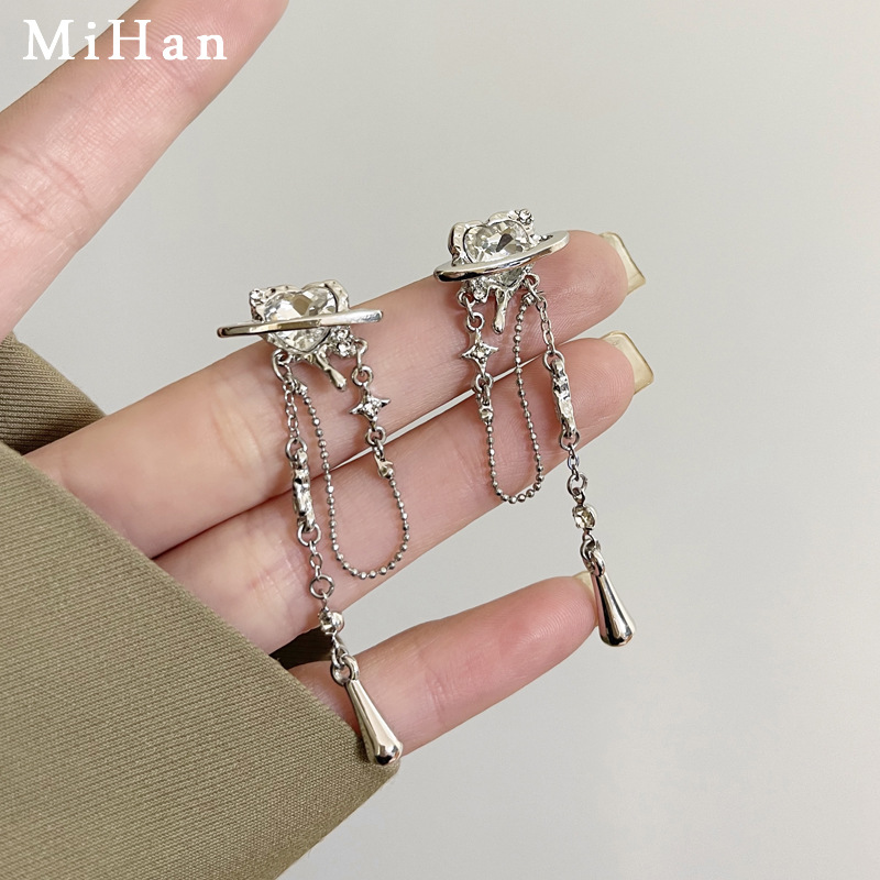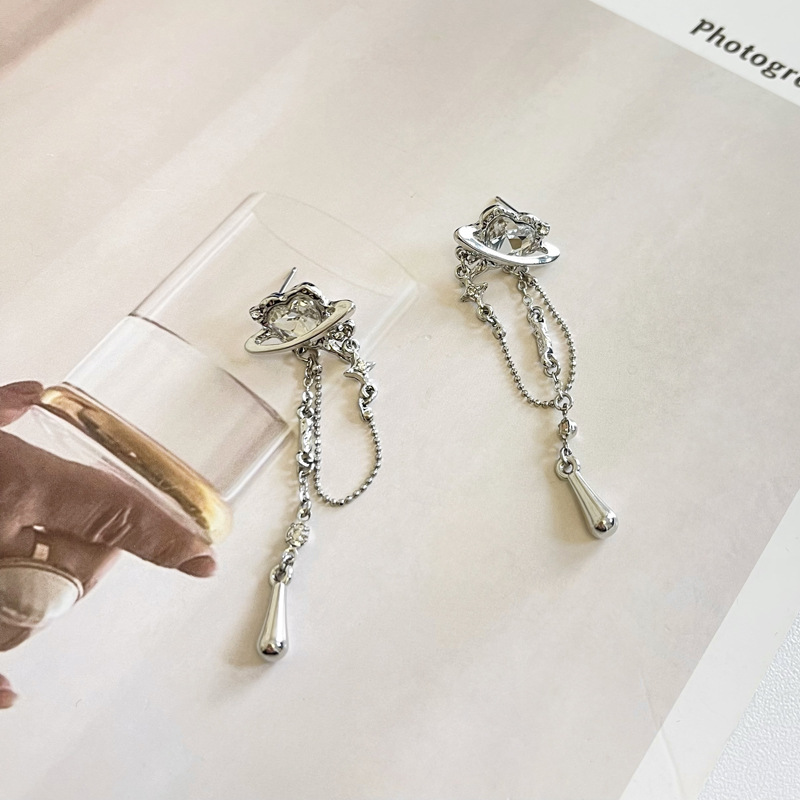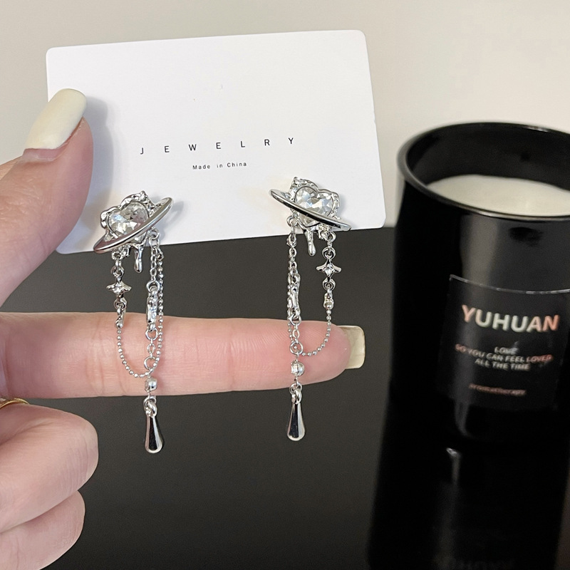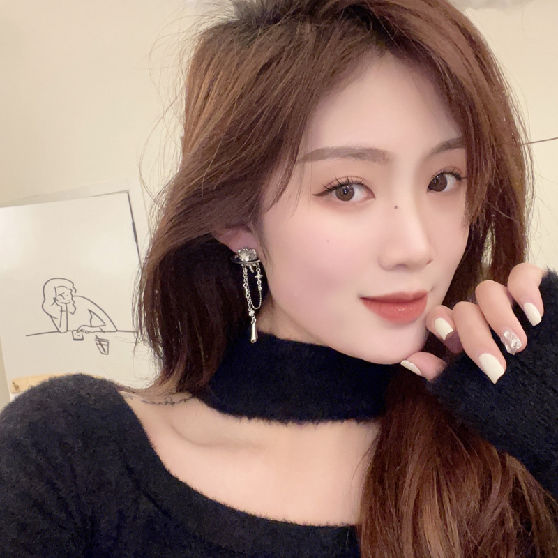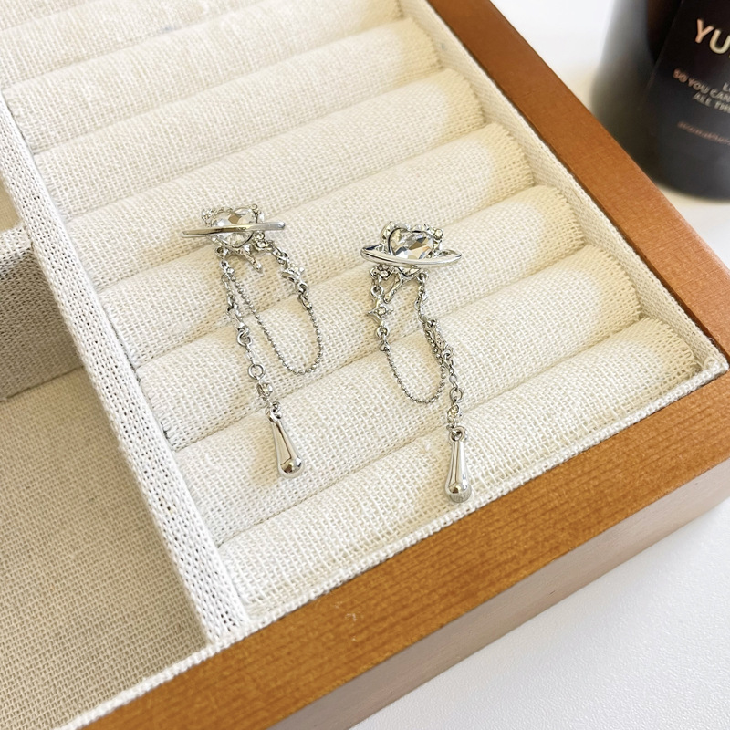 韩国甜酷简约爱心不对称链条长款流苏轻奢气质高级设计感耳钉耳饰