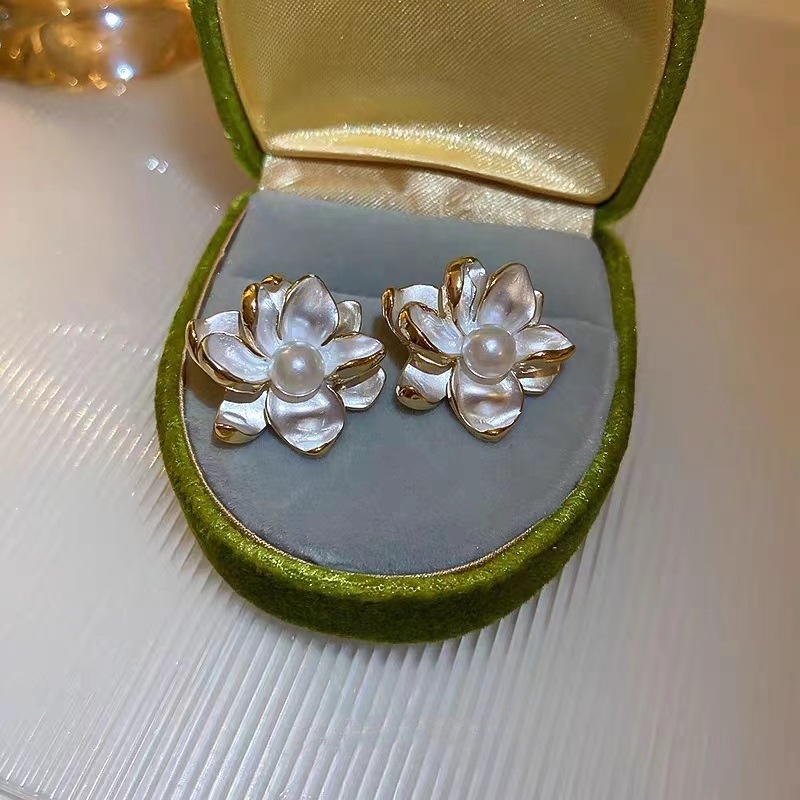 韩国珍珠滴油花朵时尚百搭网红轻奢个性高级设计感耳钉耳饰