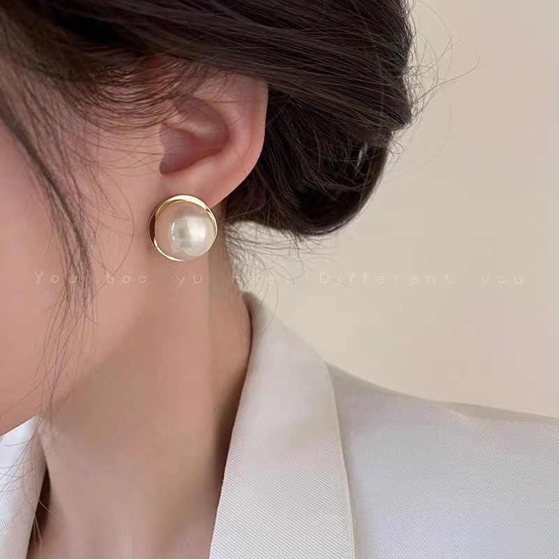 韩国冷淡风几何金属珍珠耳环个性气质高级设计感耳钉耳饰