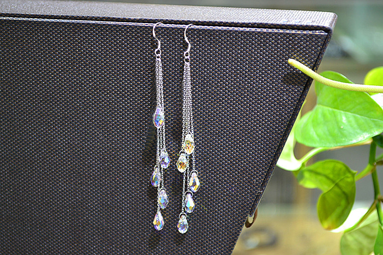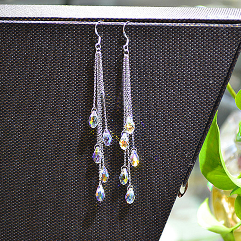 韩国水晶水滴简约长款流苏气质高级设计感耳钉耳饰