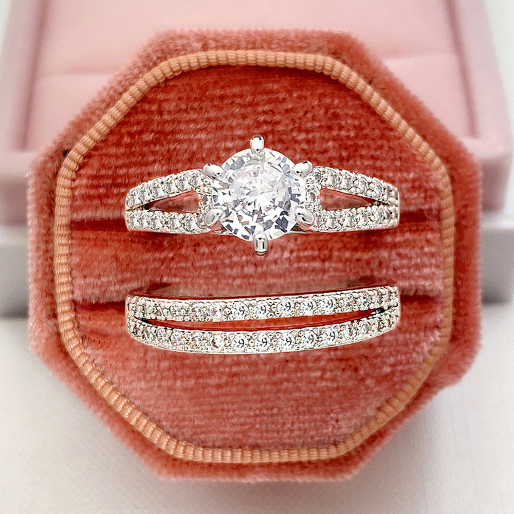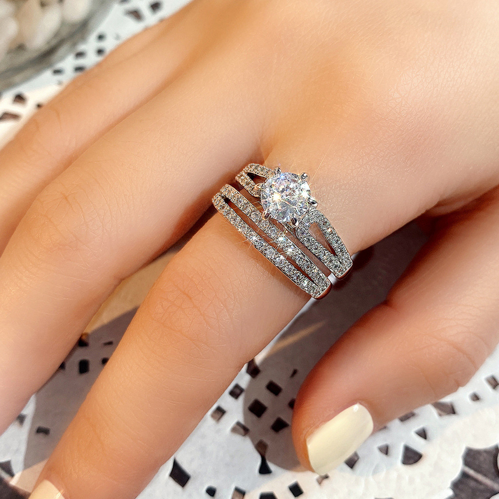 【真金电镀】韩国简约镶钻圆形奢华小众轻奢气质两件套套开口套戒【环保】