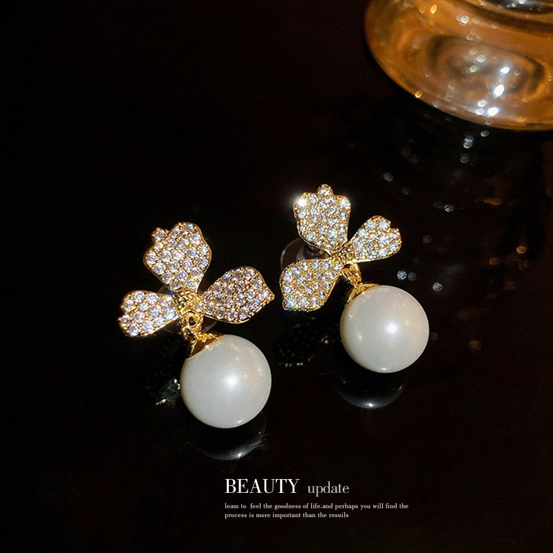 韩国简约超仙轻奢时尚镶钻花朵珍珠小众气质高级设计感耳钉耳饰