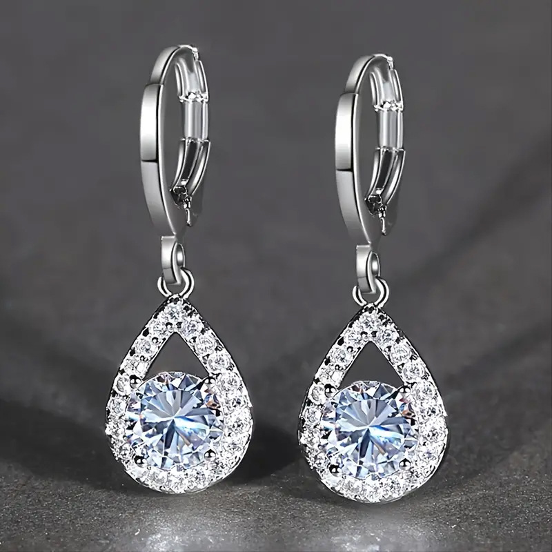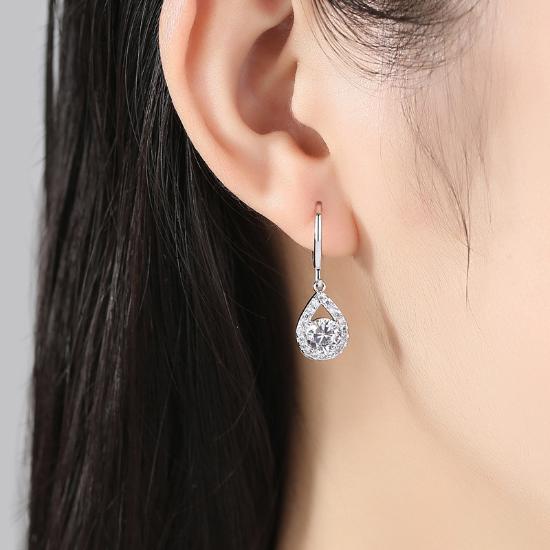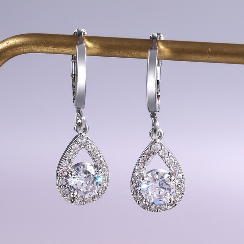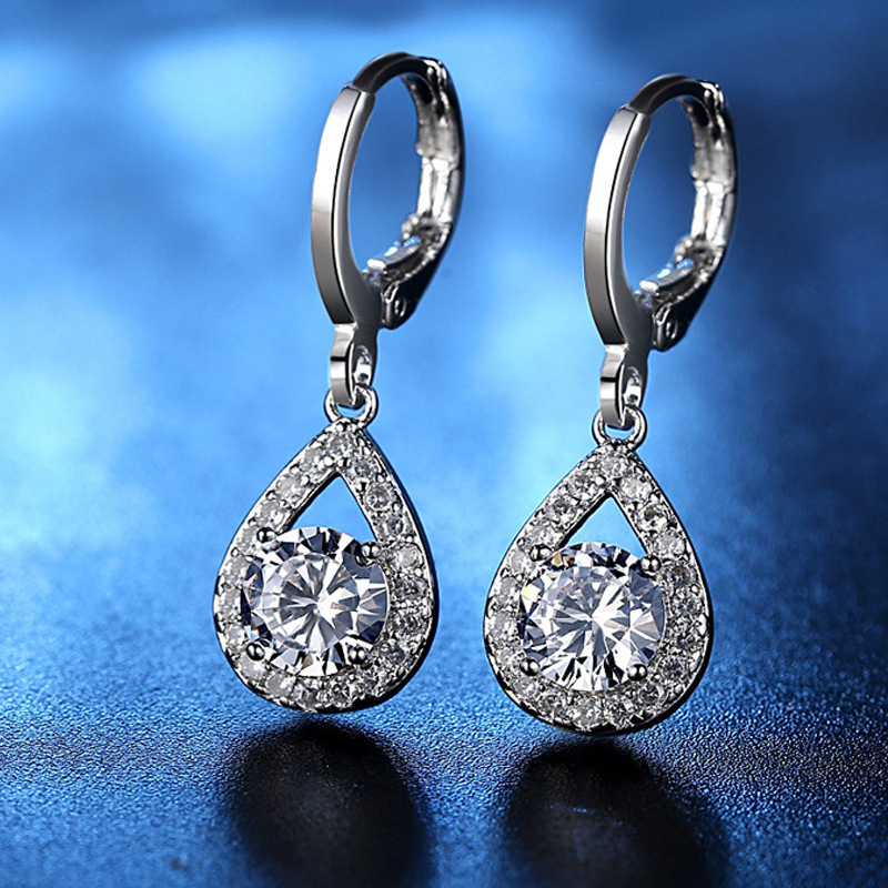 【真金电镀】韩国简约复古欧美天使之泪镶满钻水滴耳扣耳饰【环保】