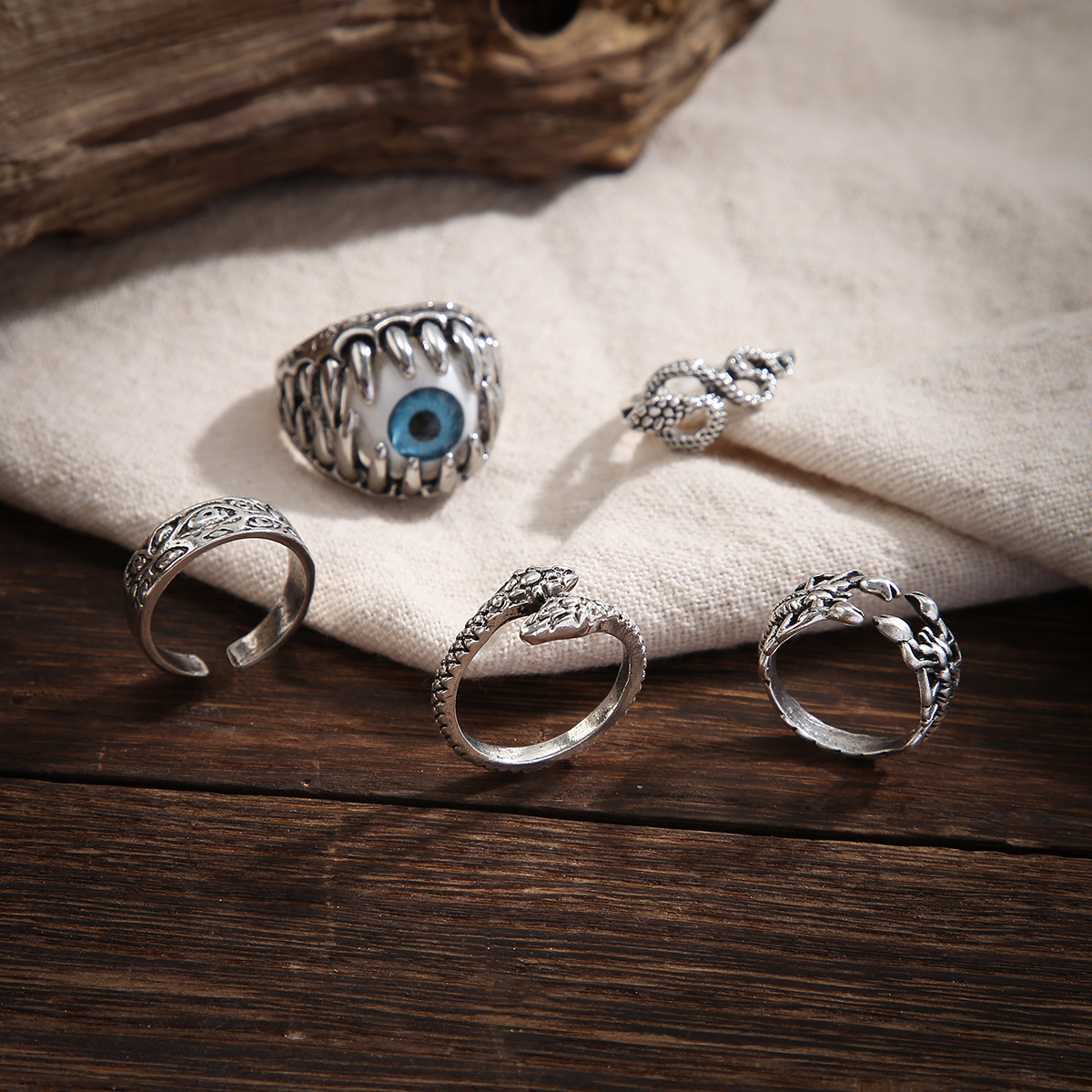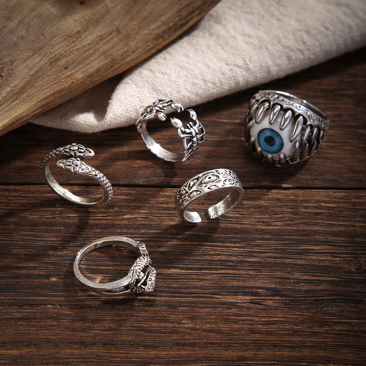 韩国简约欧美恶魔之眼蛇蝎镂空多元素轻奢小众复古男款戒指五件套