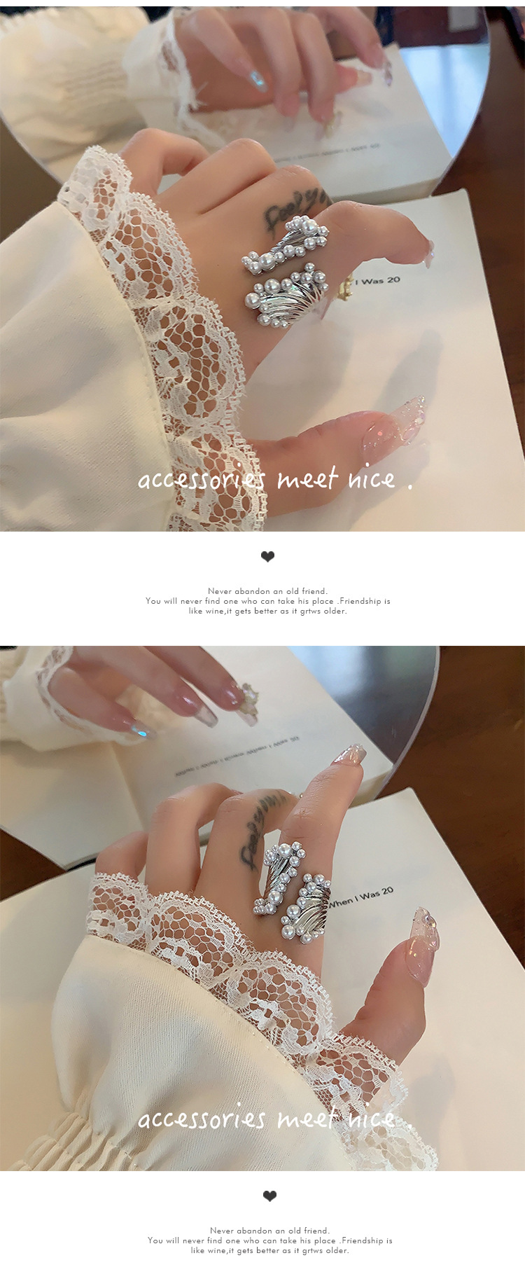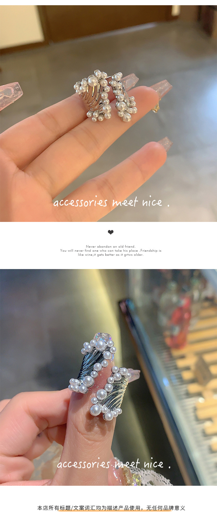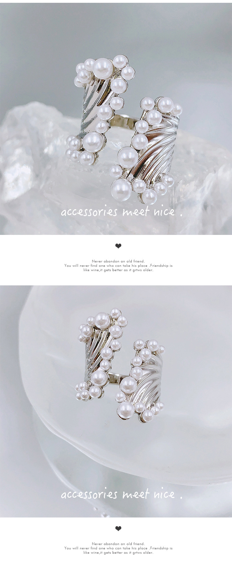 韩国艺术人鱼之歌珍珠戒指不规则交错宝石食指戒指女ins轻奢小众