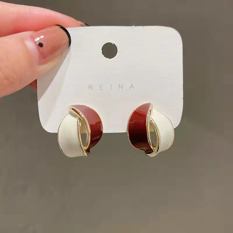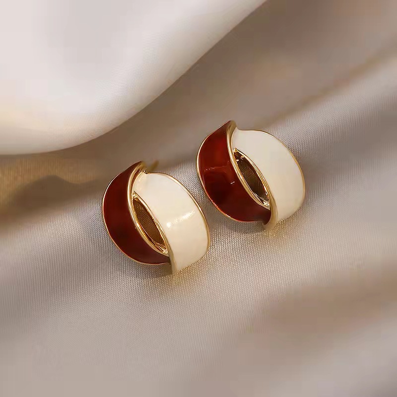 韩国滴油拼色耳环女法式高级感小众设计耳钉2024年新款潮女