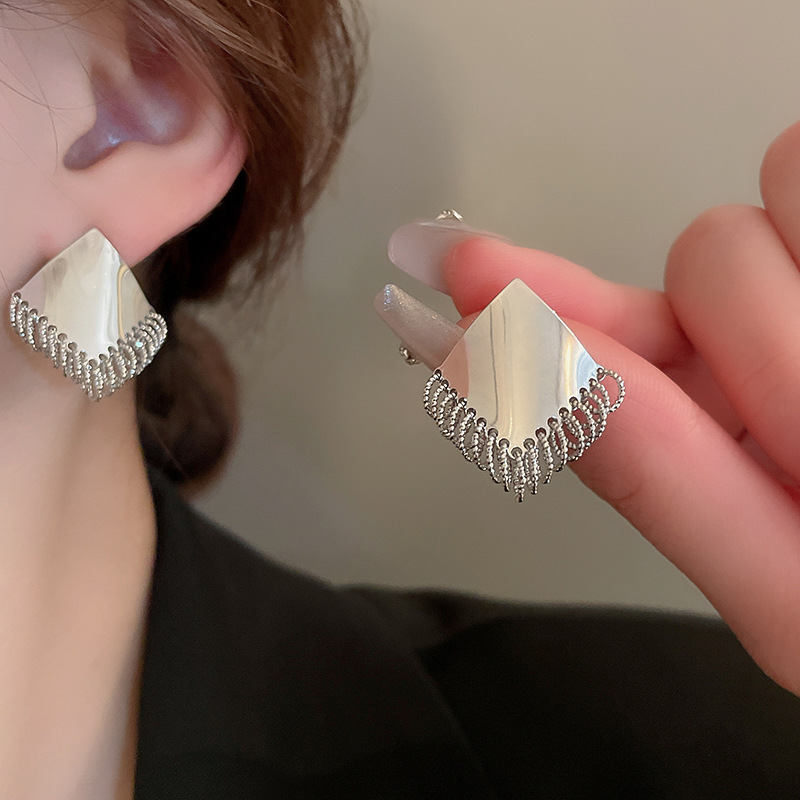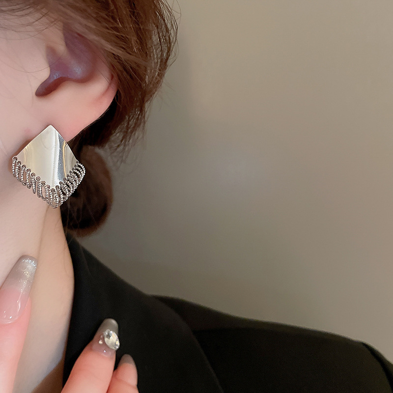 韩国银色菱形多圈耳钉设计感个性百搭耳环轻奢小众冷淡风耳坠