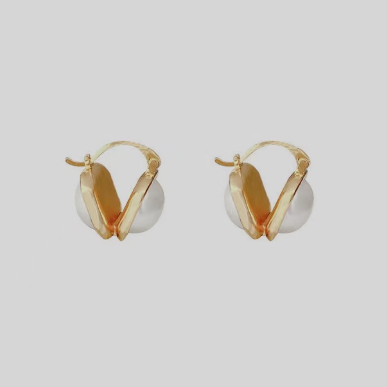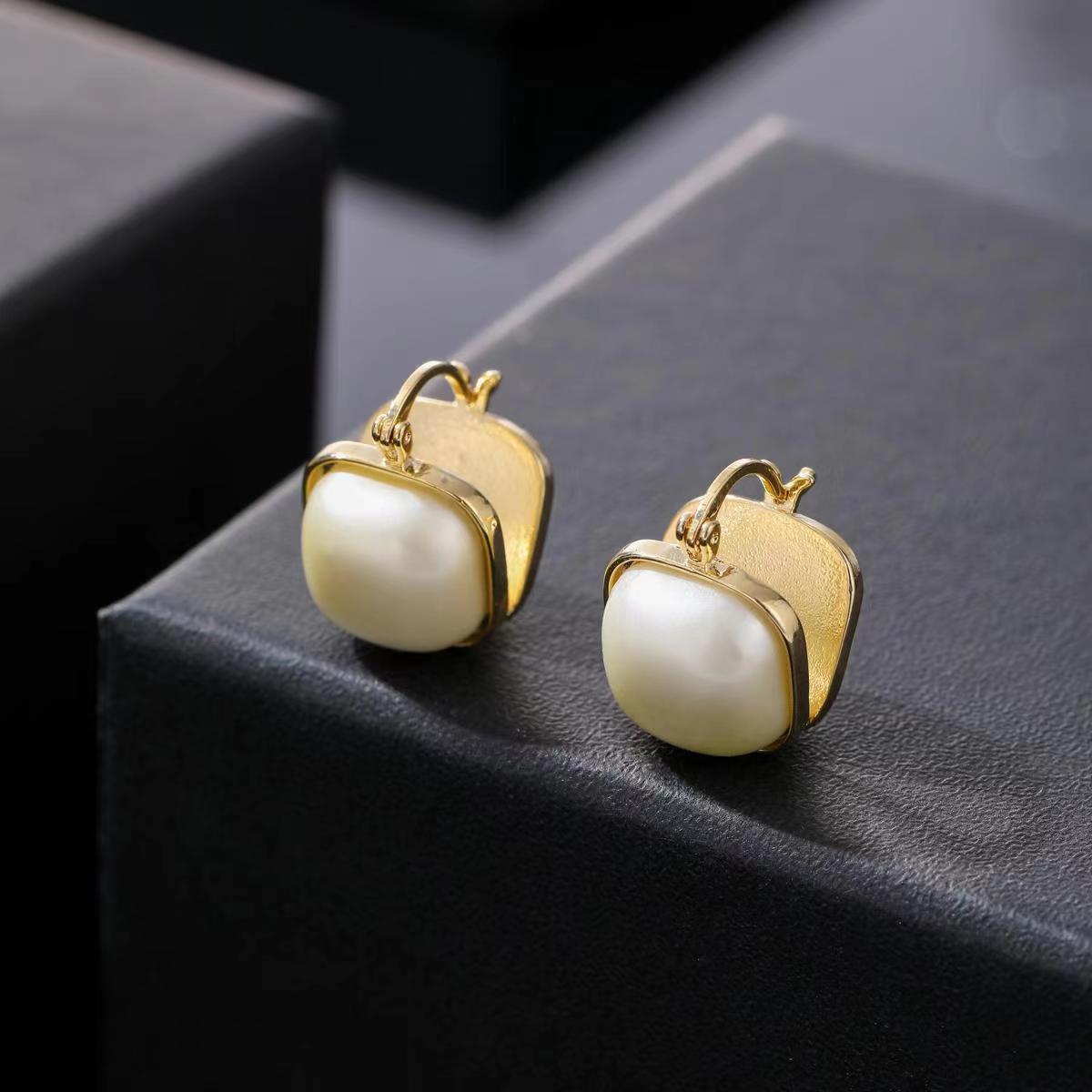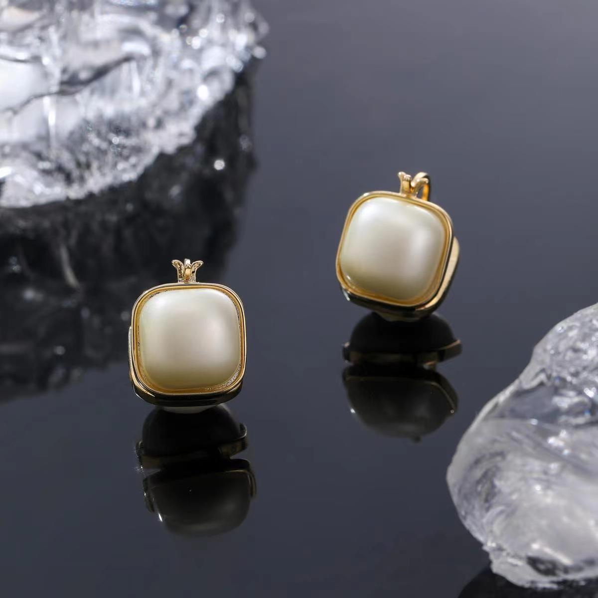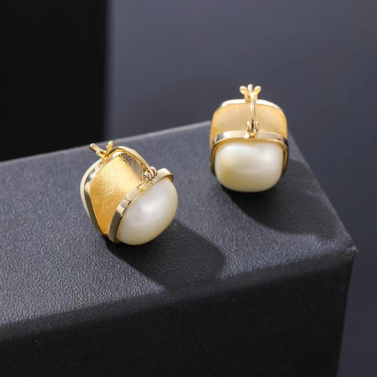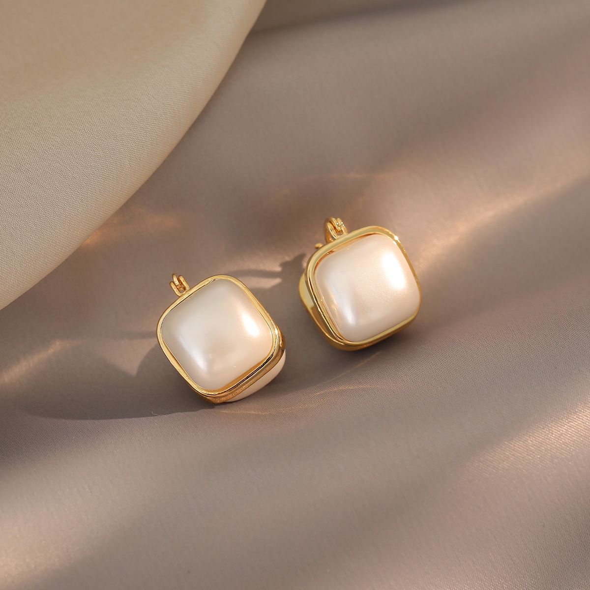 @特价韩国复古方形中古风轻奢个性首饰配饰两瓣方形仿贝珠珍珠耳扣耳环
