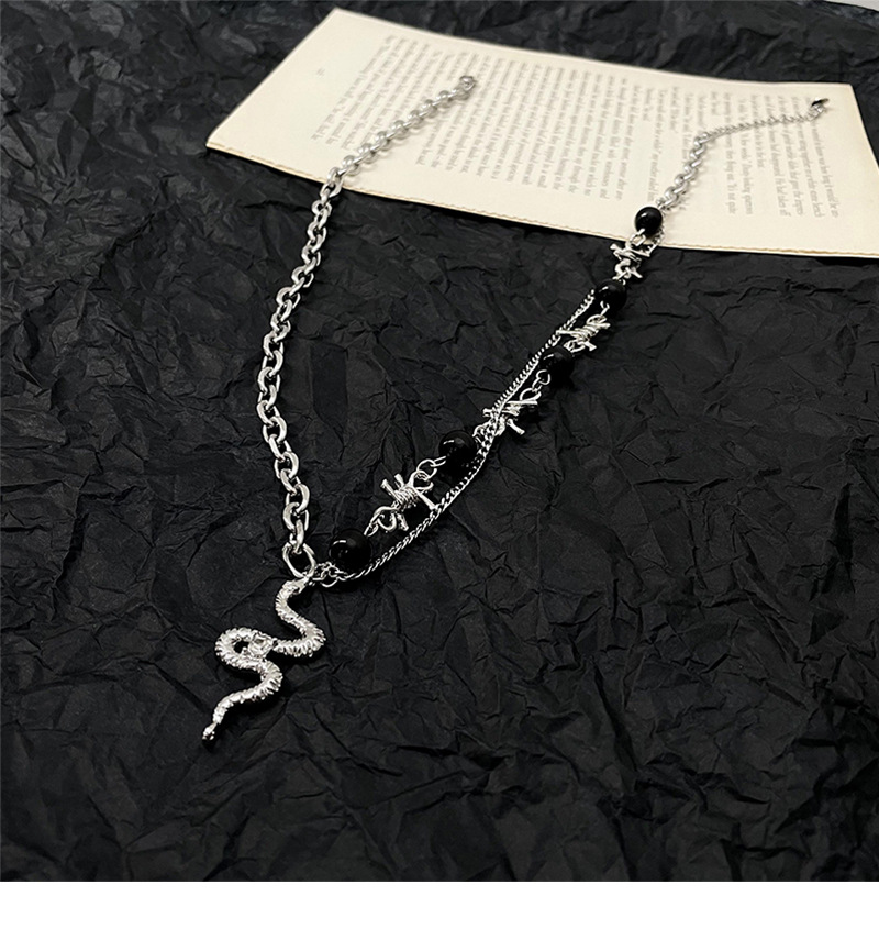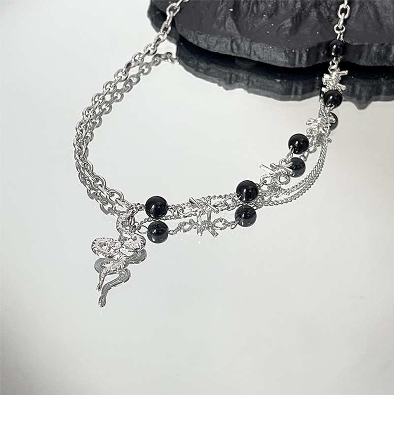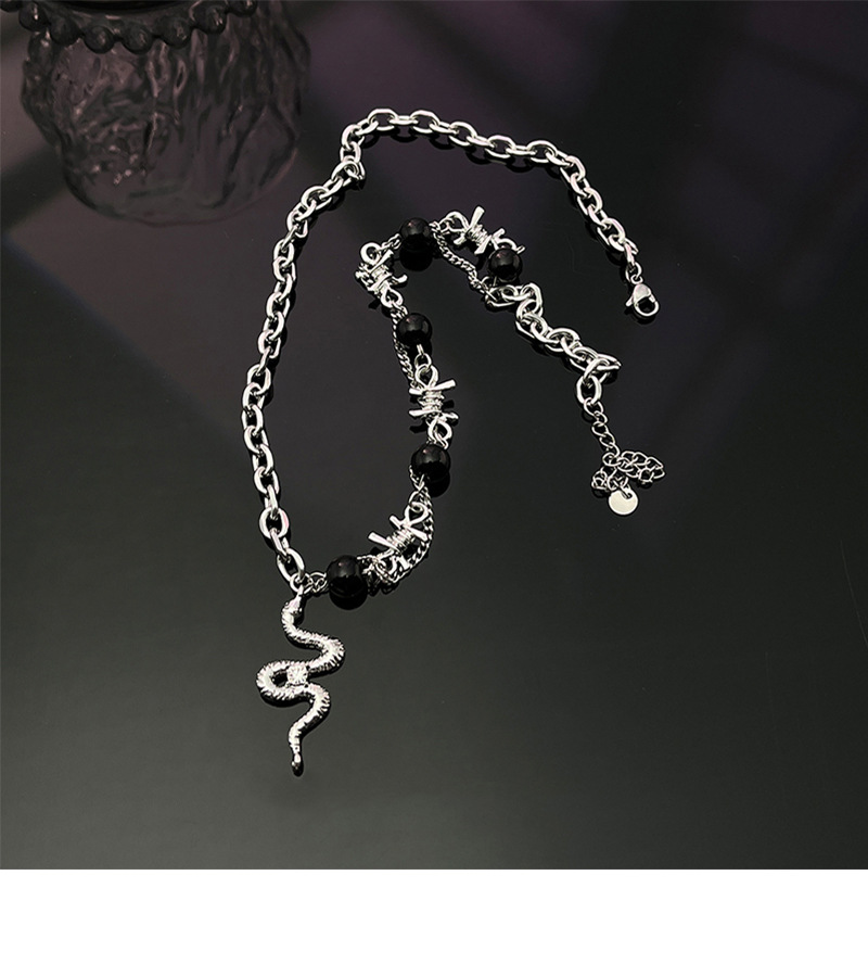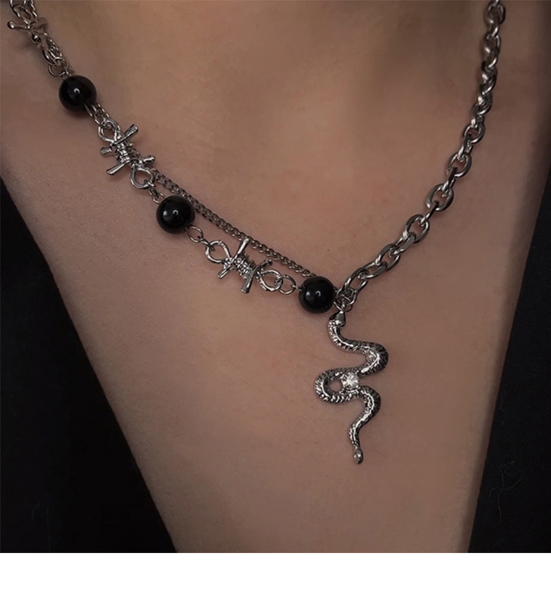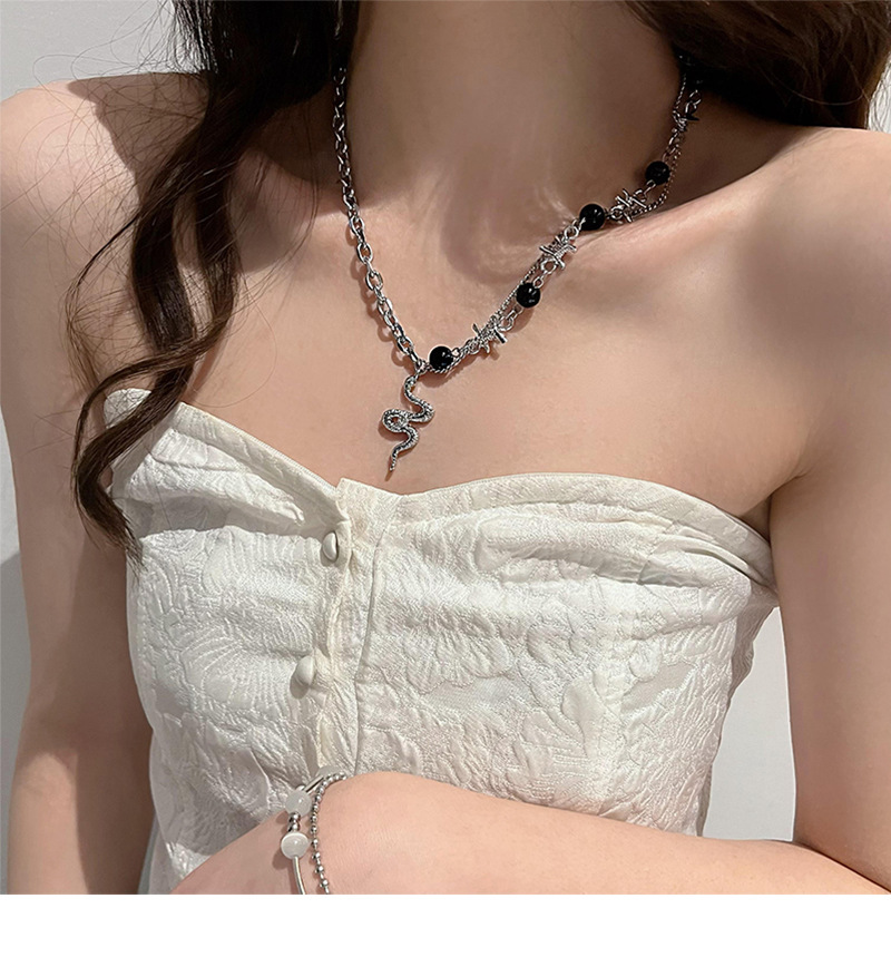 韩国小众设计水钻蛇形黑色串珠拼接链条项链ins潮嘻哈甜酷锁骨链吊坠