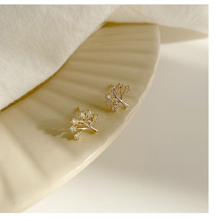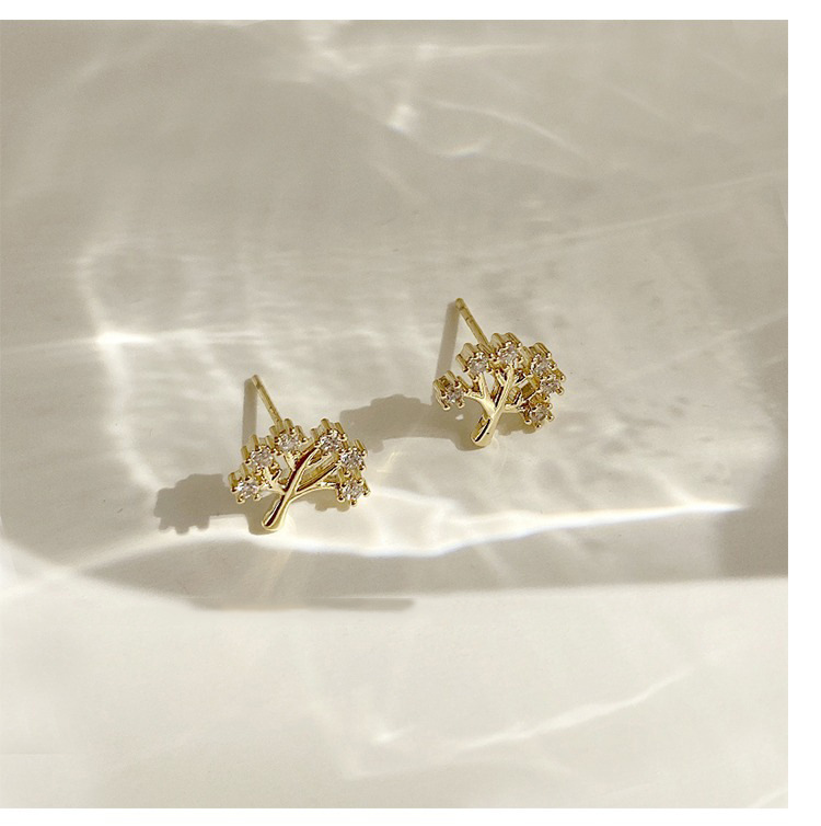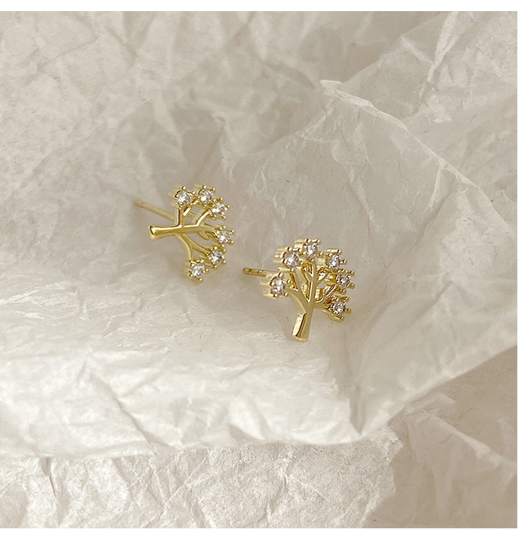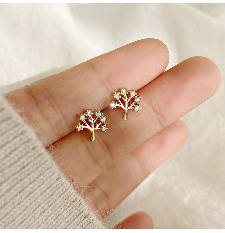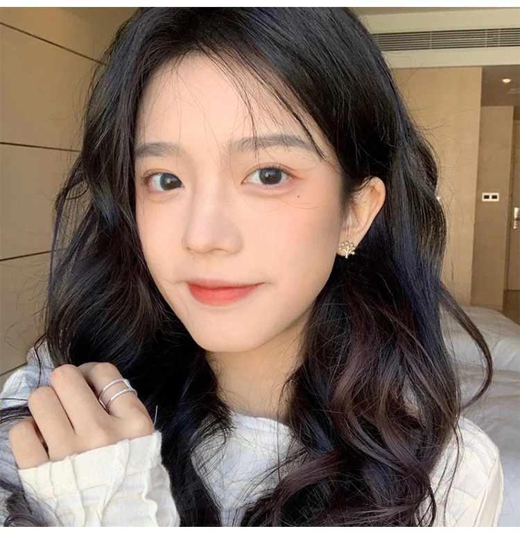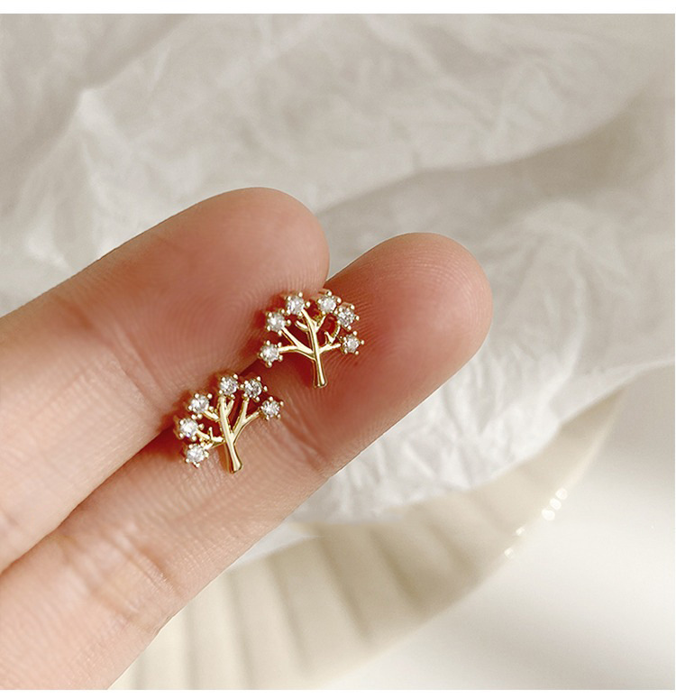韩版银迷你精致小树耳钉女温柔森系学生树叶简约耳饰潮