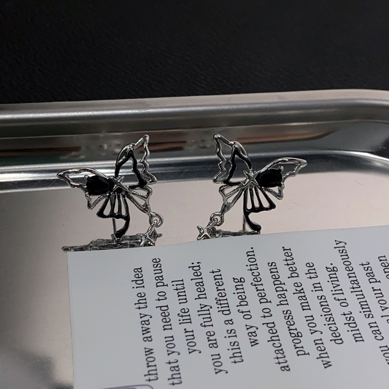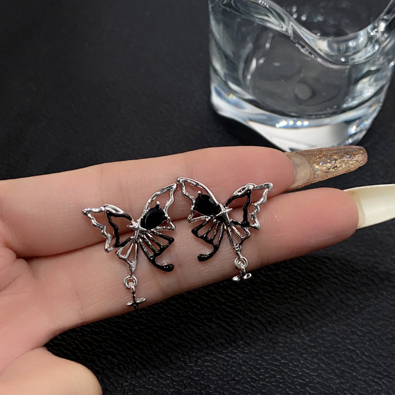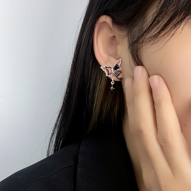 暗黑复古蝴蝶镂空耳环女甜酷轻奢ins小众设计感高级感耳饰