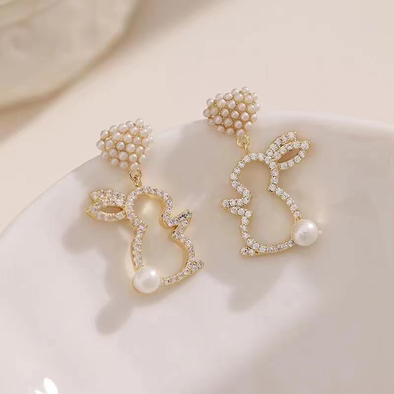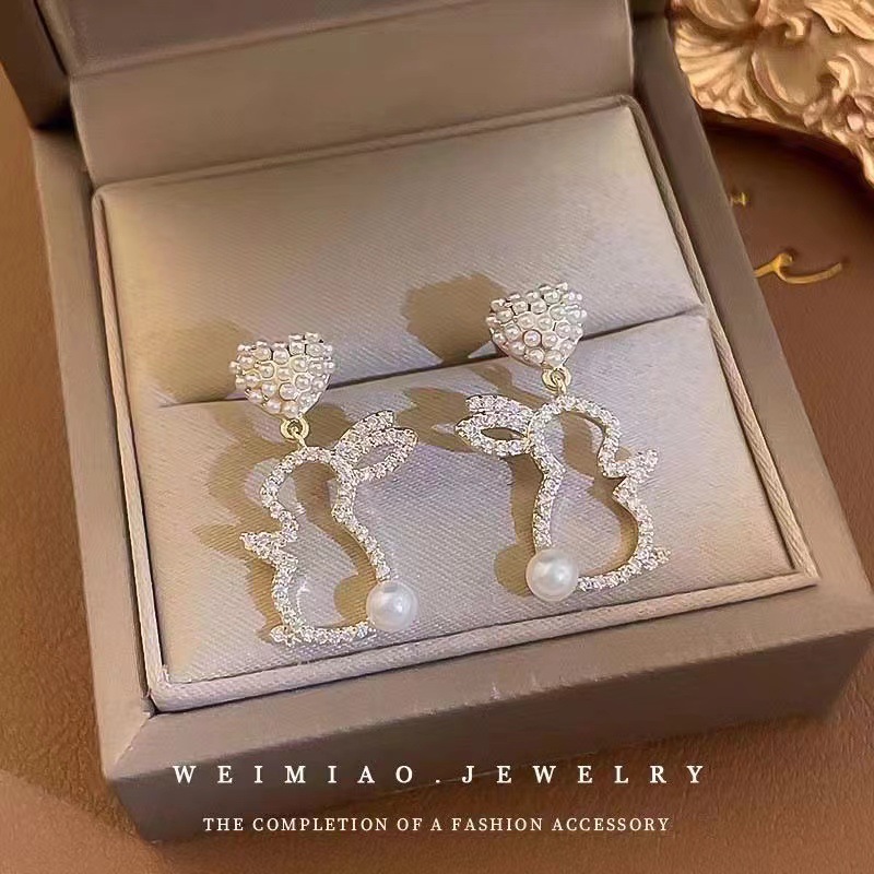 韩国高级珍珠爱心兔子耳环女时尚精致轻奢耳饰2024年新款潮