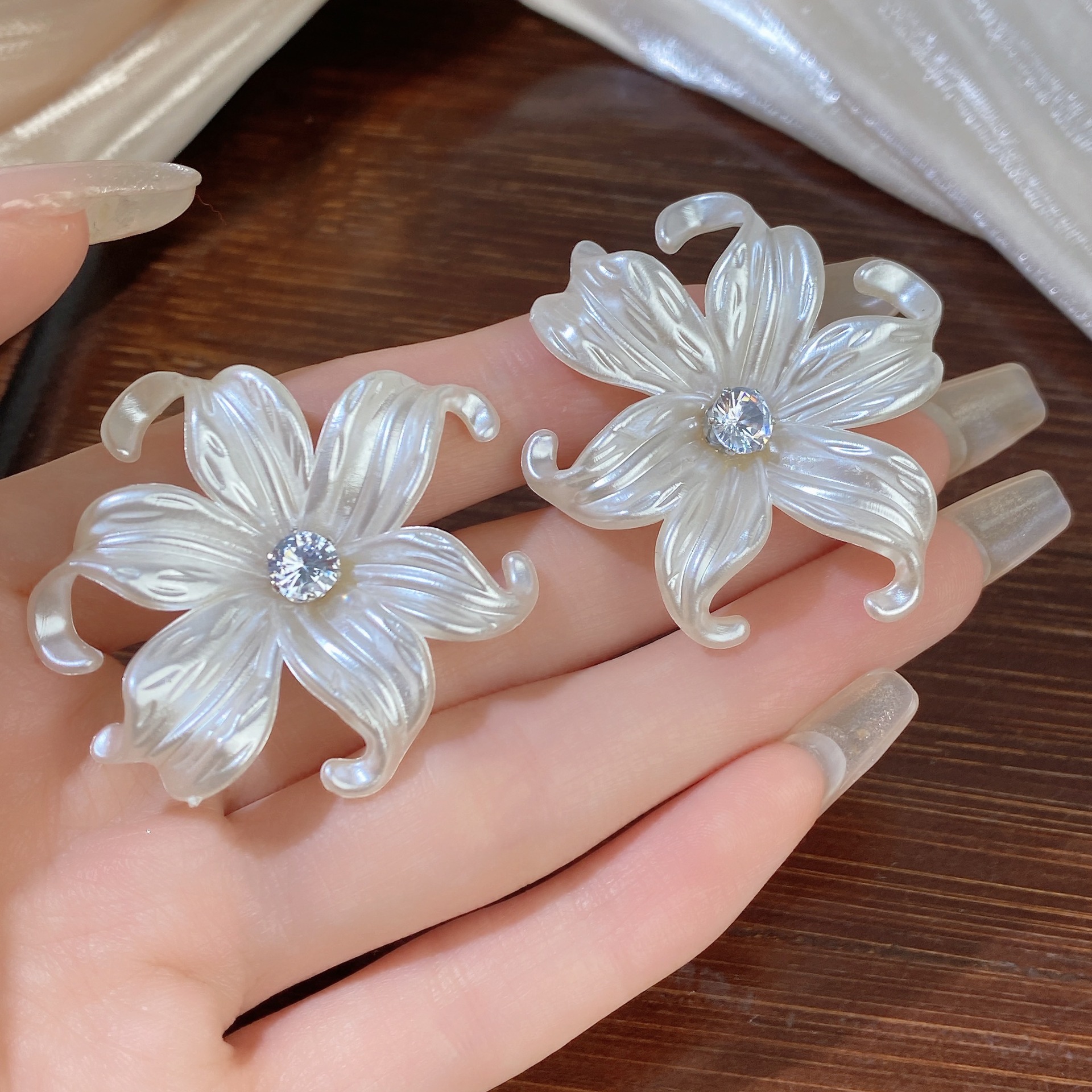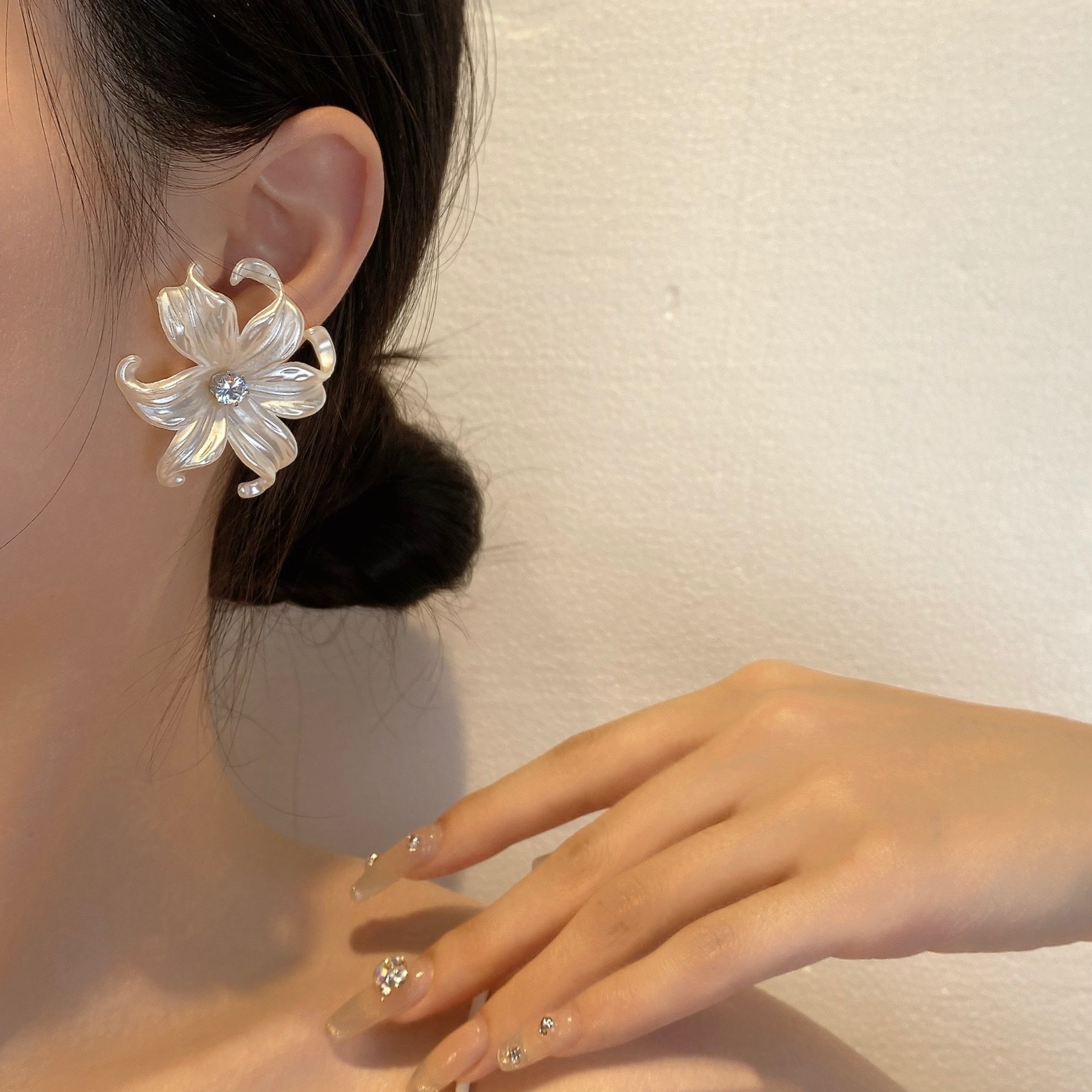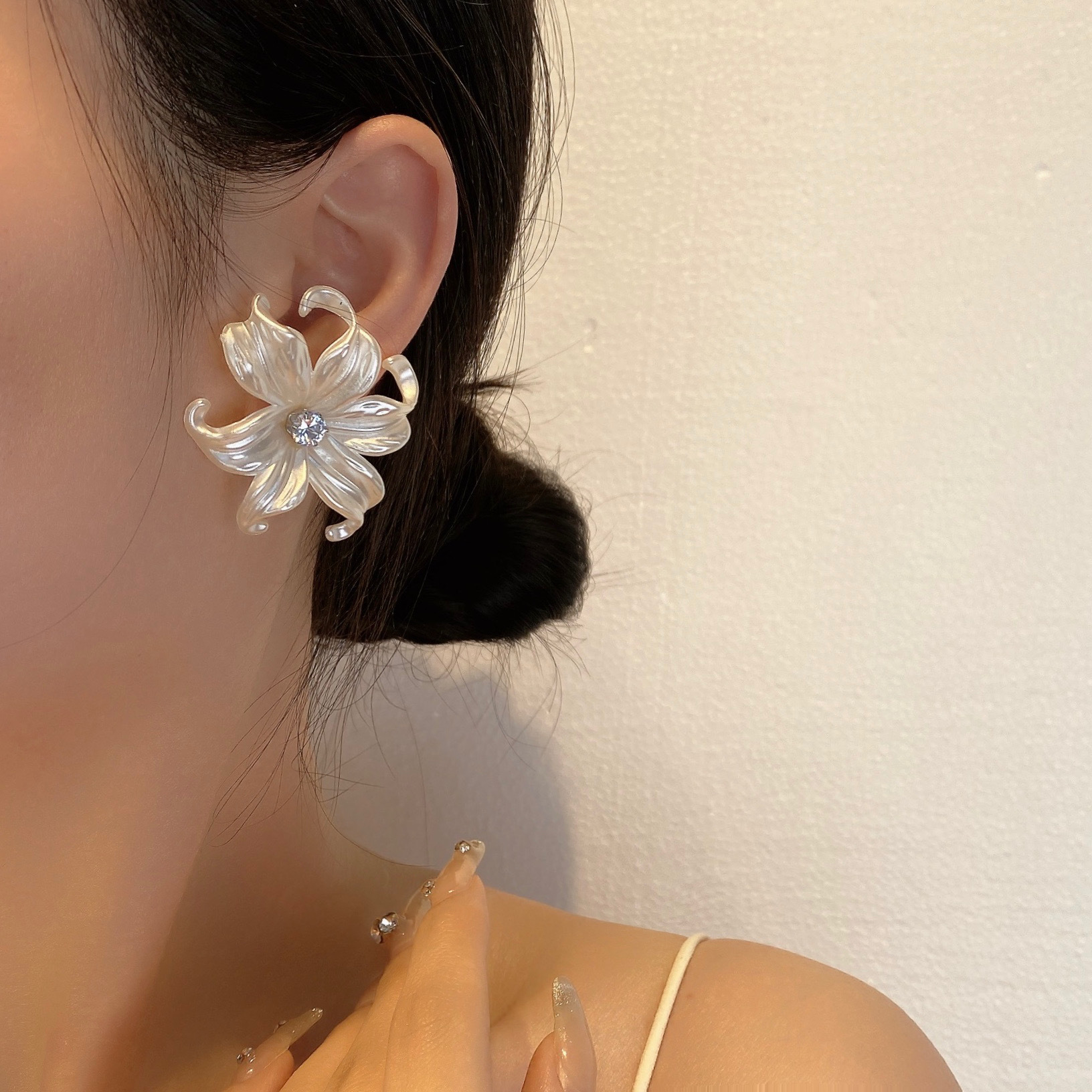 独特夸张白色大花朵耳钉女爆款潮气质小众耳环夏季高级感百搭耳饰