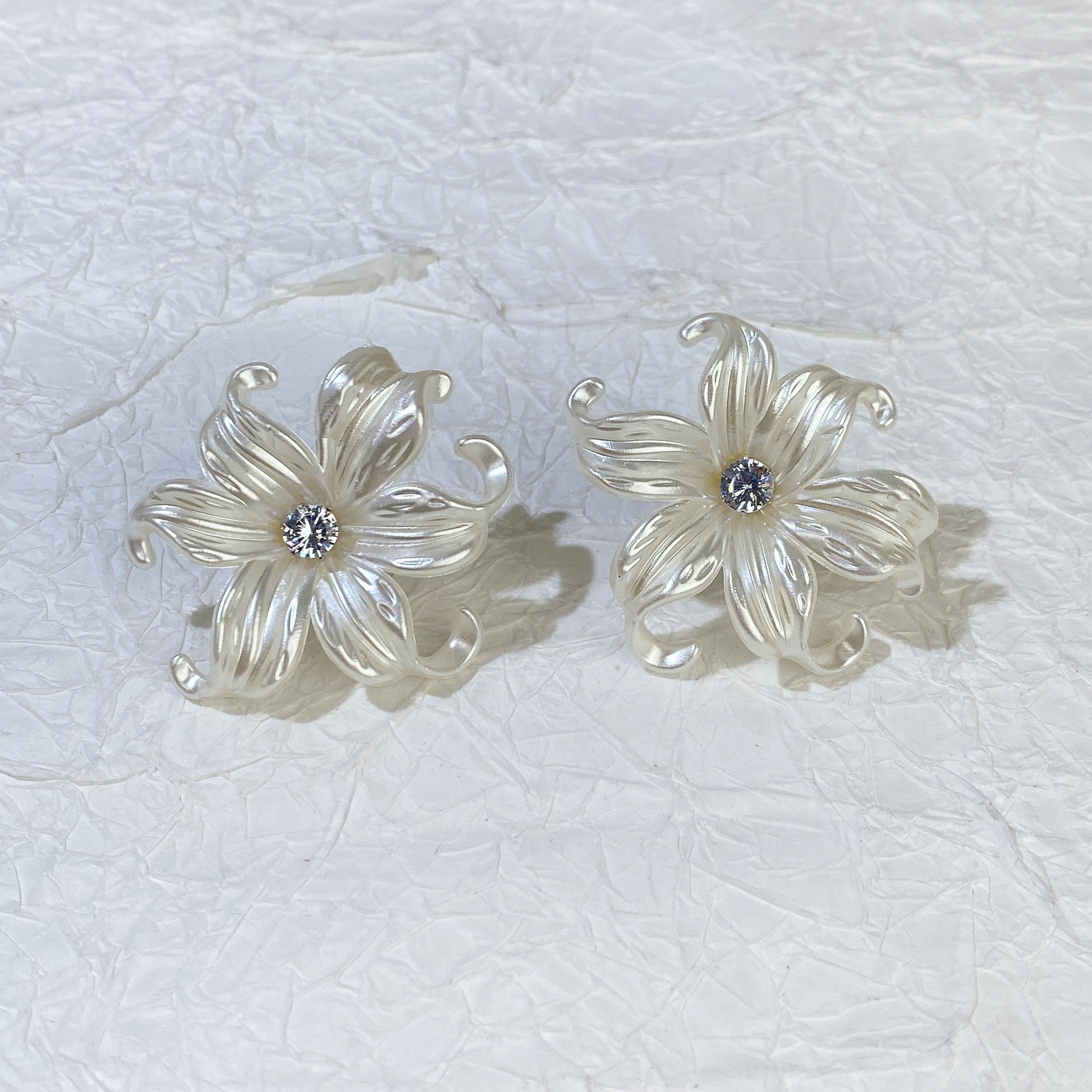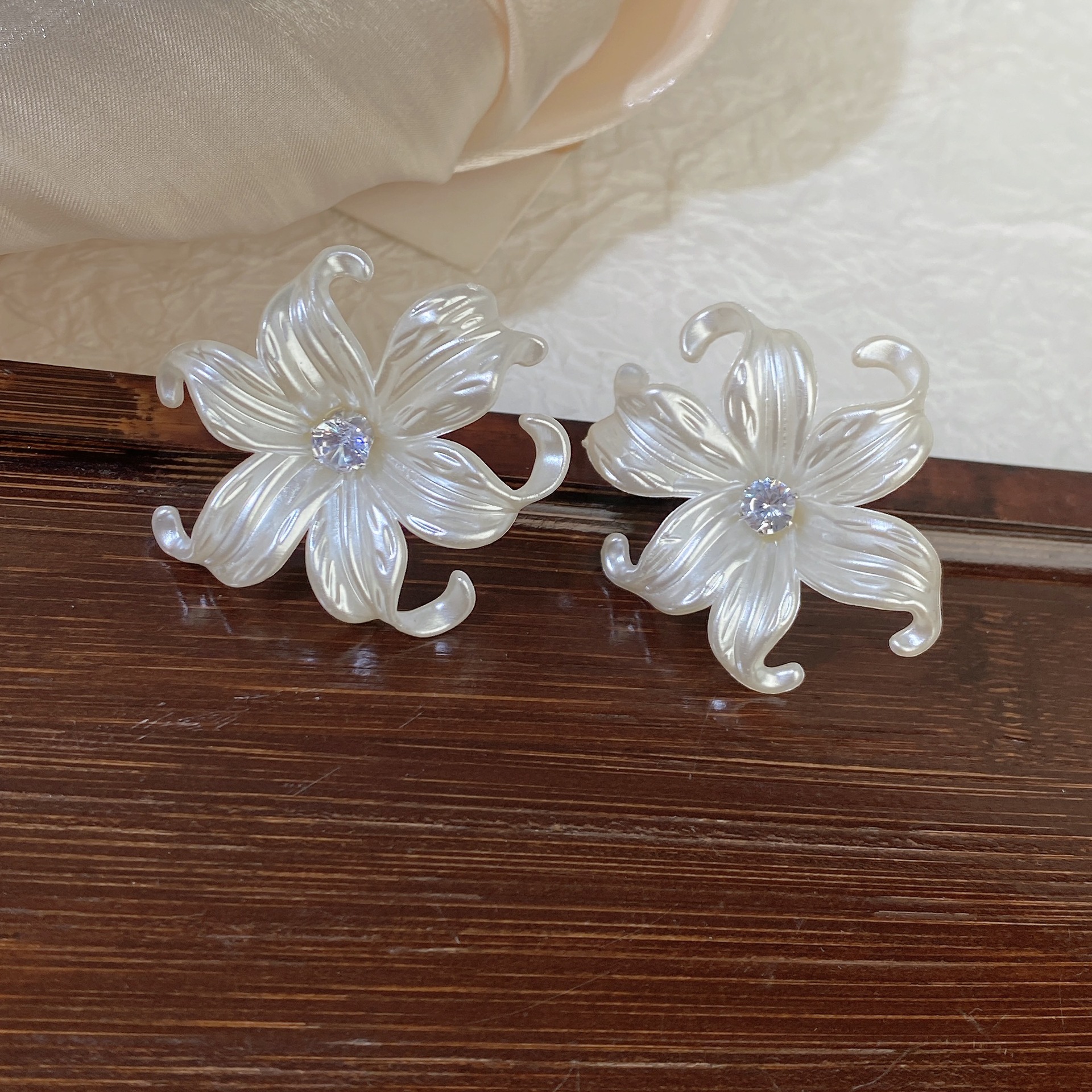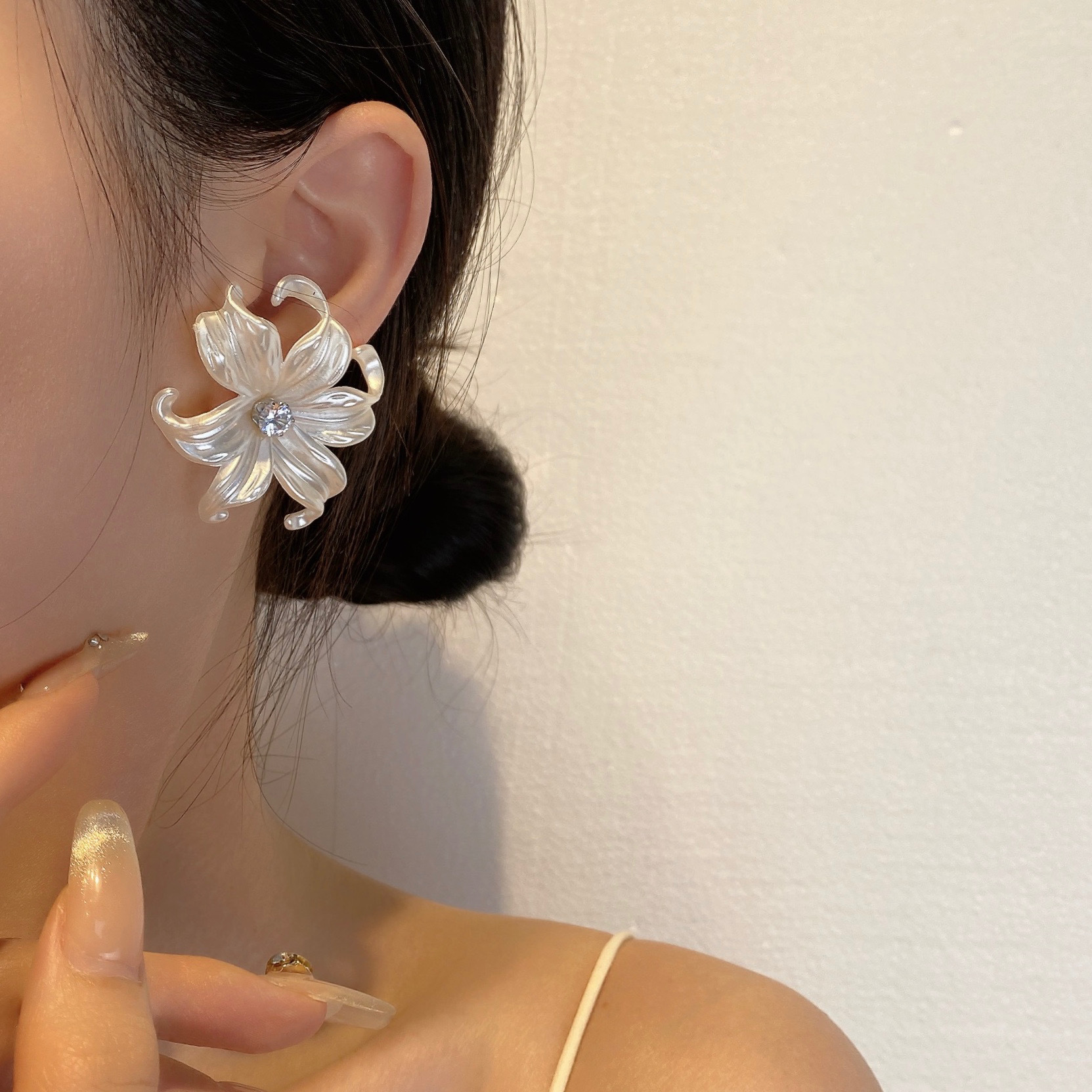 独特夸张白色大花朵耳钉女爆款潮气质小众耳环夏季高级感百搭耳饰