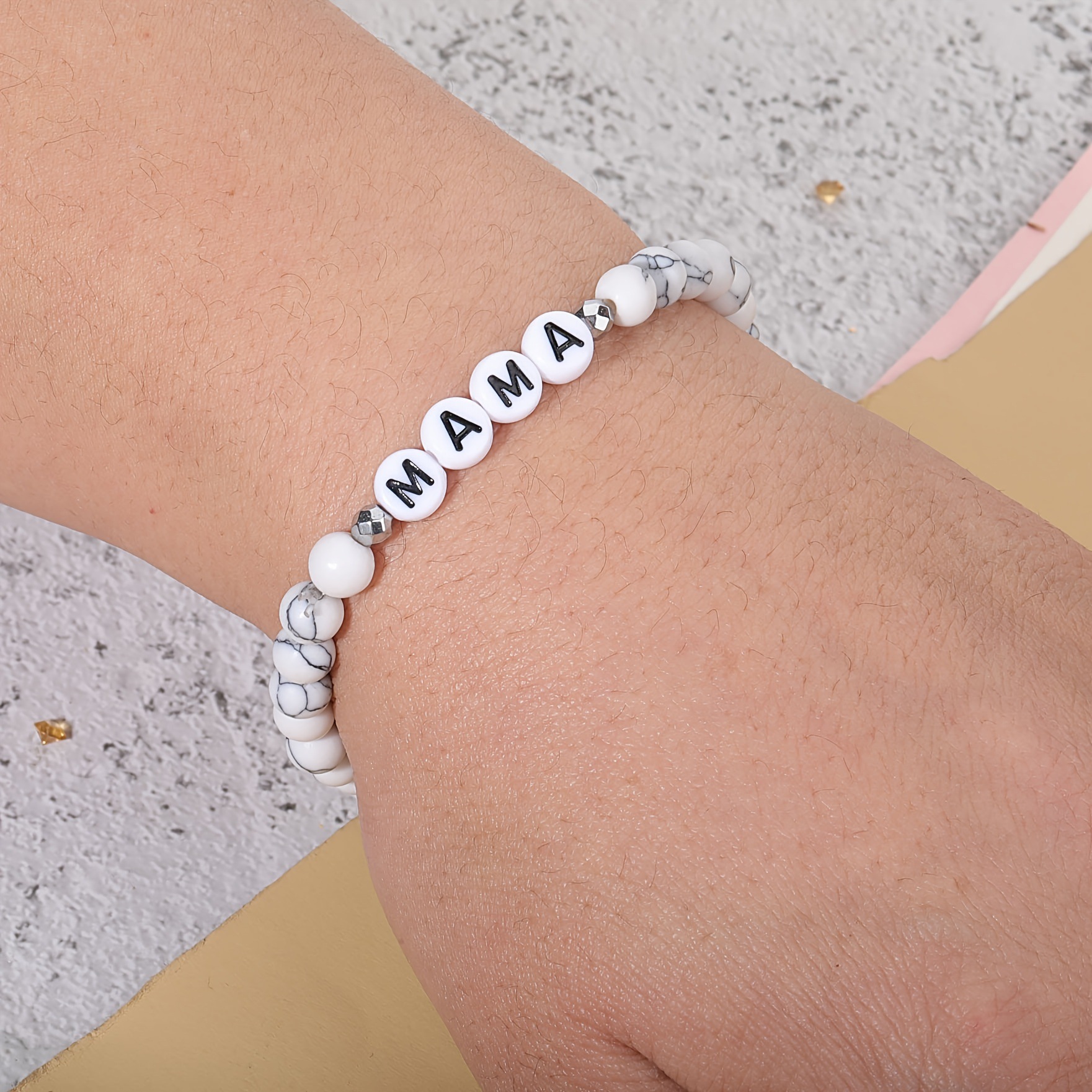 白松石母亲节手串6mm串珠礼品手链 金色银色米珠MAMA字母脉纹手链