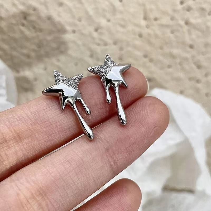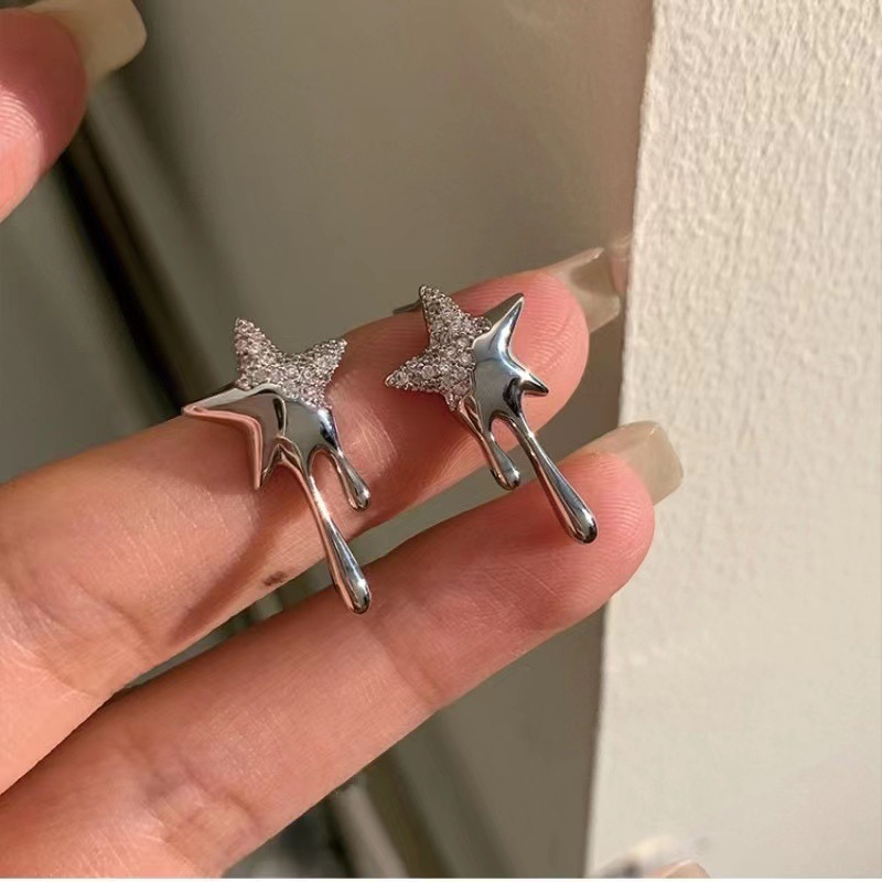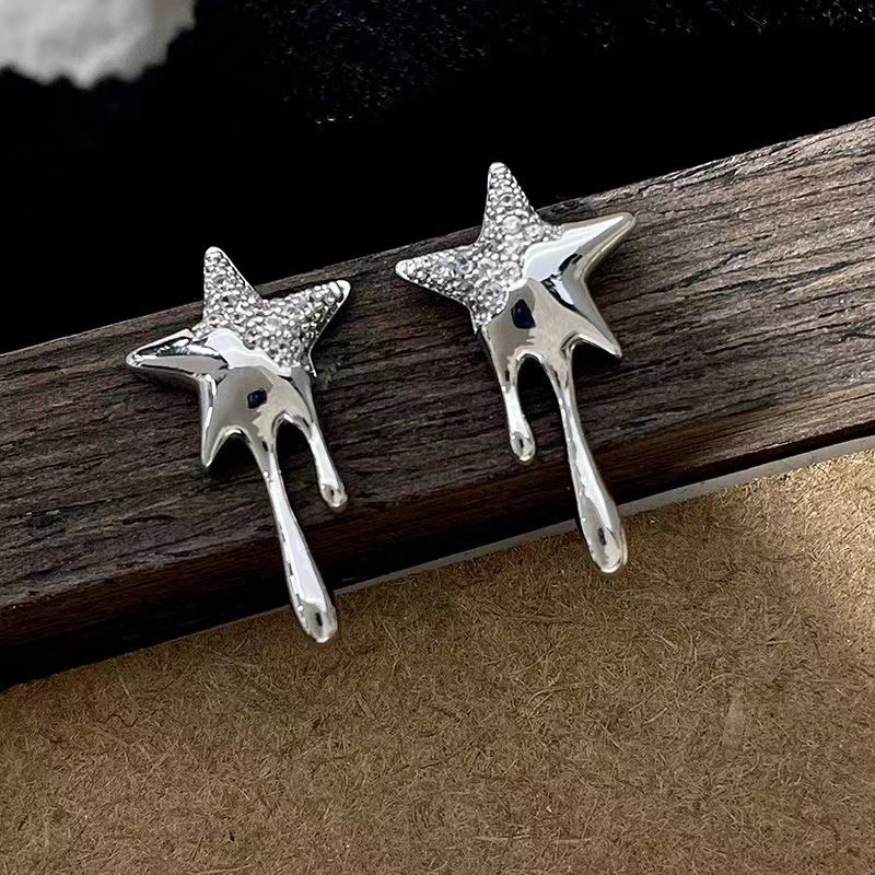 韩国小众设计爱心熔岩星星耳钉2024年新款潮个性气质高级感耳环女