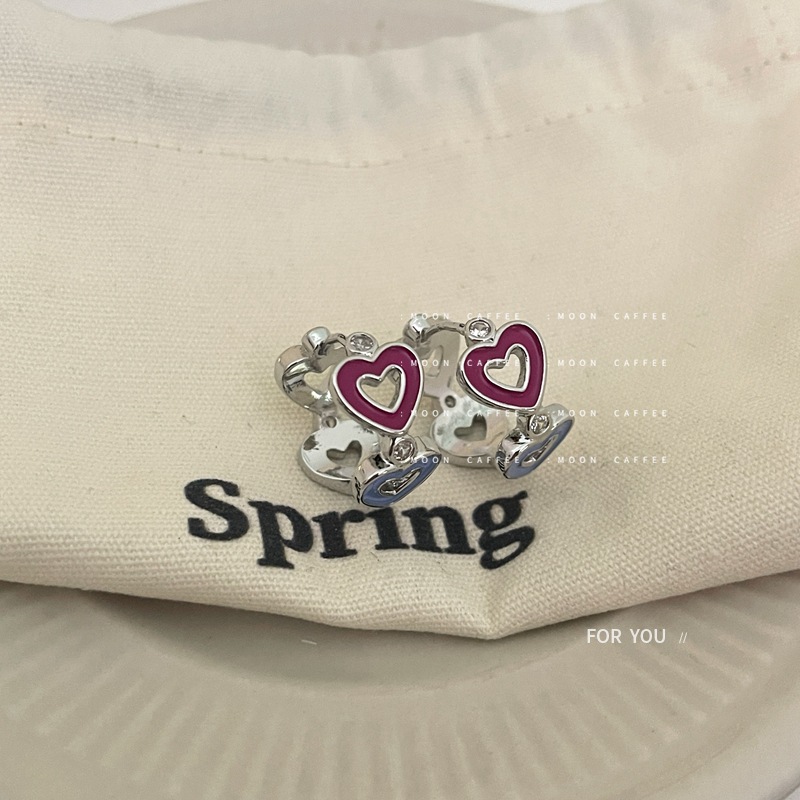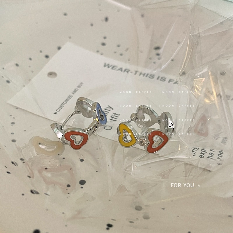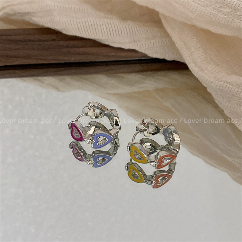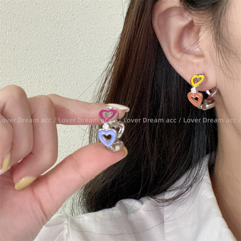 新款小众设计彩色滴油字母爱心金属甜美少女耳环高级感耳扣耳饰