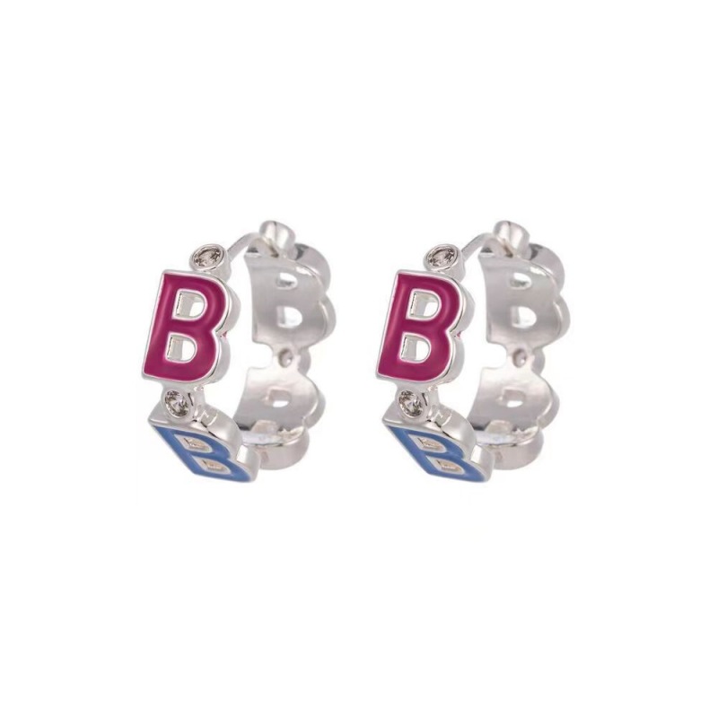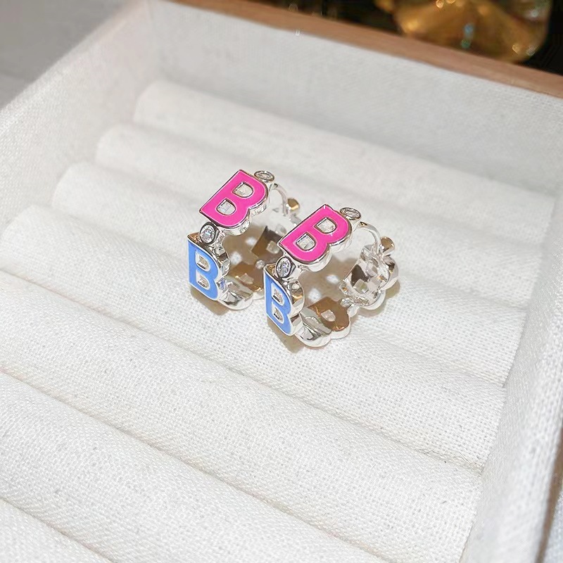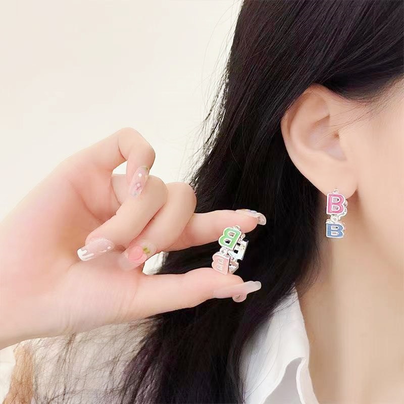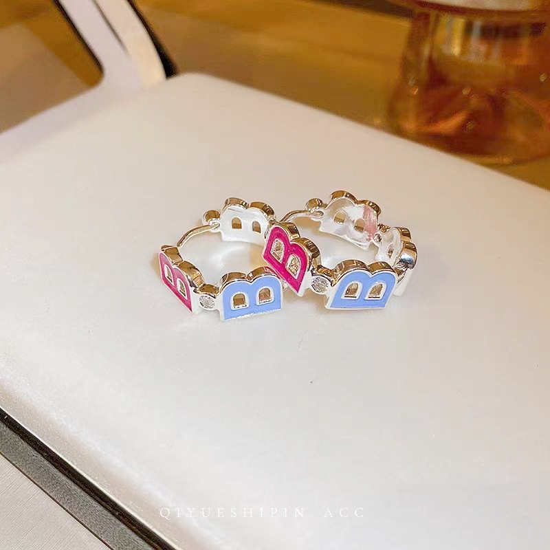 彩色滴油锆石B字母耳扣时尚个性百搭小众新款甜酷风耳环耳饰女