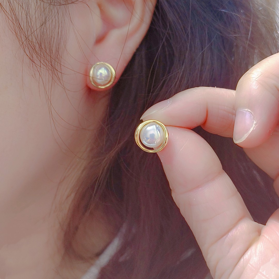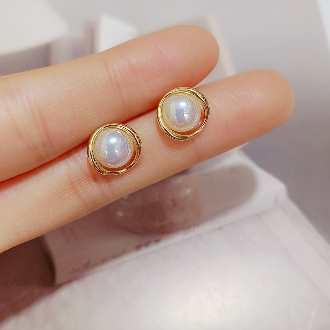 简约百搭高级圆圈珍珠耳钉女日韩小众轻奢时尚设计感耳环耳饰