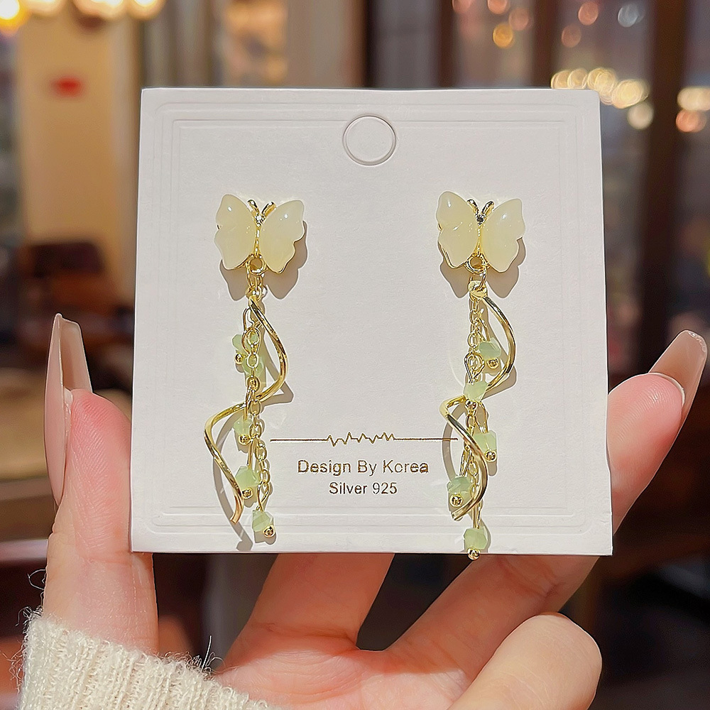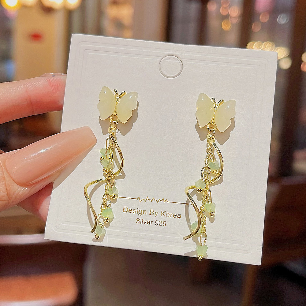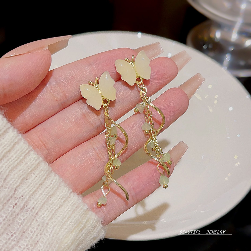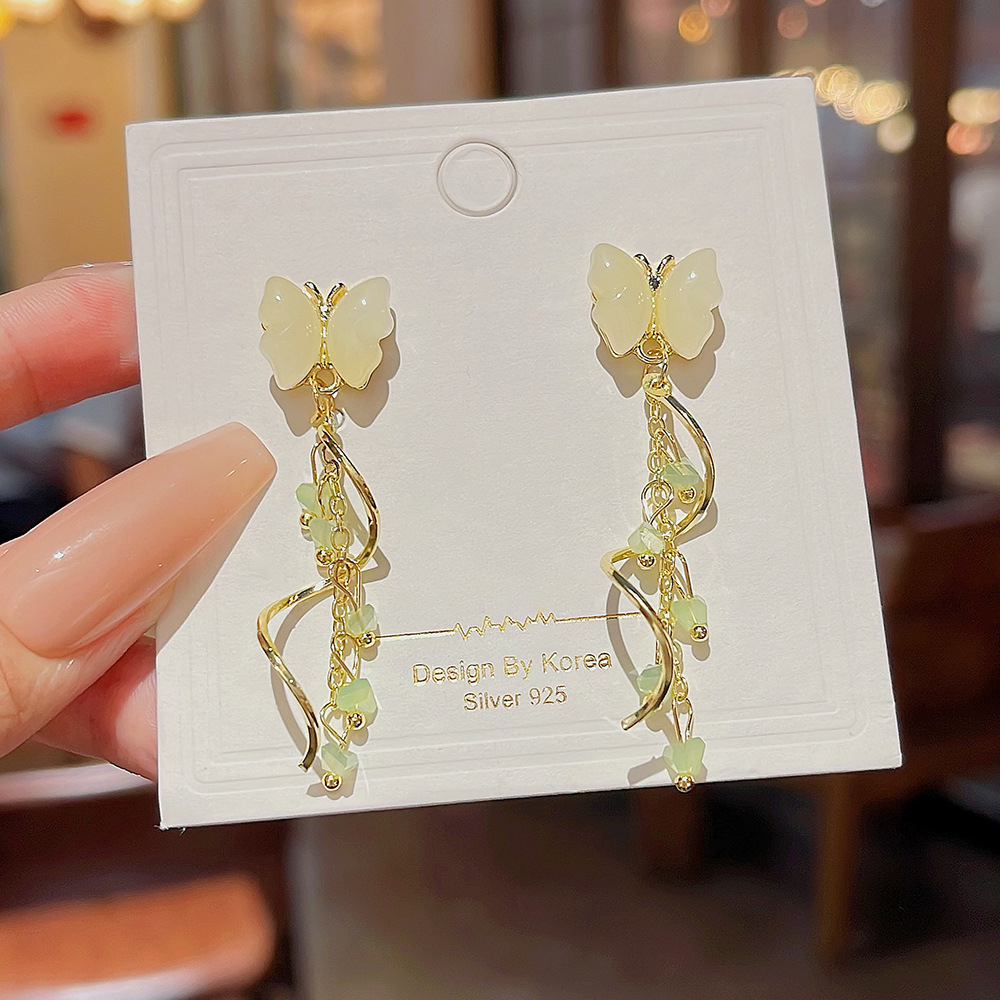 甜美蝴蝶耳饰小众高级感耳钉潮流设计轻奢水晶流苏耳环女