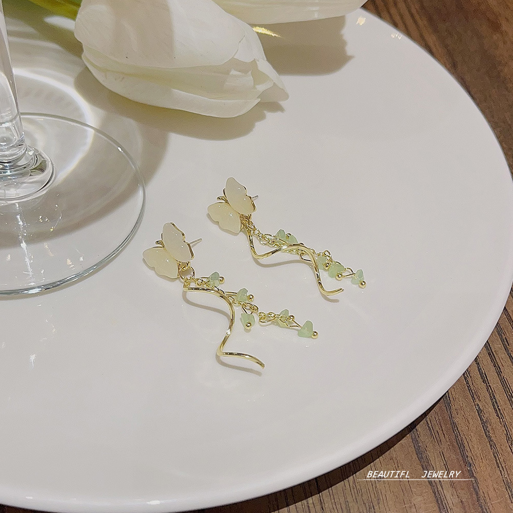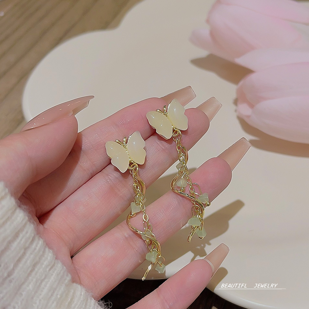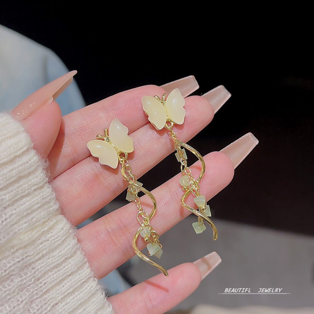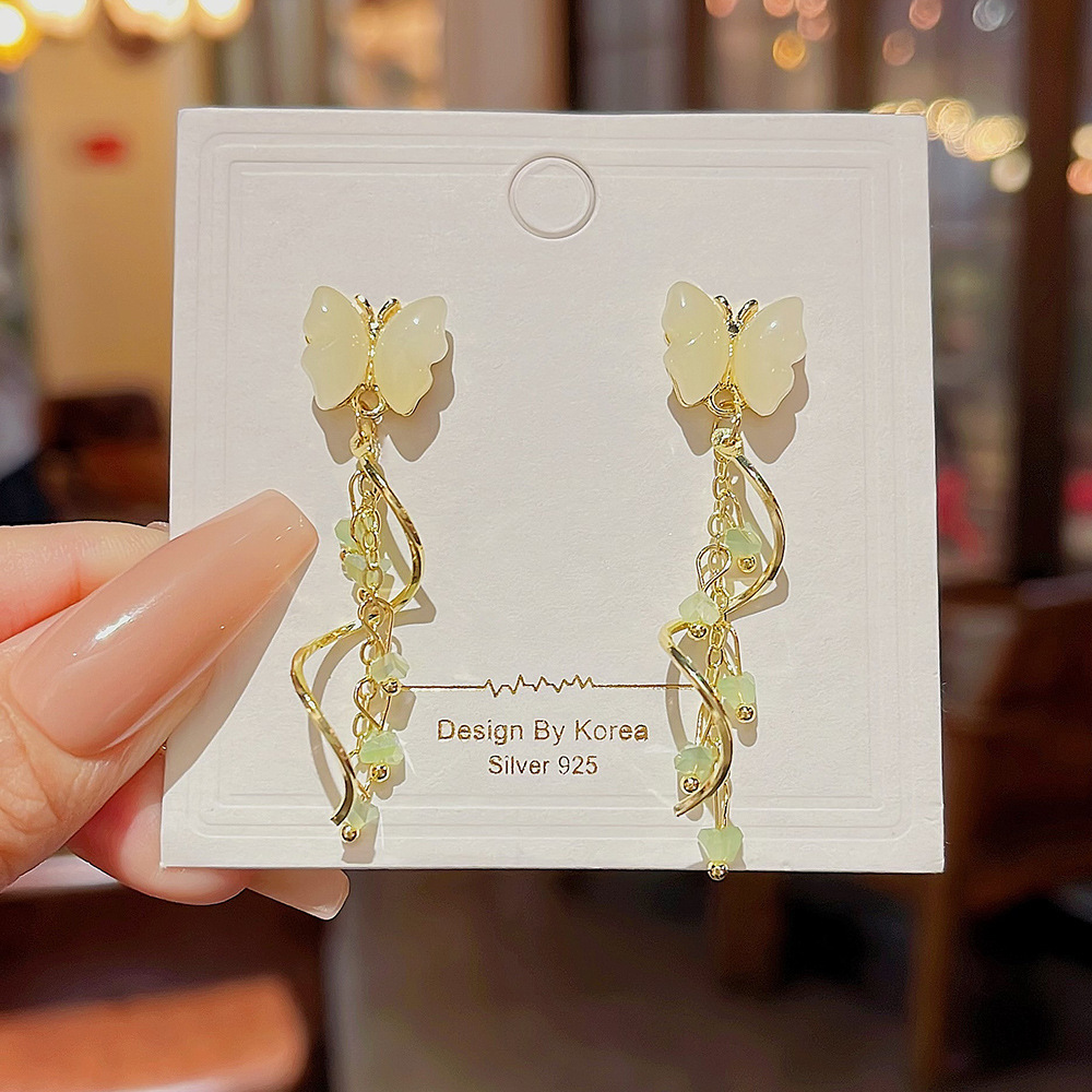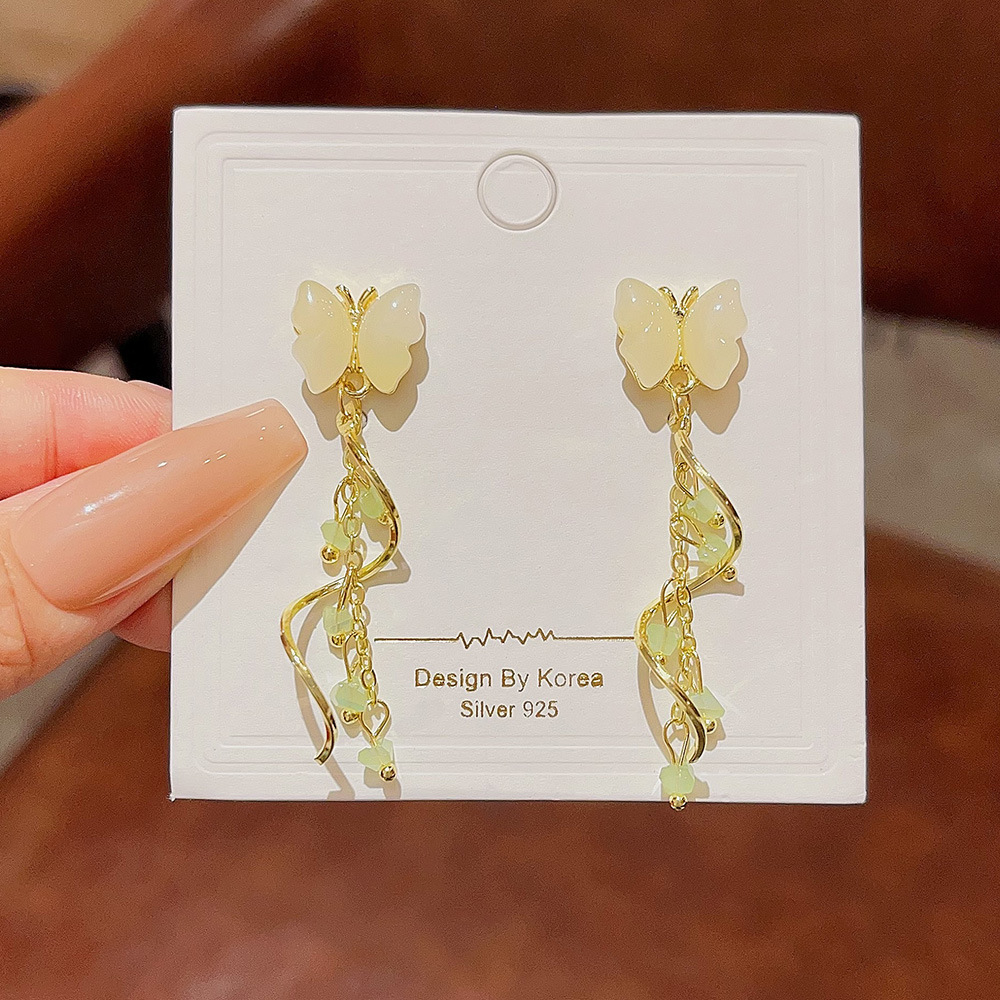 甜美蝴蝶耳饰小众高级感耳钉潮流设计轻奢水晶流苏耳环女
