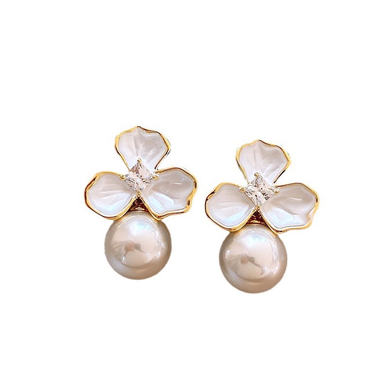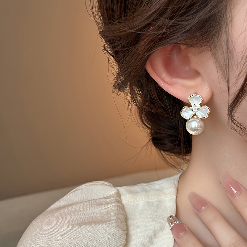 花朵珍珠耳环女2024新款爆款小众独特气质耳钉轻奢高级感耳饰