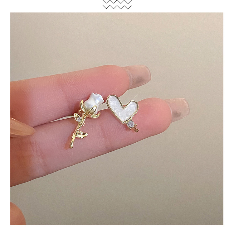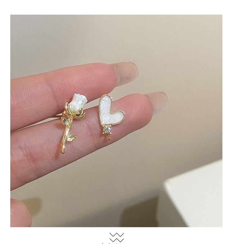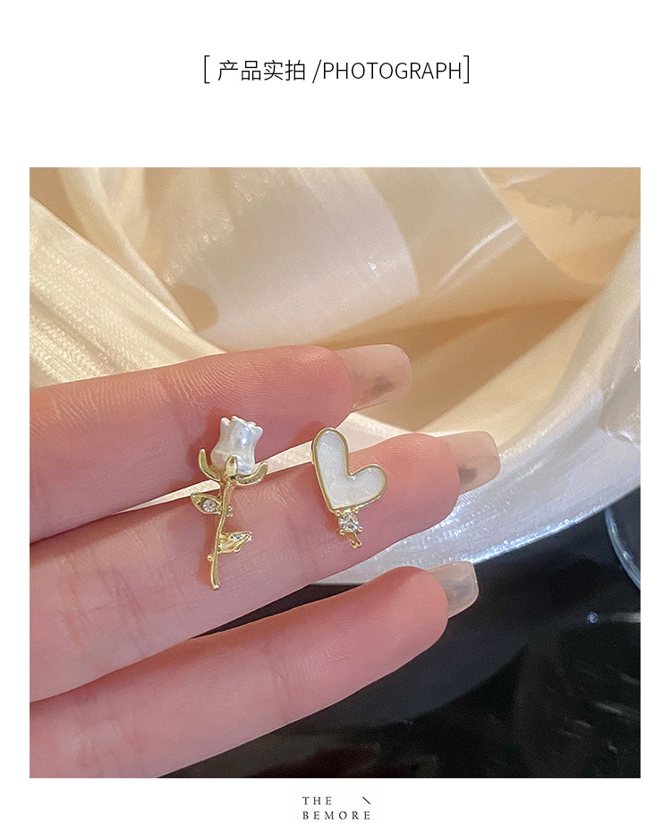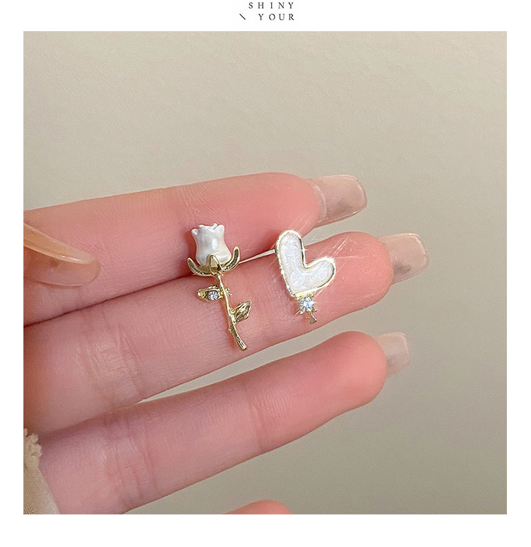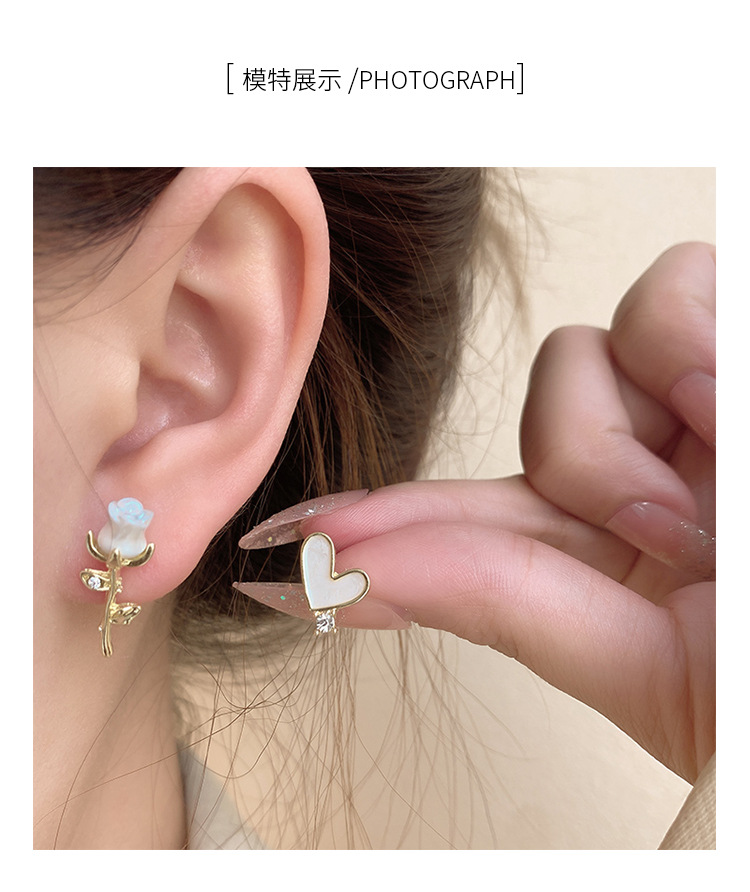 2024年超仙花朵不对称玫瑰爱心耳钉甜美温柔气质港风耳饰女