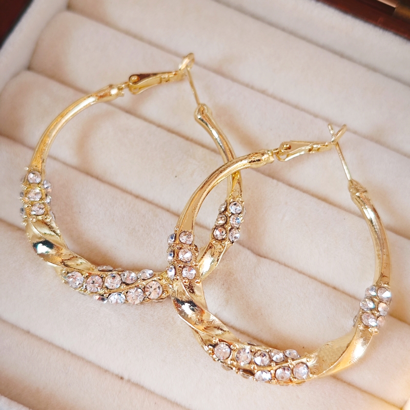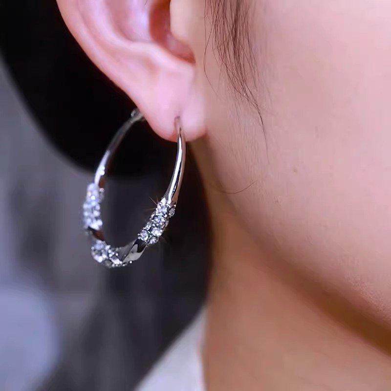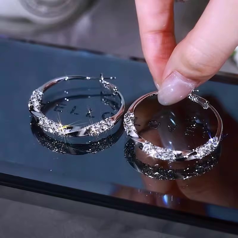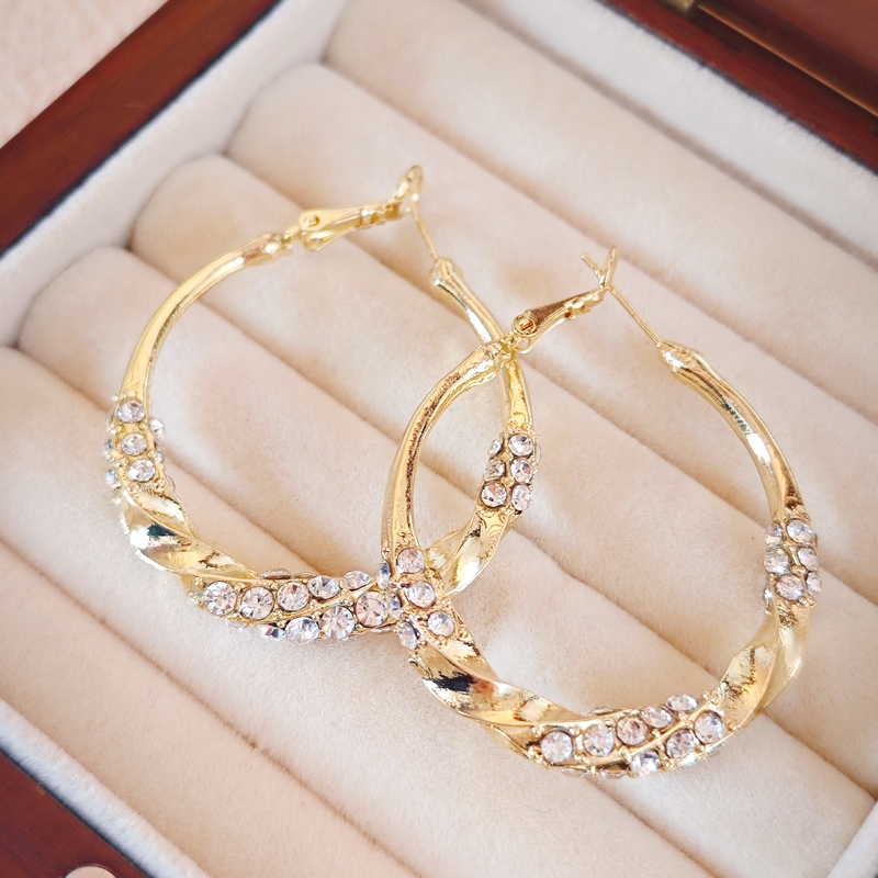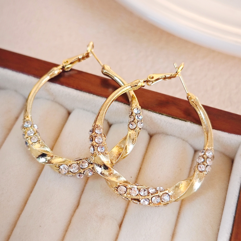 圈圈水钻扭扭光面耳圈2024年新款潮气质高级感夸张耳饰女