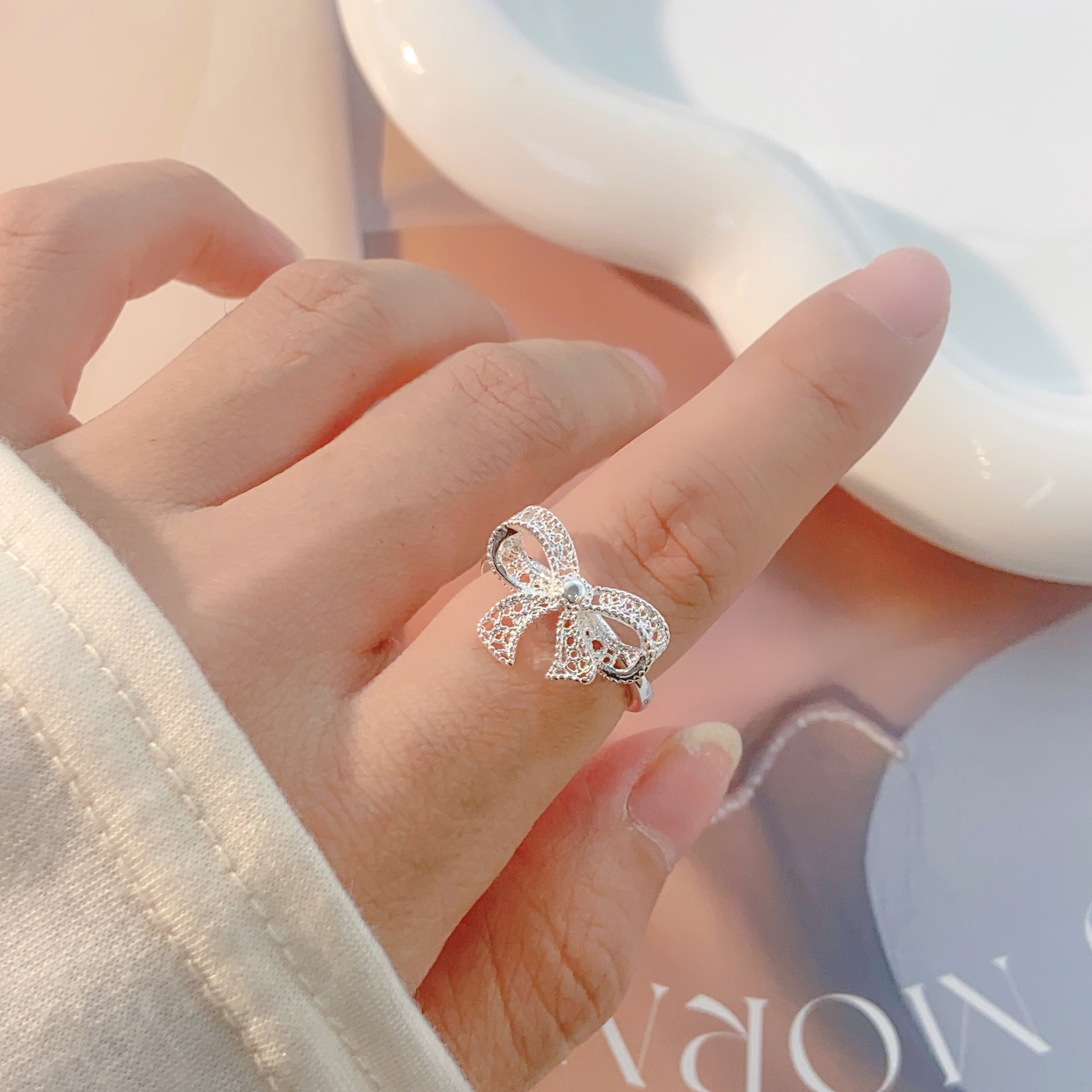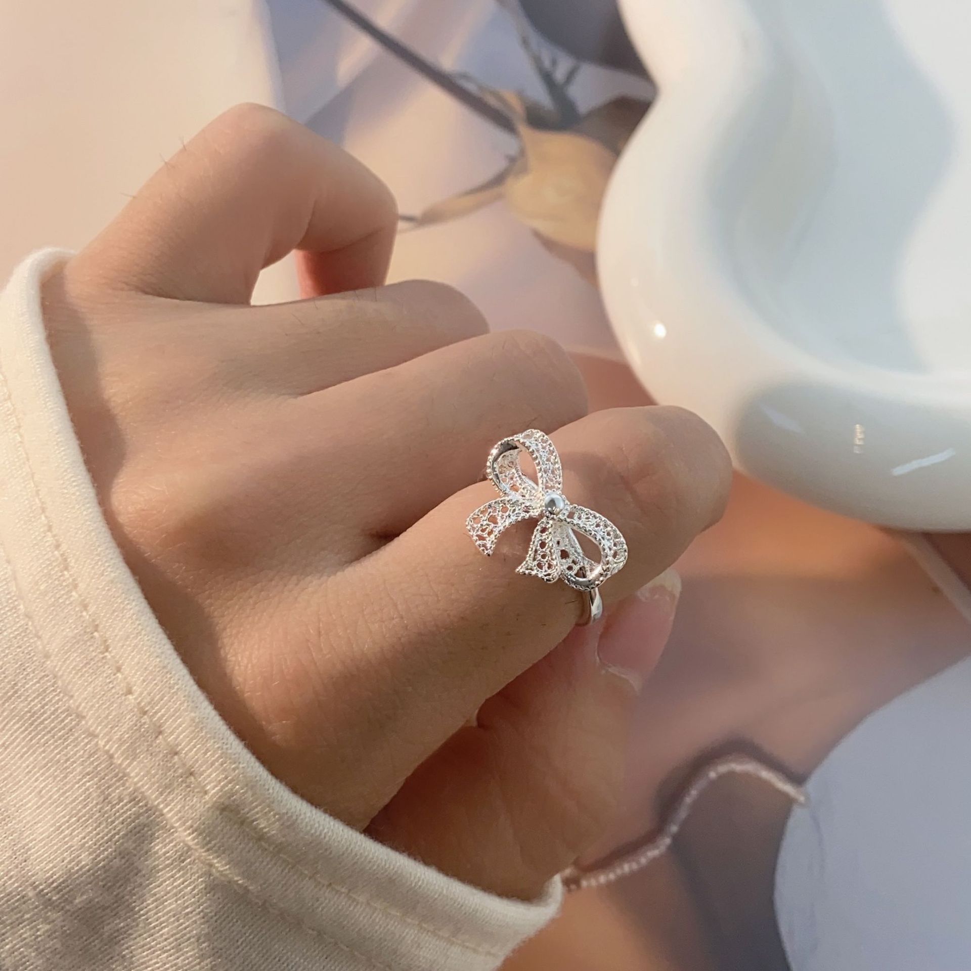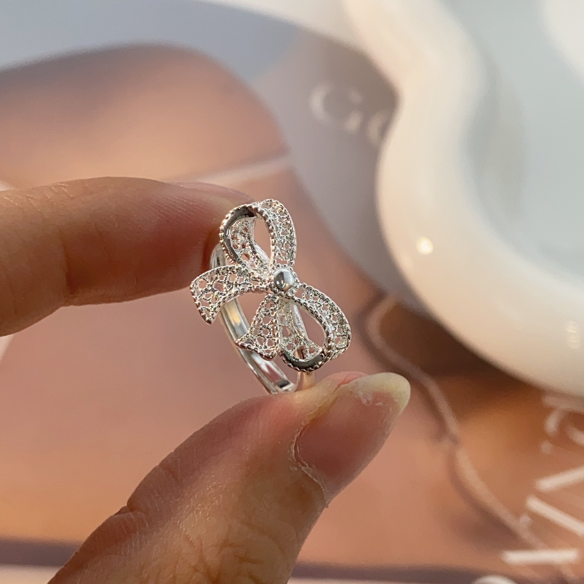 在逃公主镂空蝴蝶结开口戒指女可调节百搭高级感食指戒时尚指环夏