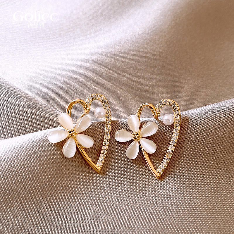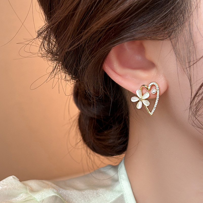 韩国花朵爱心耳钉女2024年新款爆款潮耳环小众设计高级感耳饰