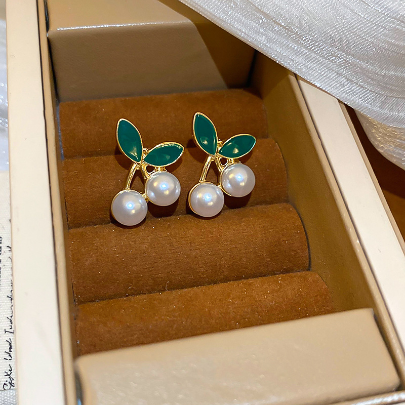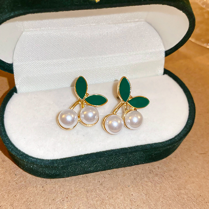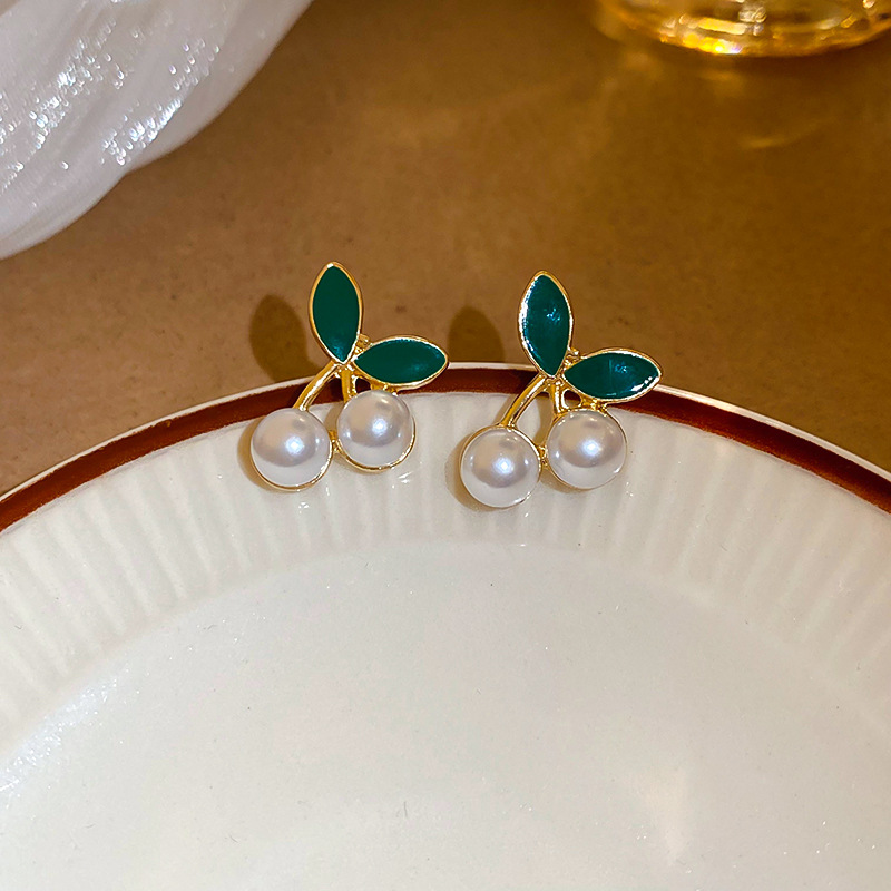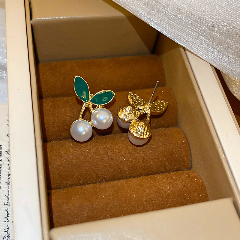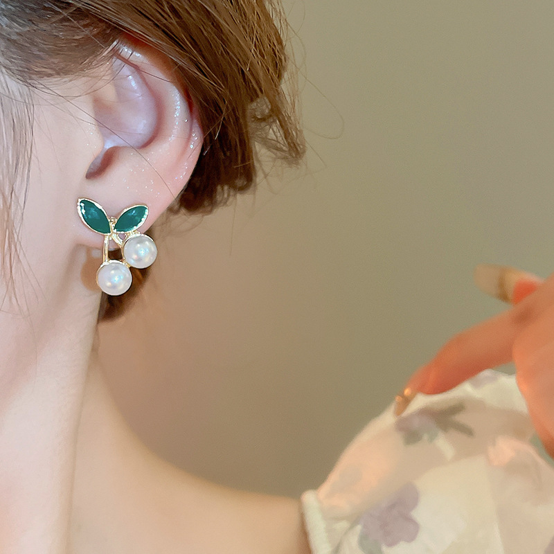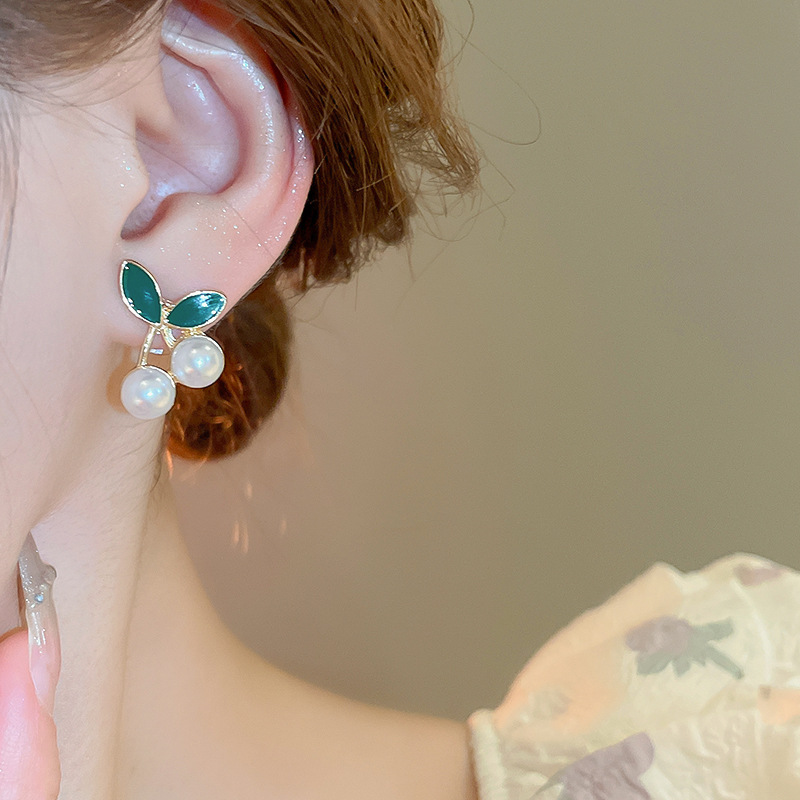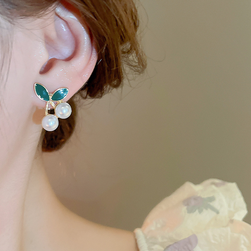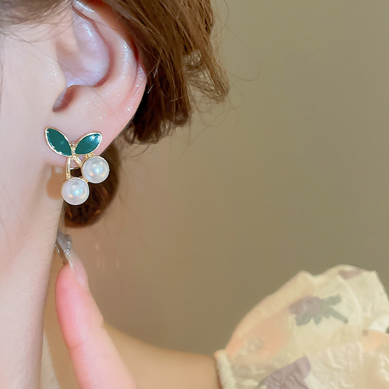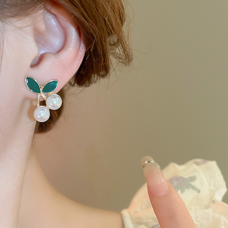 法式小香风樱桃珍珠耳钉气质百搭时尚小巧耳环高级感个性森系耳饰