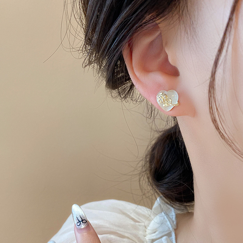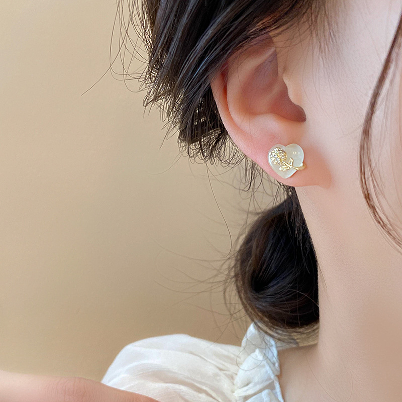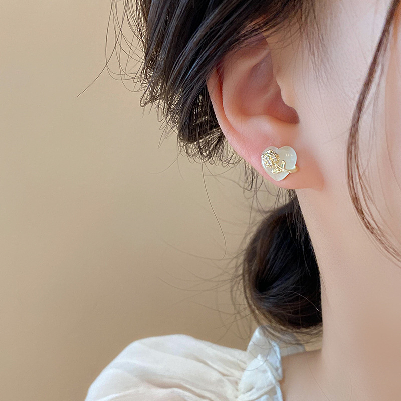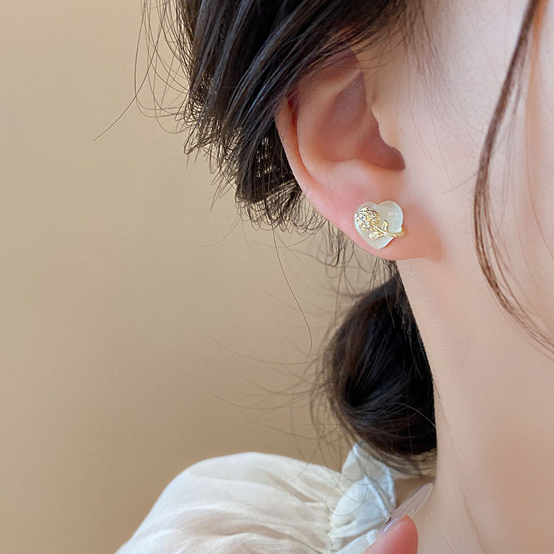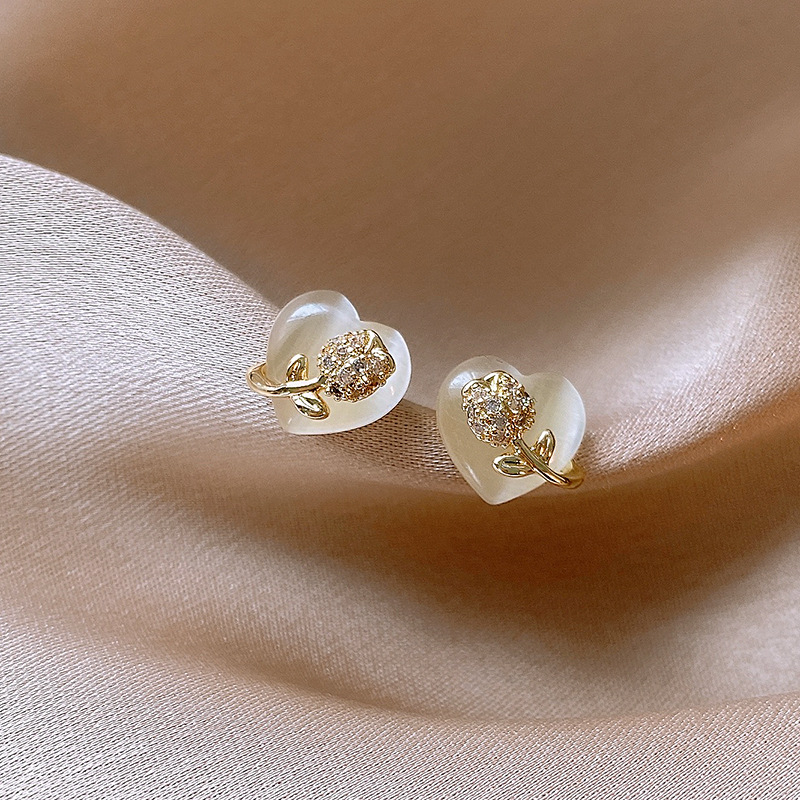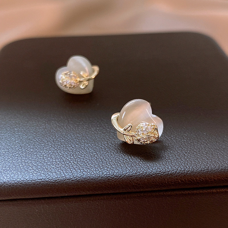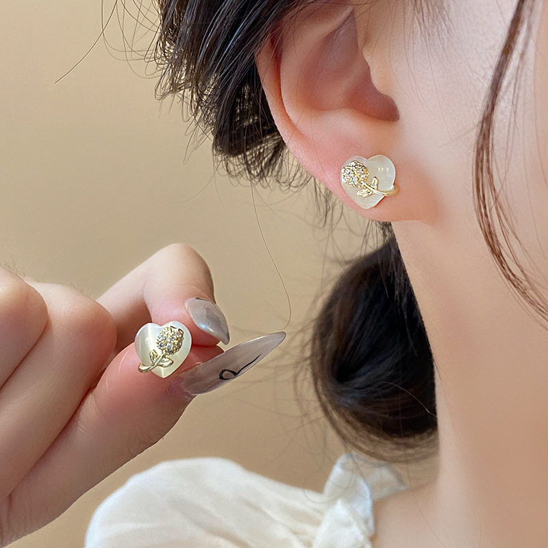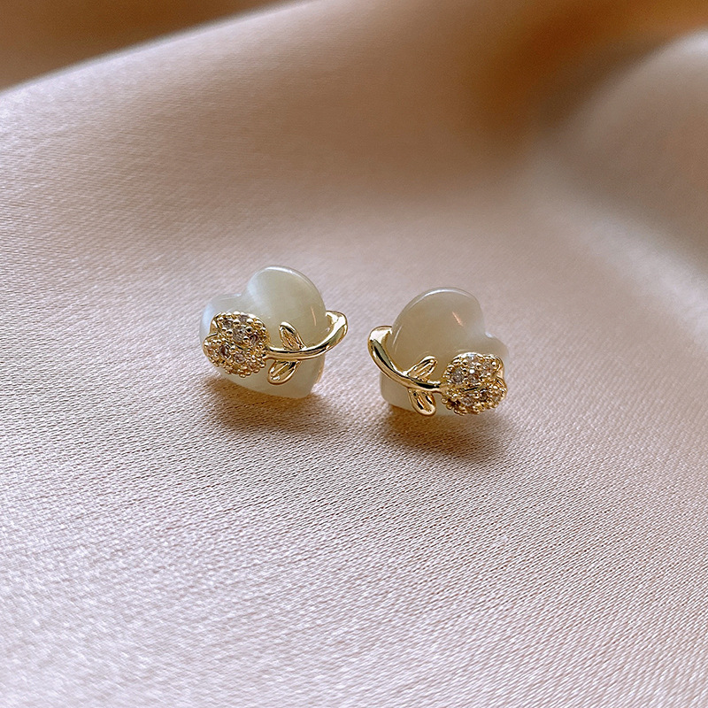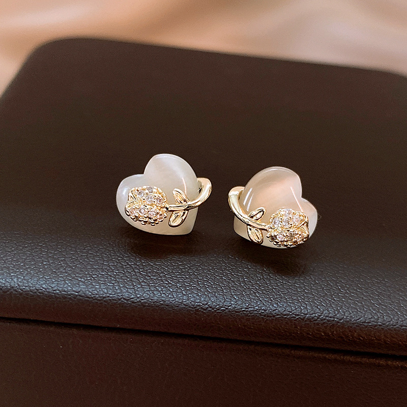 韩国甜美小巧锆石花朵仿猫眼石爱心银针高级感气质耳环女
