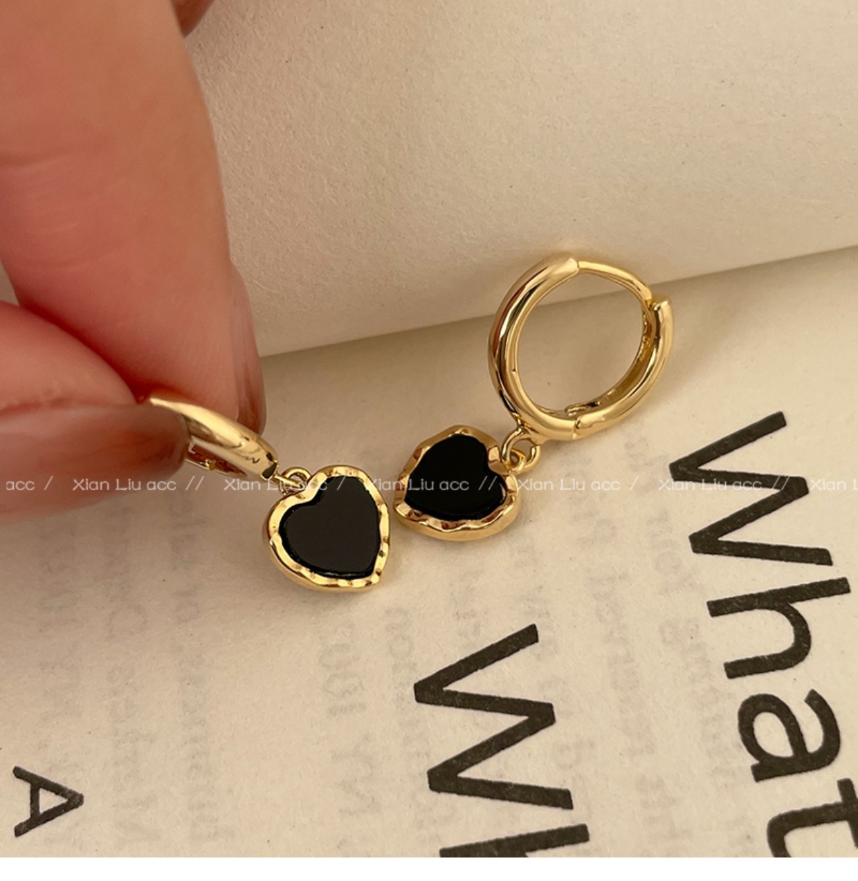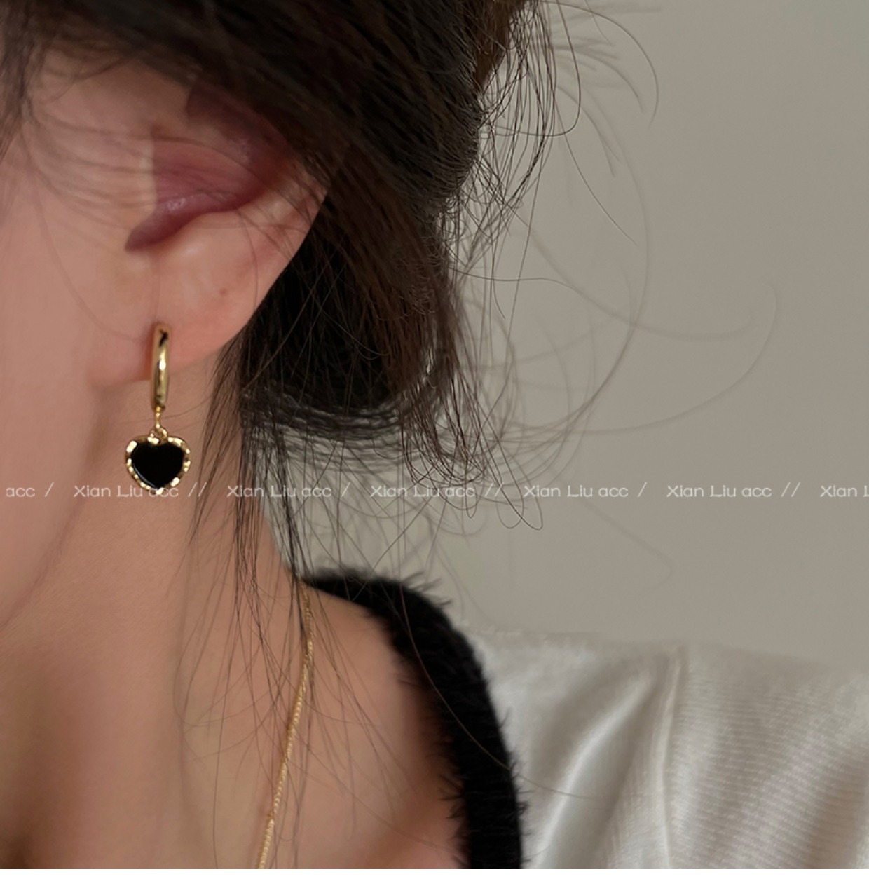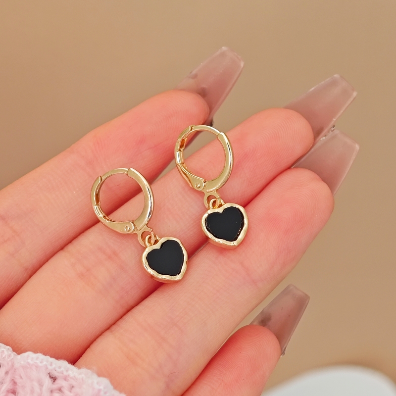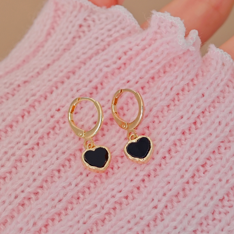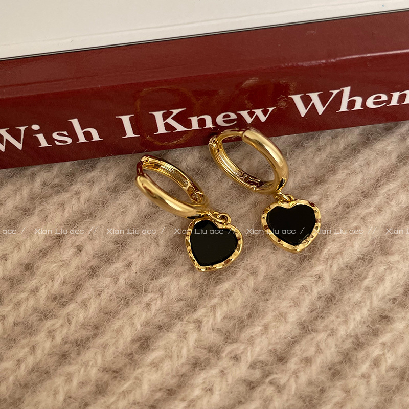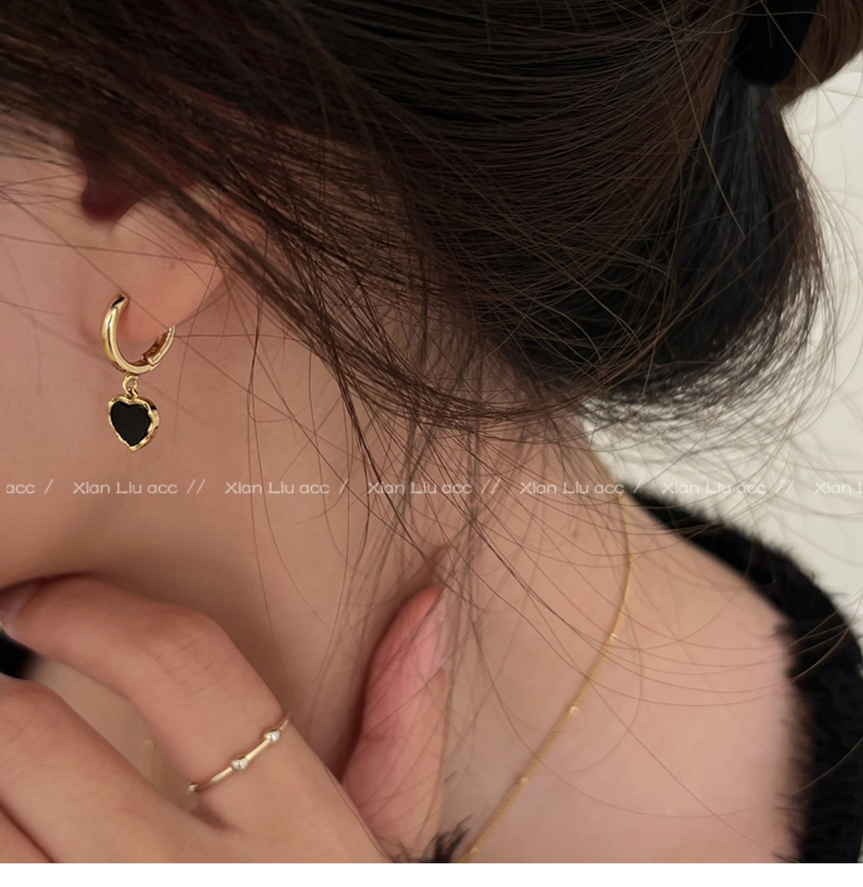 韩国黑色爱心吊坠耳环新款爆款气质耳扣女小众设计感高级耳饰耳圈