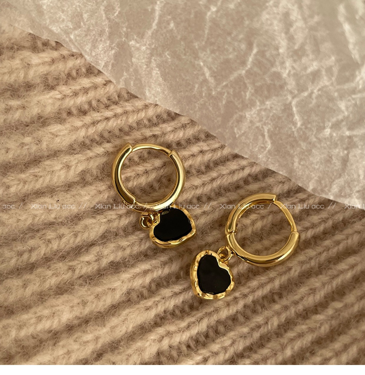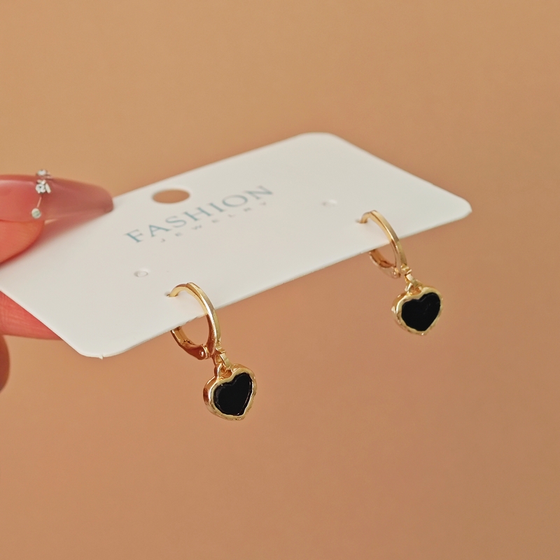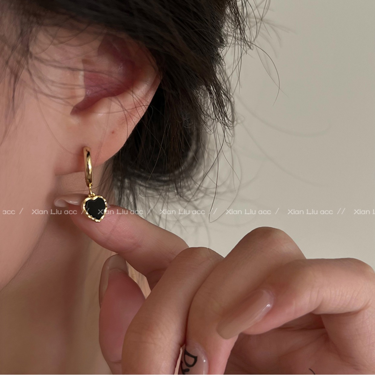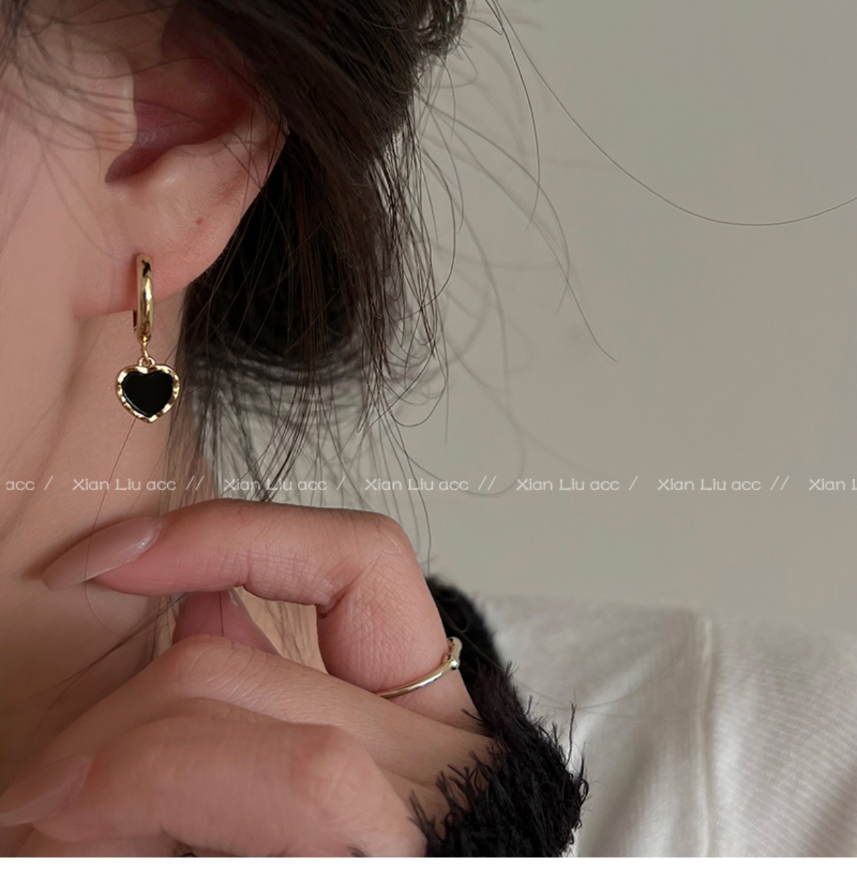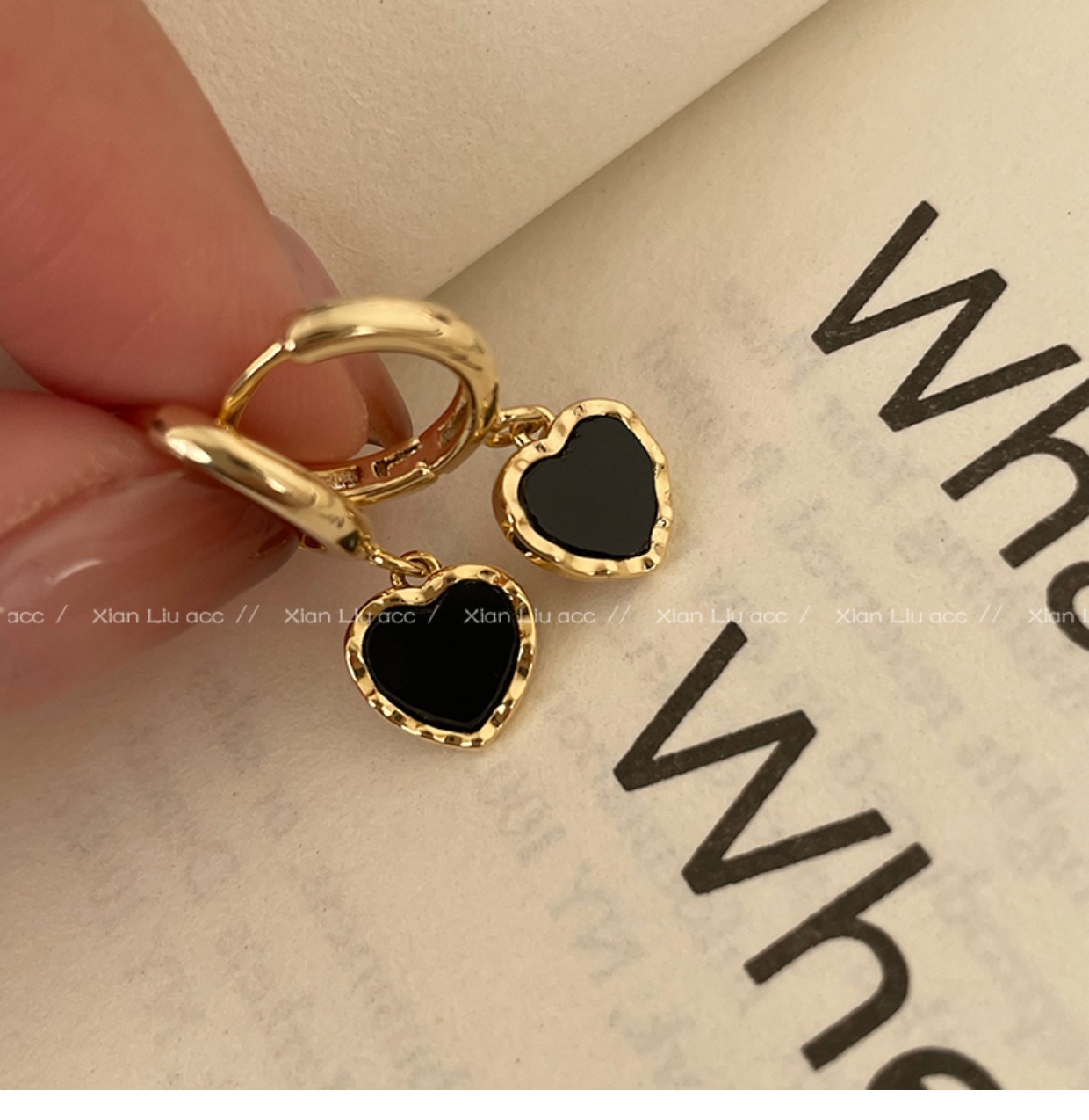 韩国黑色爱心吊坠耳环新款爆款气质耳扣女小众设计感高级耳饰耳圈