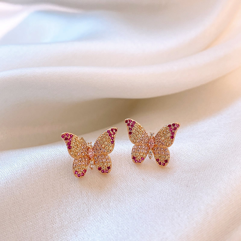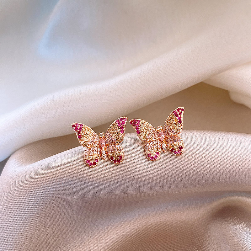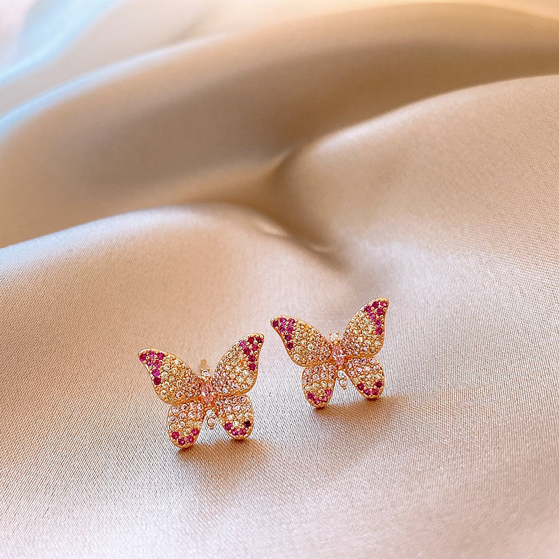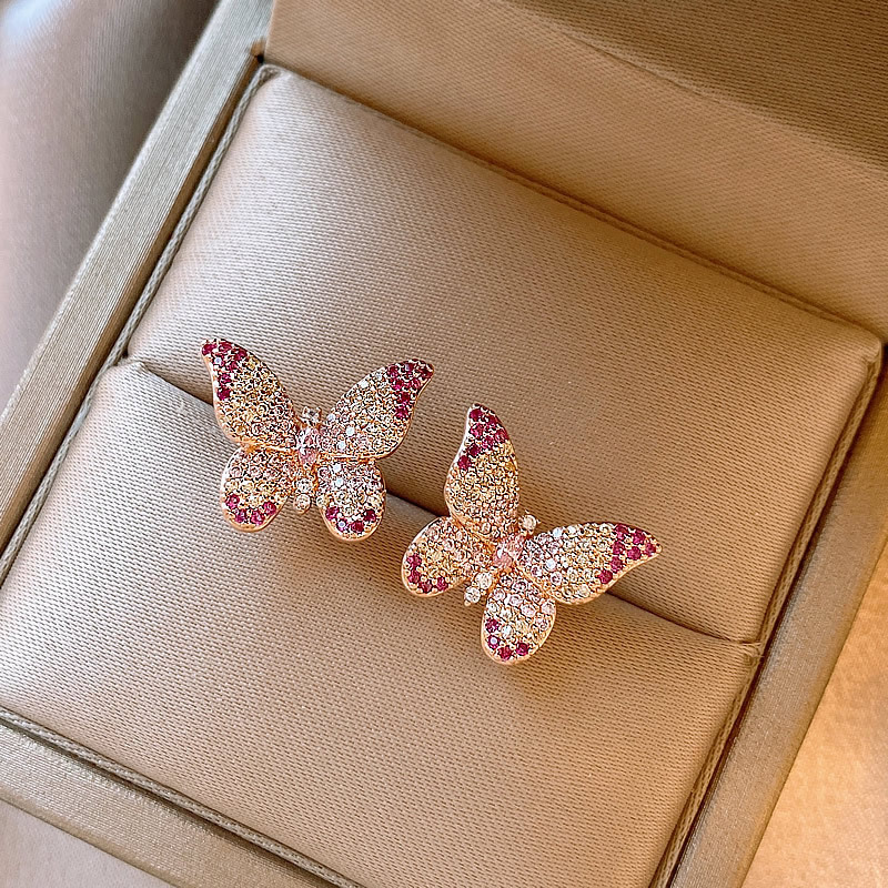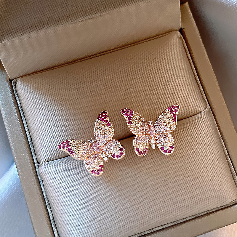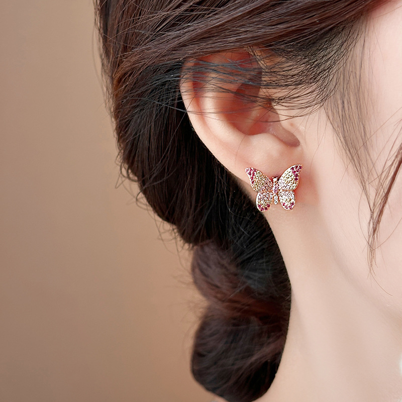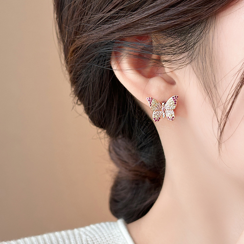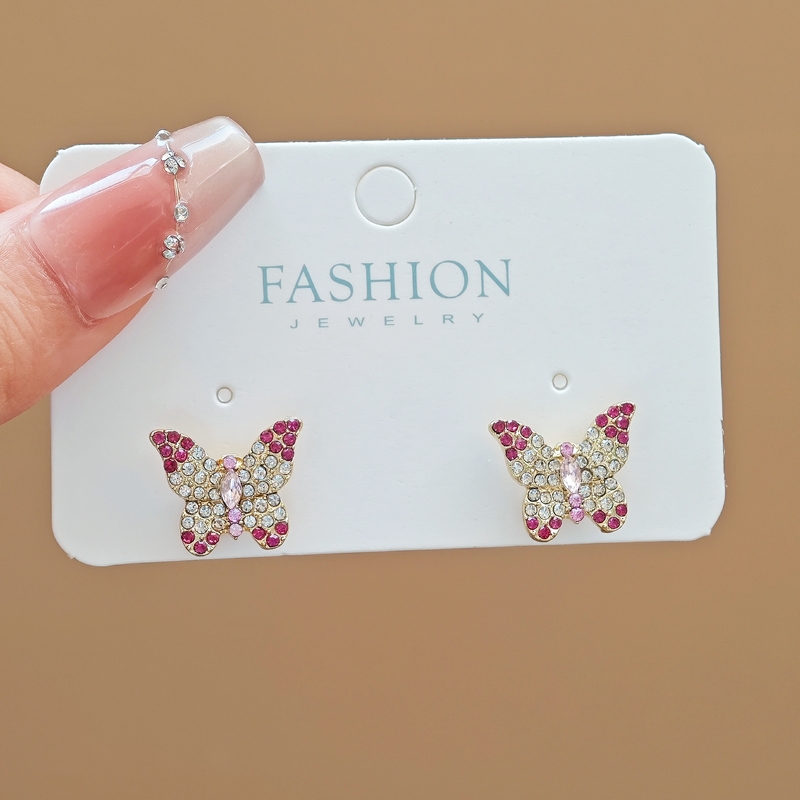 韩国镶钻紫色蝴蝶耳钉小众设计轻奢高级感耳环简约气质百搭耳饰女