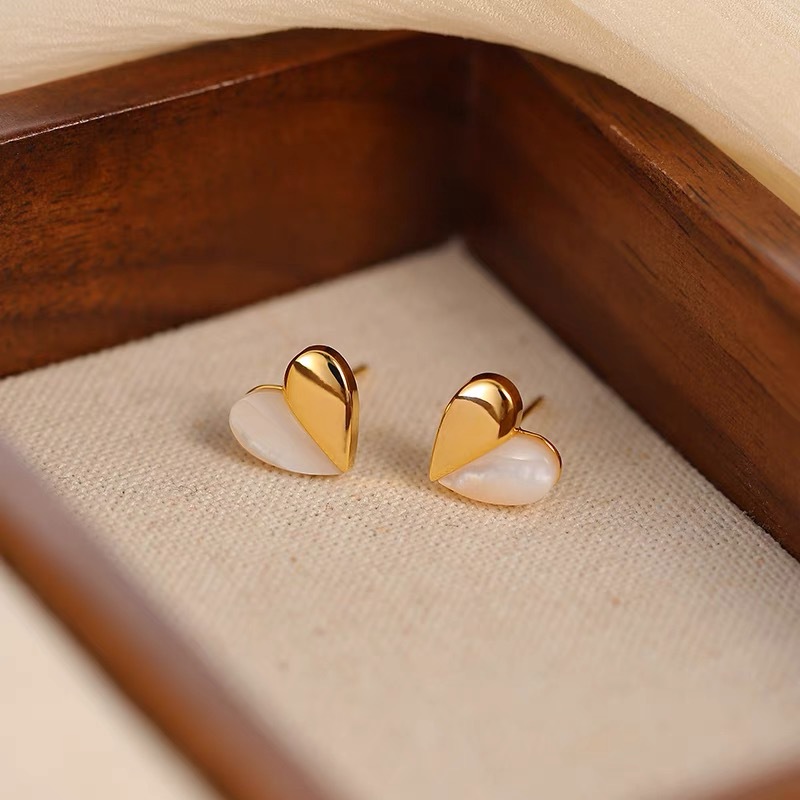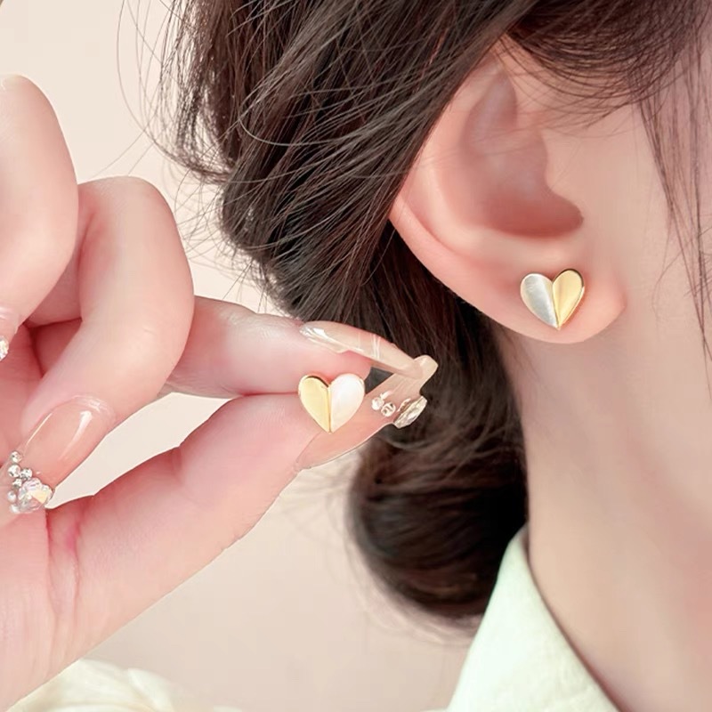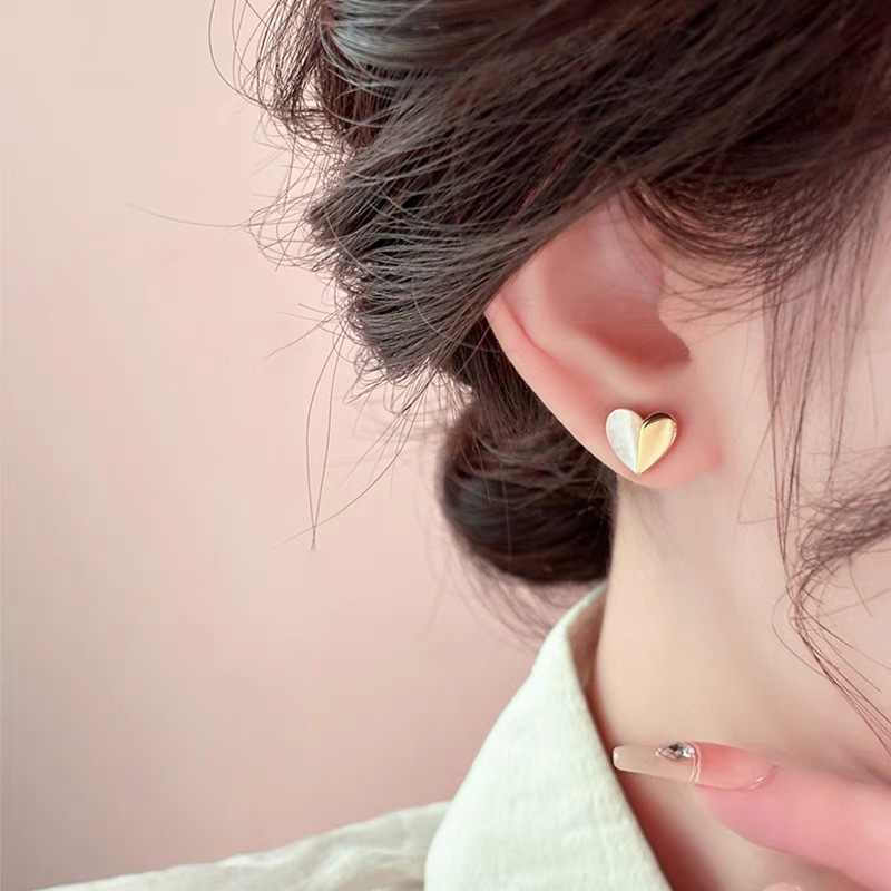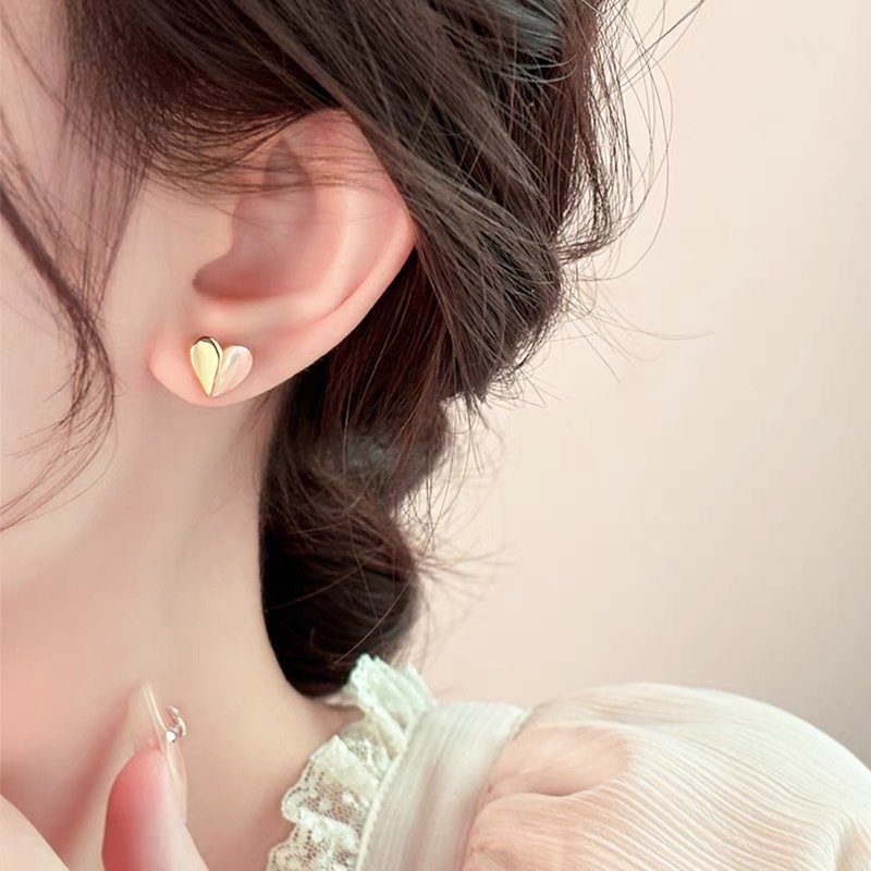 韩国时尚简约百搭拼接撞色爱心贝壳耳钉2024年新款爆款小众气质耳环女
