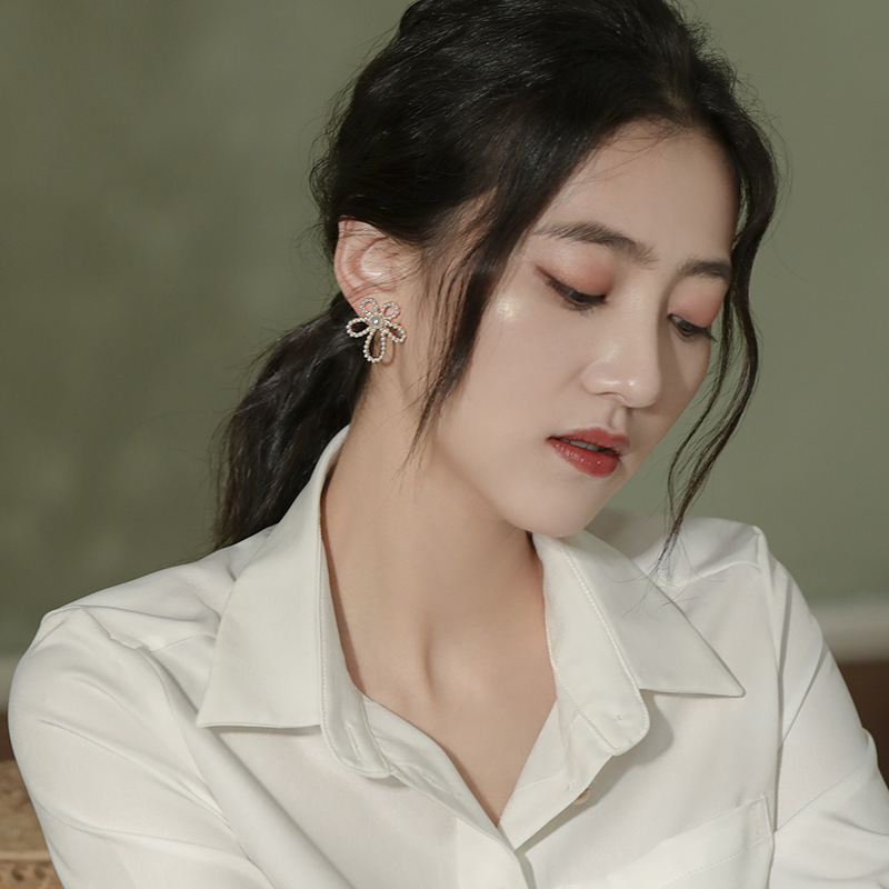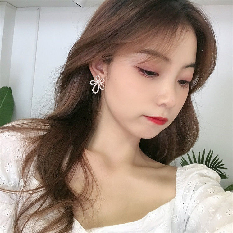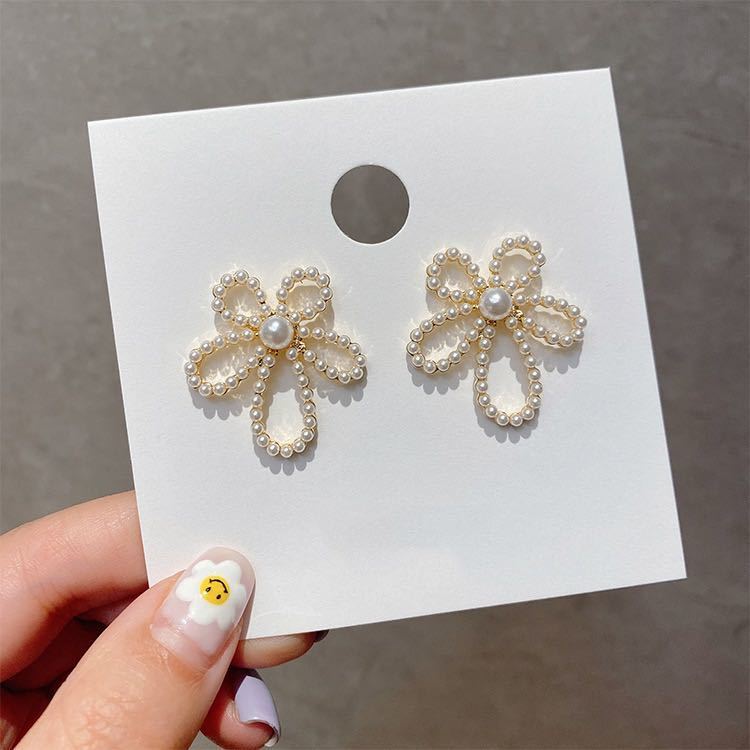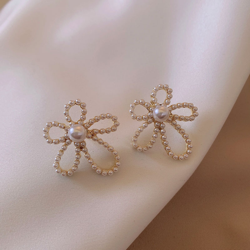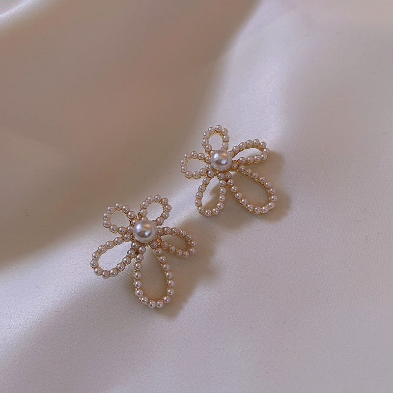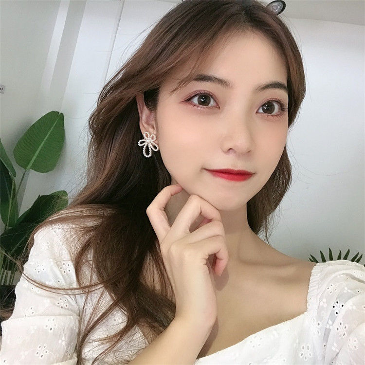 韩国新款甜美气质大气精致镂空珍珠花朵百搭耳环耳饰女