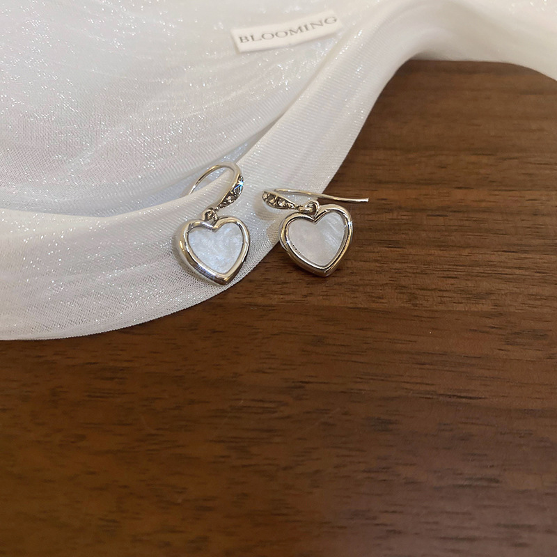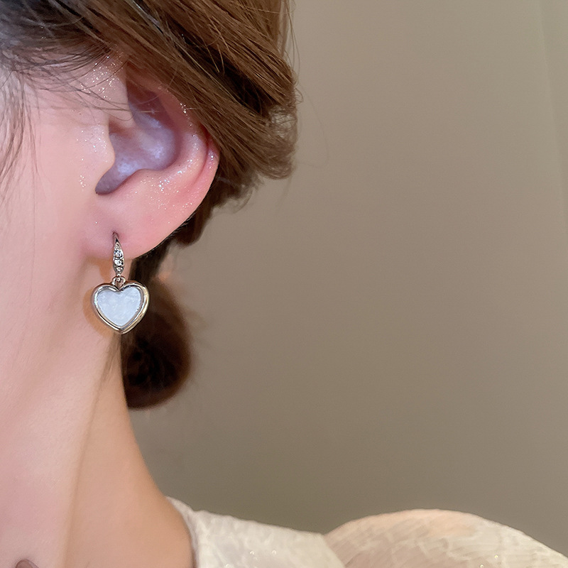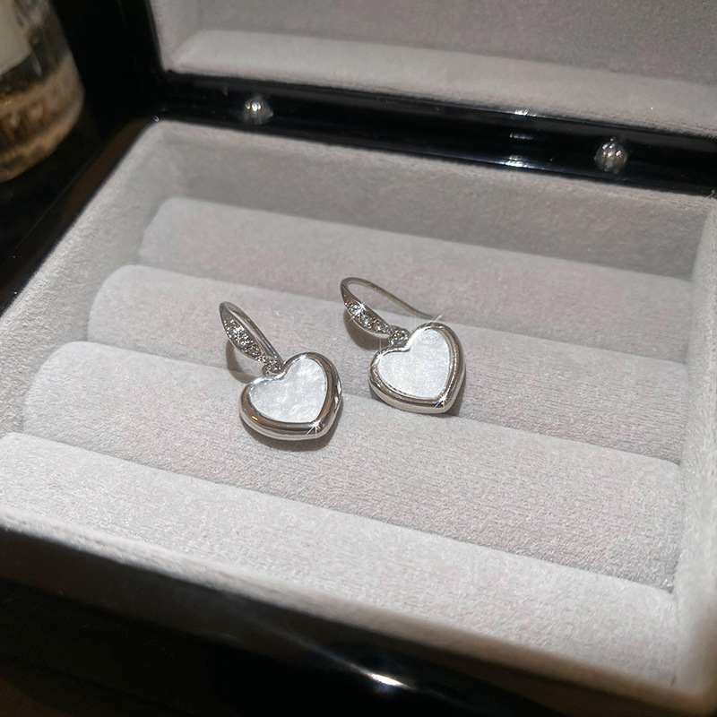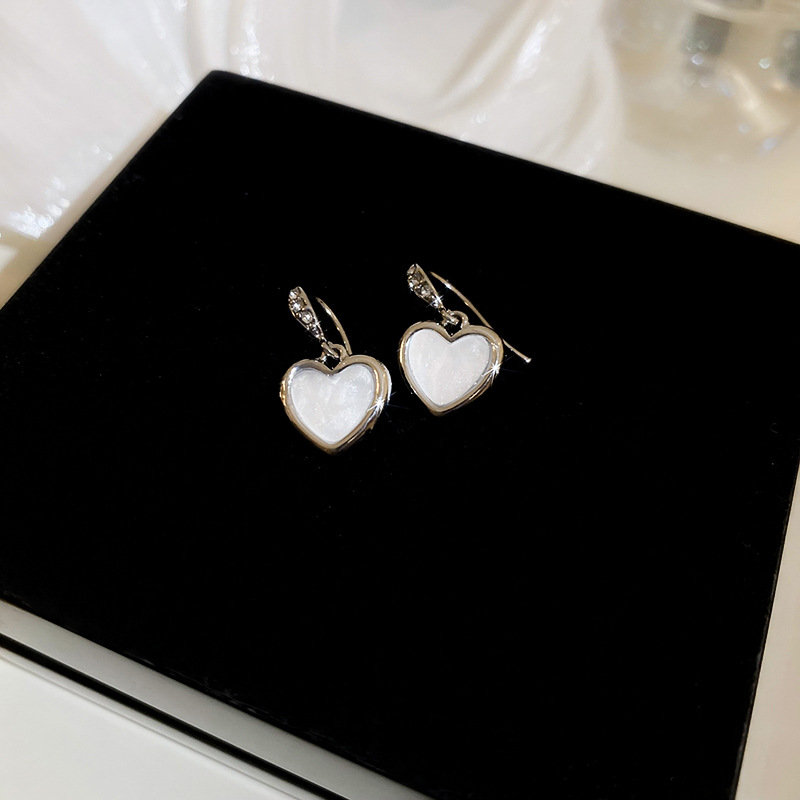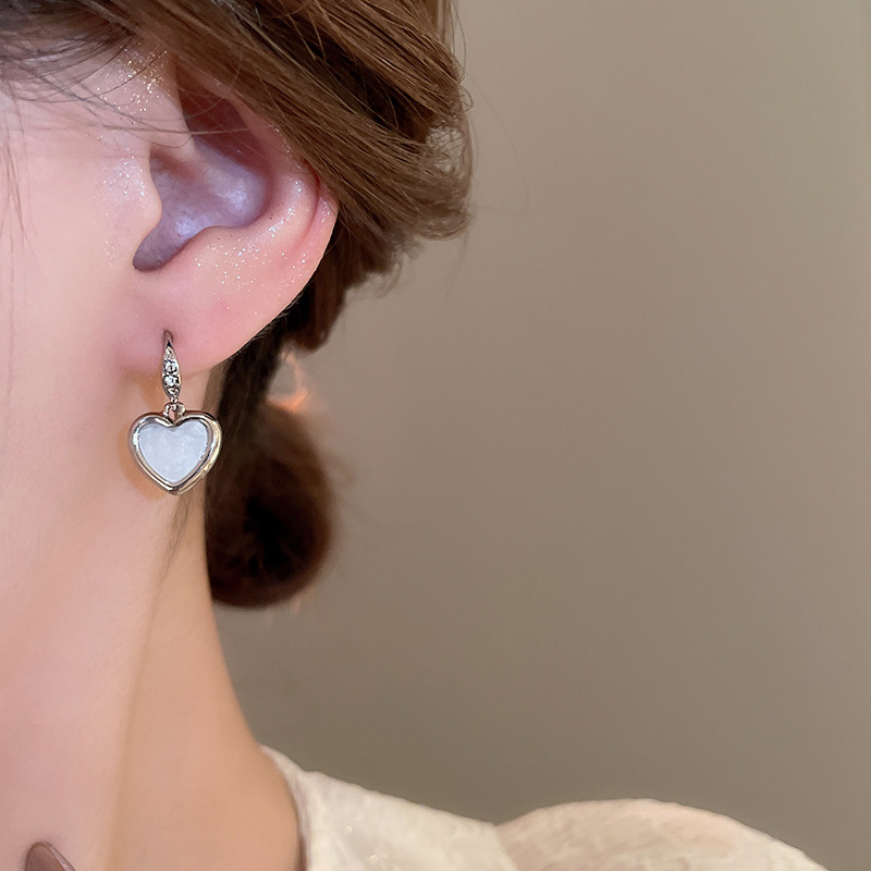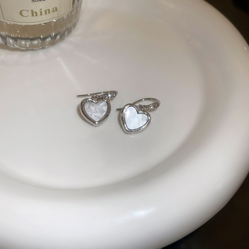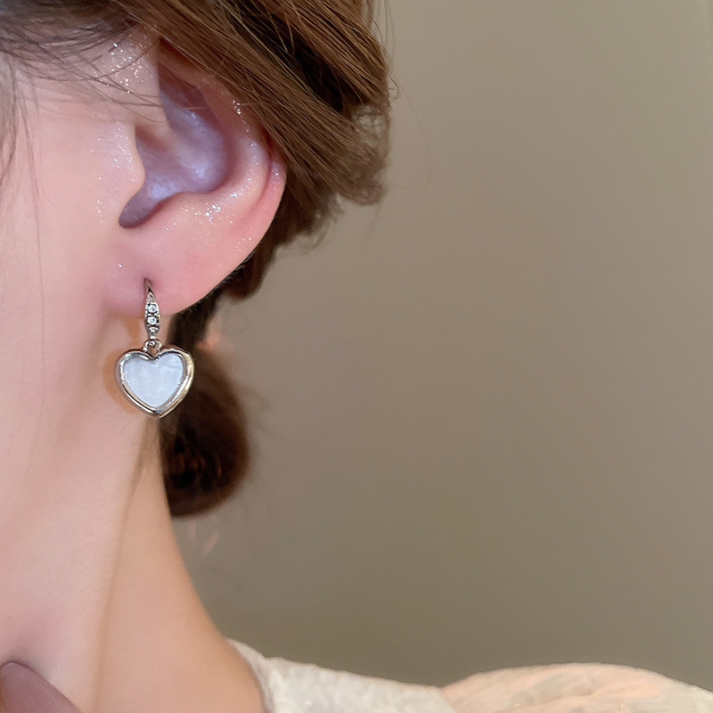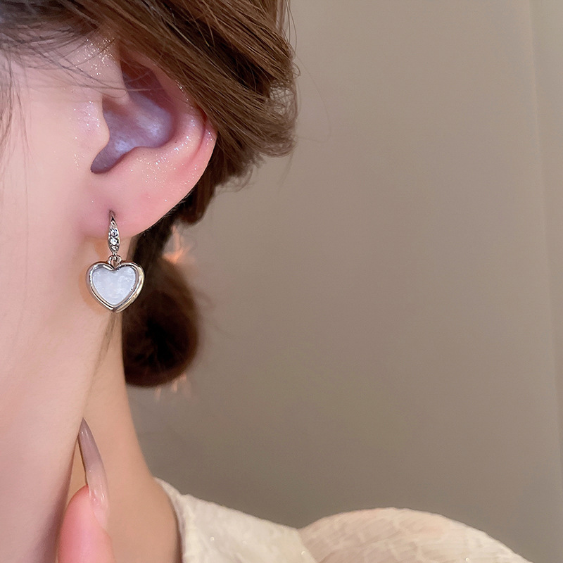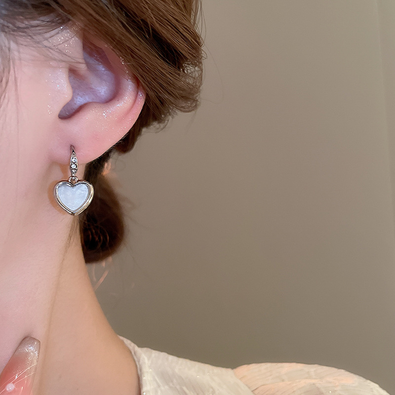 韩国甜美小众轻奢设计感耳环精致镶钻爱心耳钩女2024新款百搭耳饰