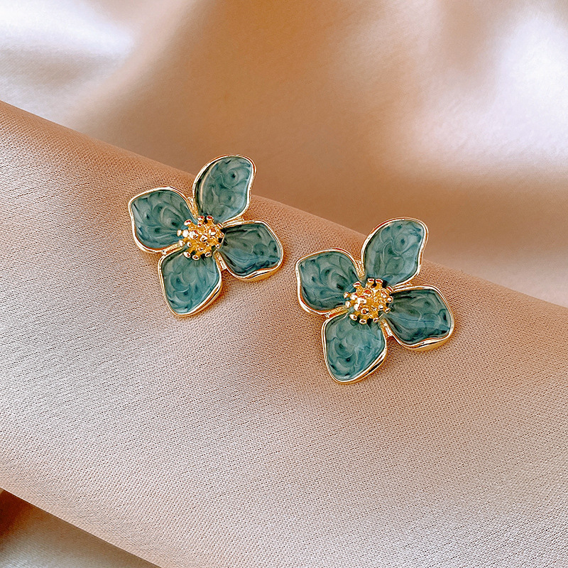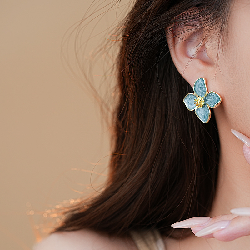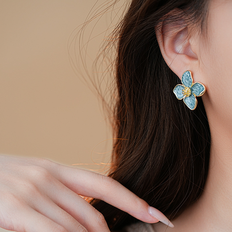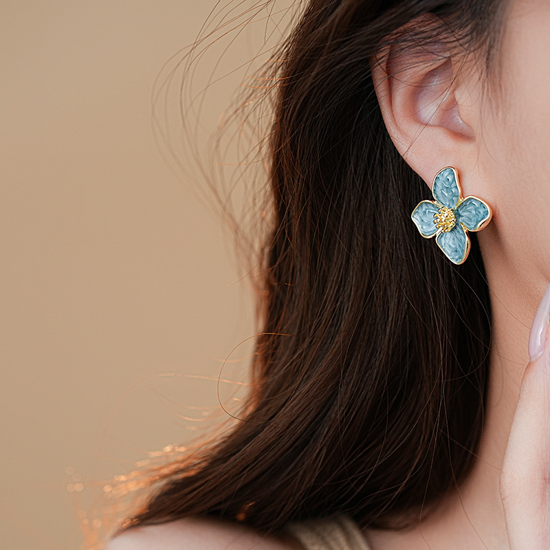 气质滴釉花朵耳钉款法式文艺复古风耳环小众轻奢高级感耳饰女