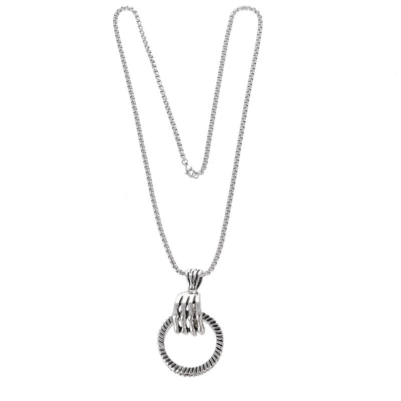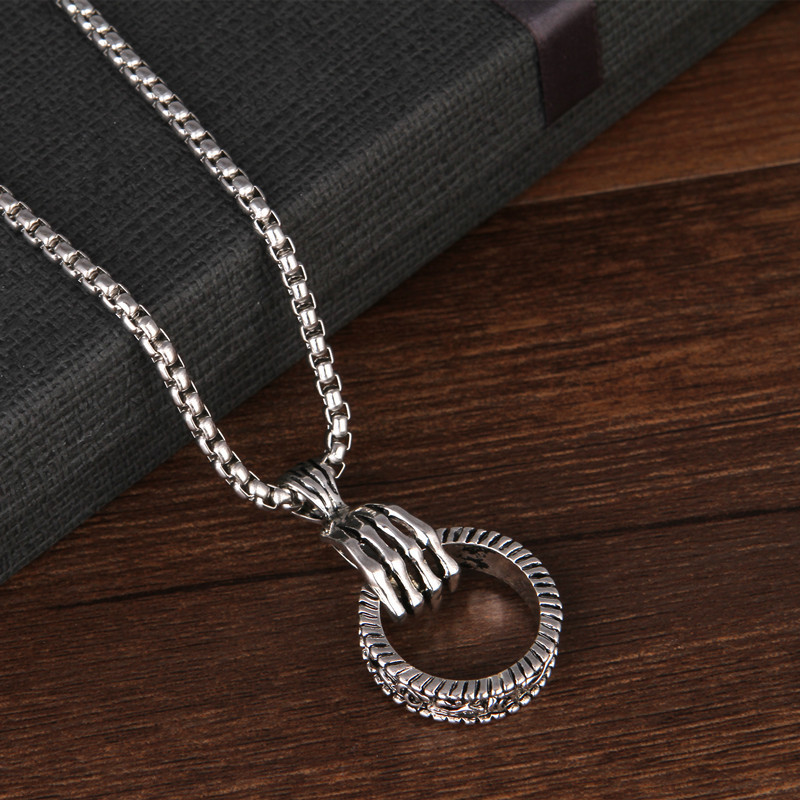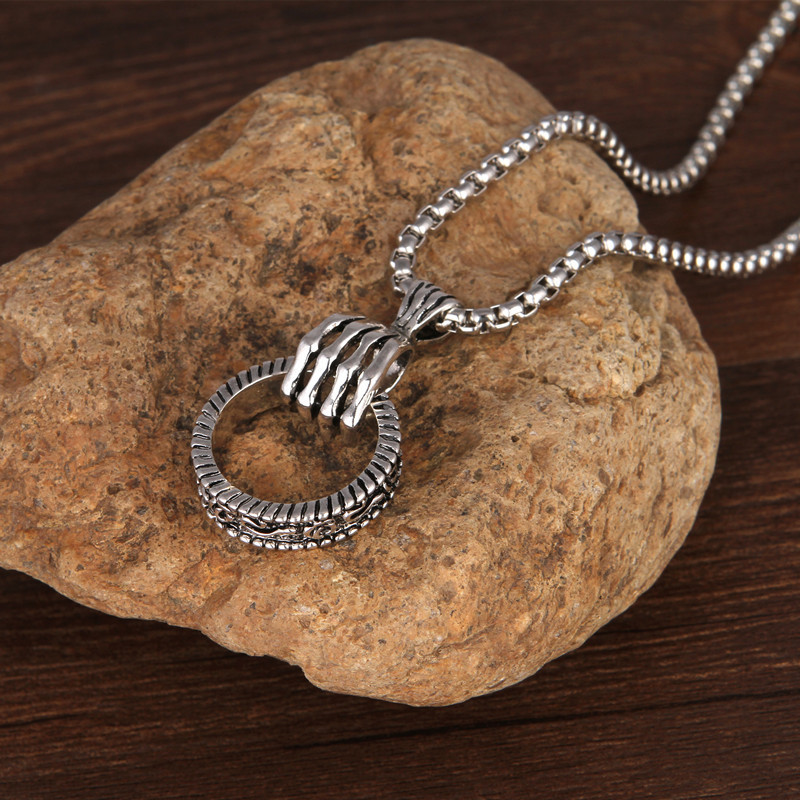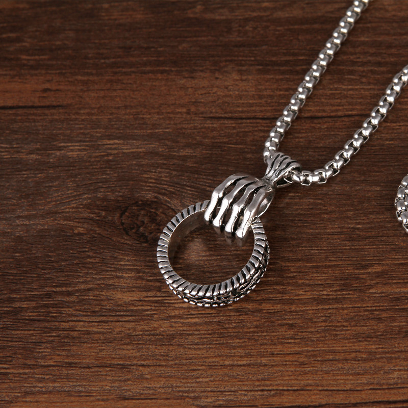 欧美复古银长挂件潮男女个性哥特式朋克风格骷髅手抓戒指环吊坠项链