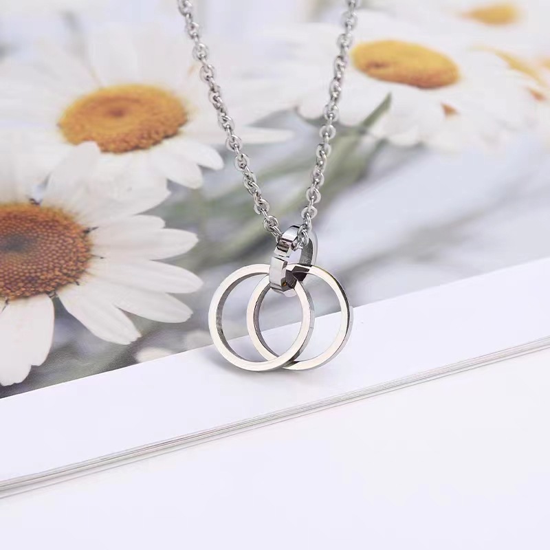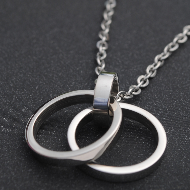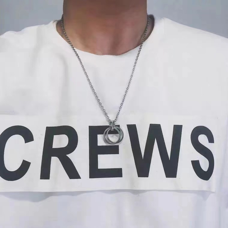 韩版简约双环吊坠男嘻哈个性网红戒指项链ins潮人情侣毛衣链