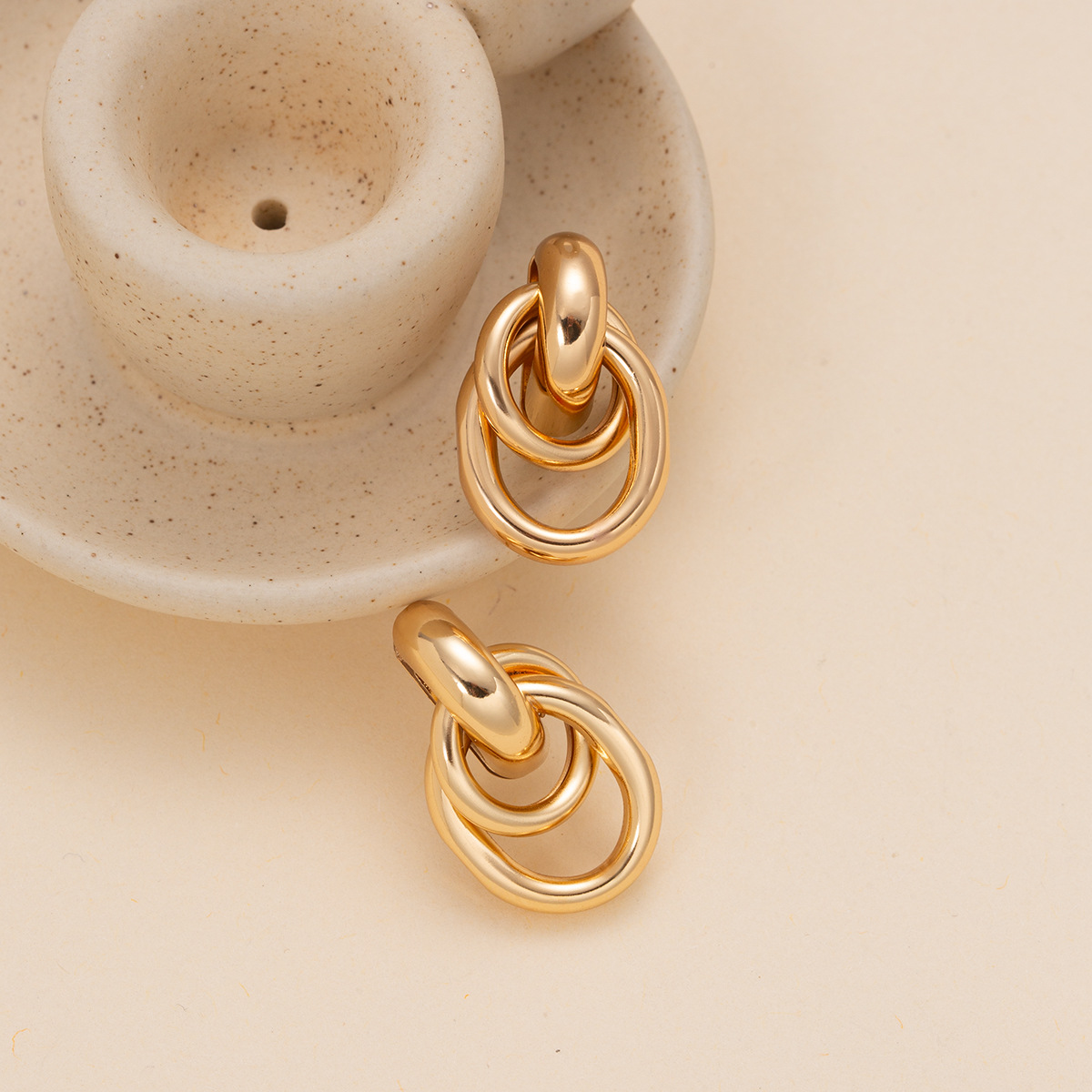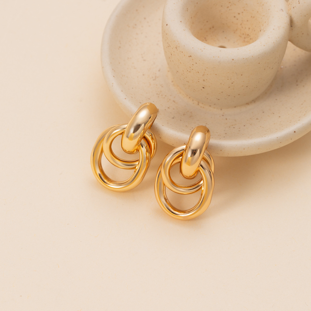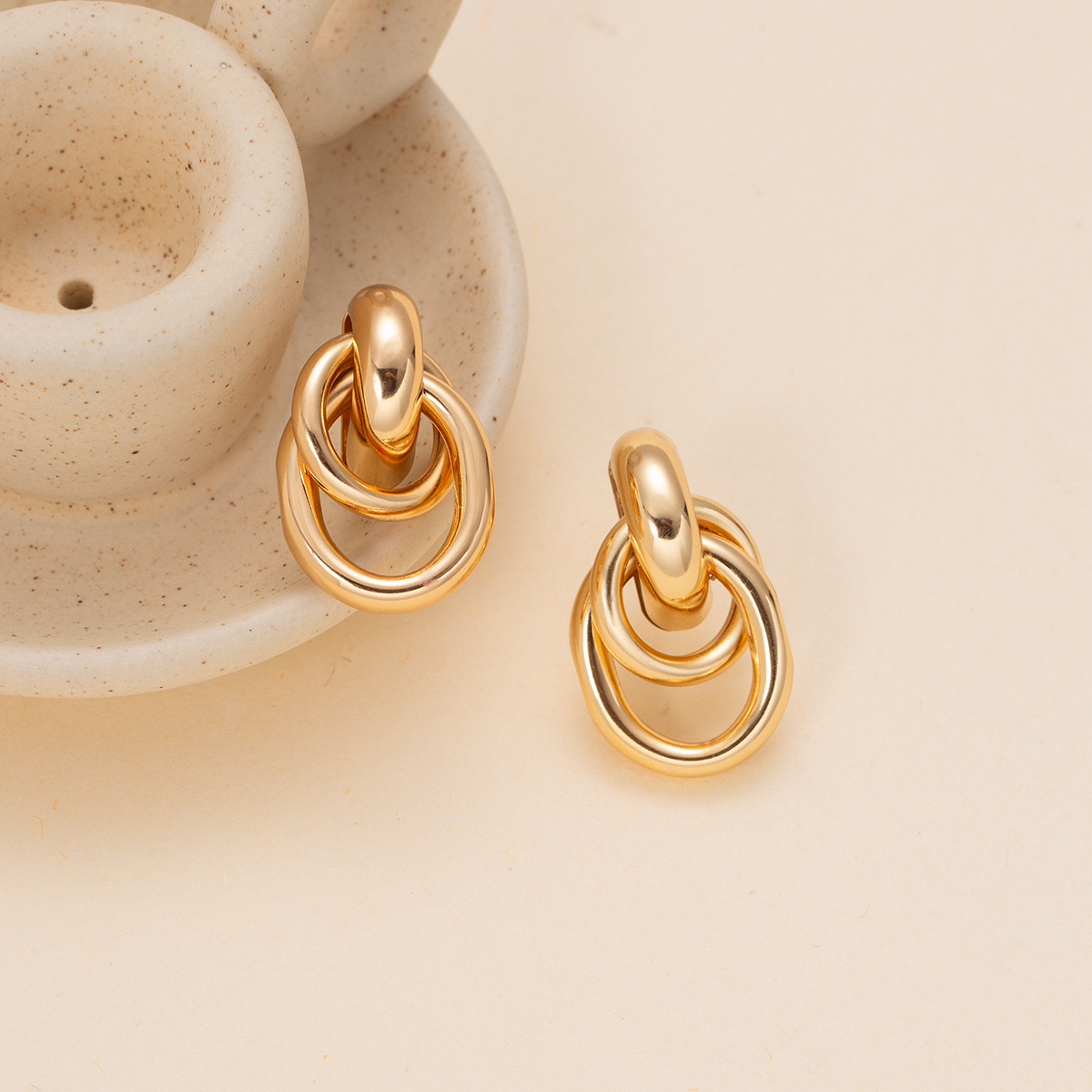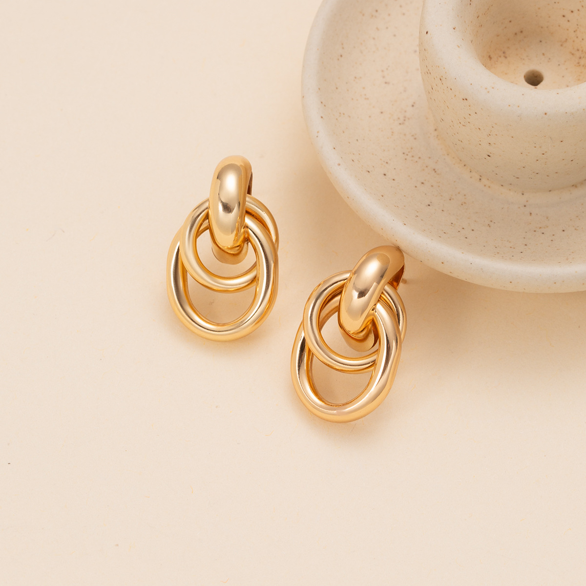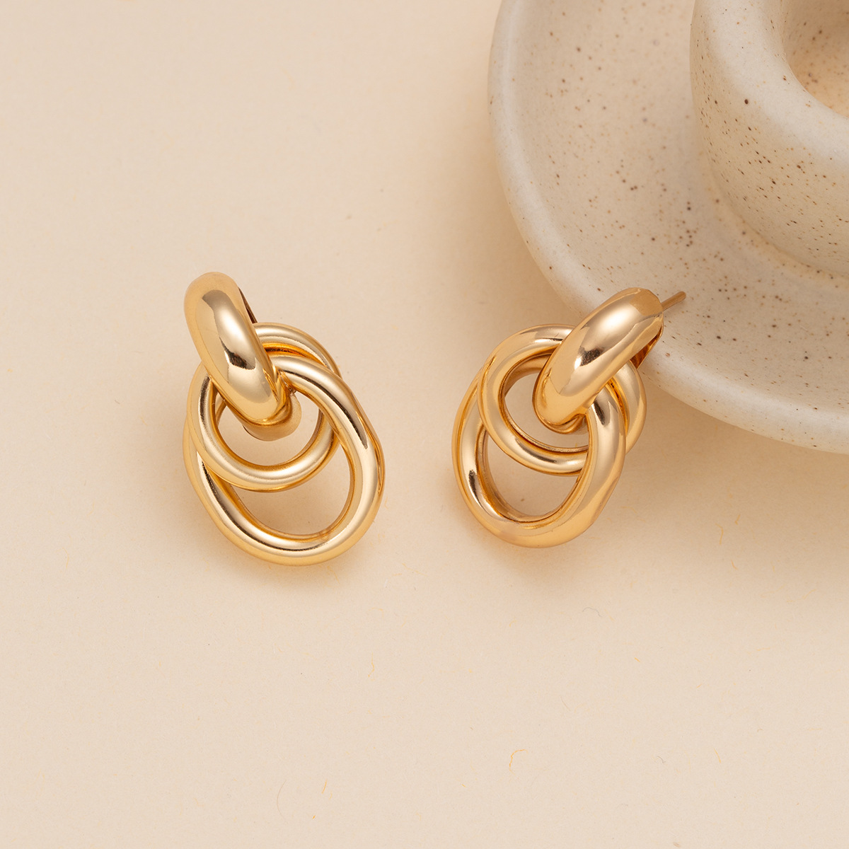 欧美风金色不规则空心管耳钉气质优雅几何多层环形耳饰耳饰女批发