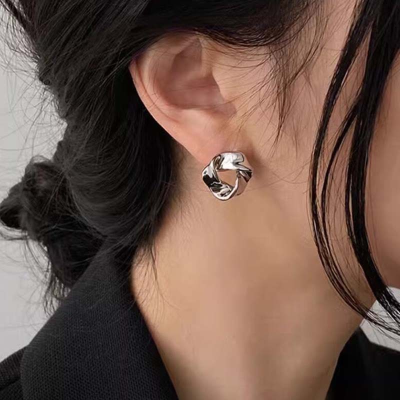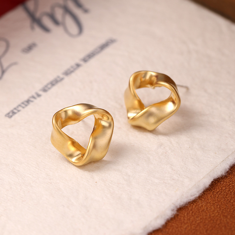 韩国简约小巧新品港风银针耳环复古三角扭曲耳钉轻奢哑光高级感个性潮耳饰
