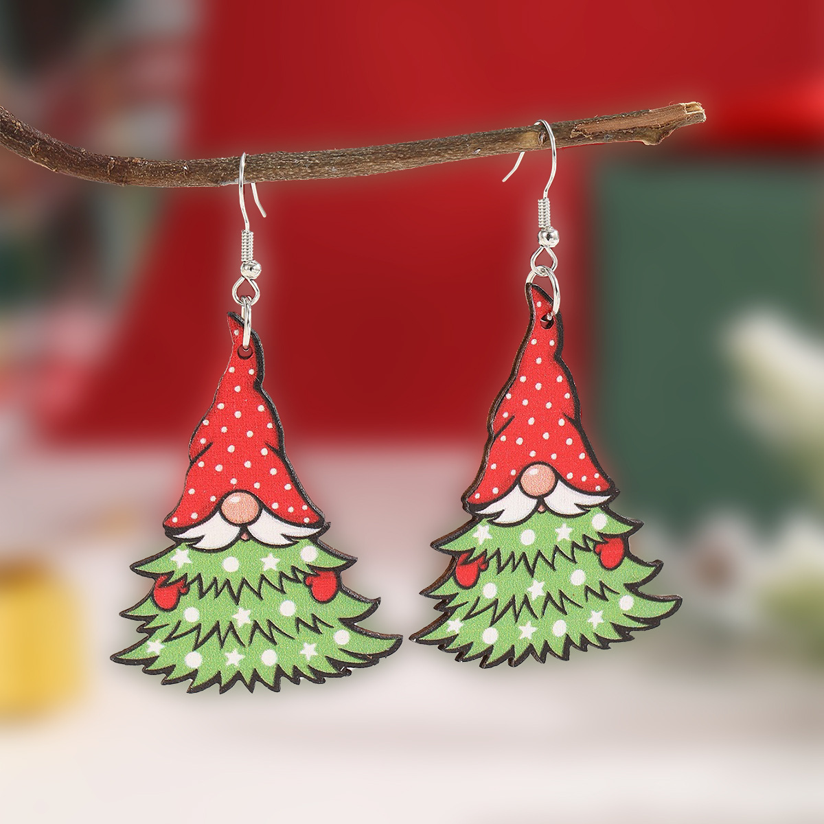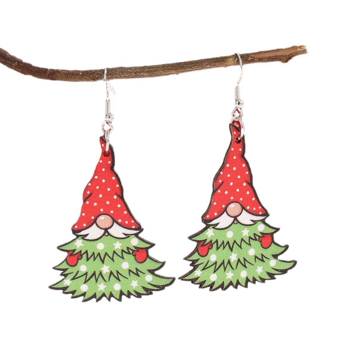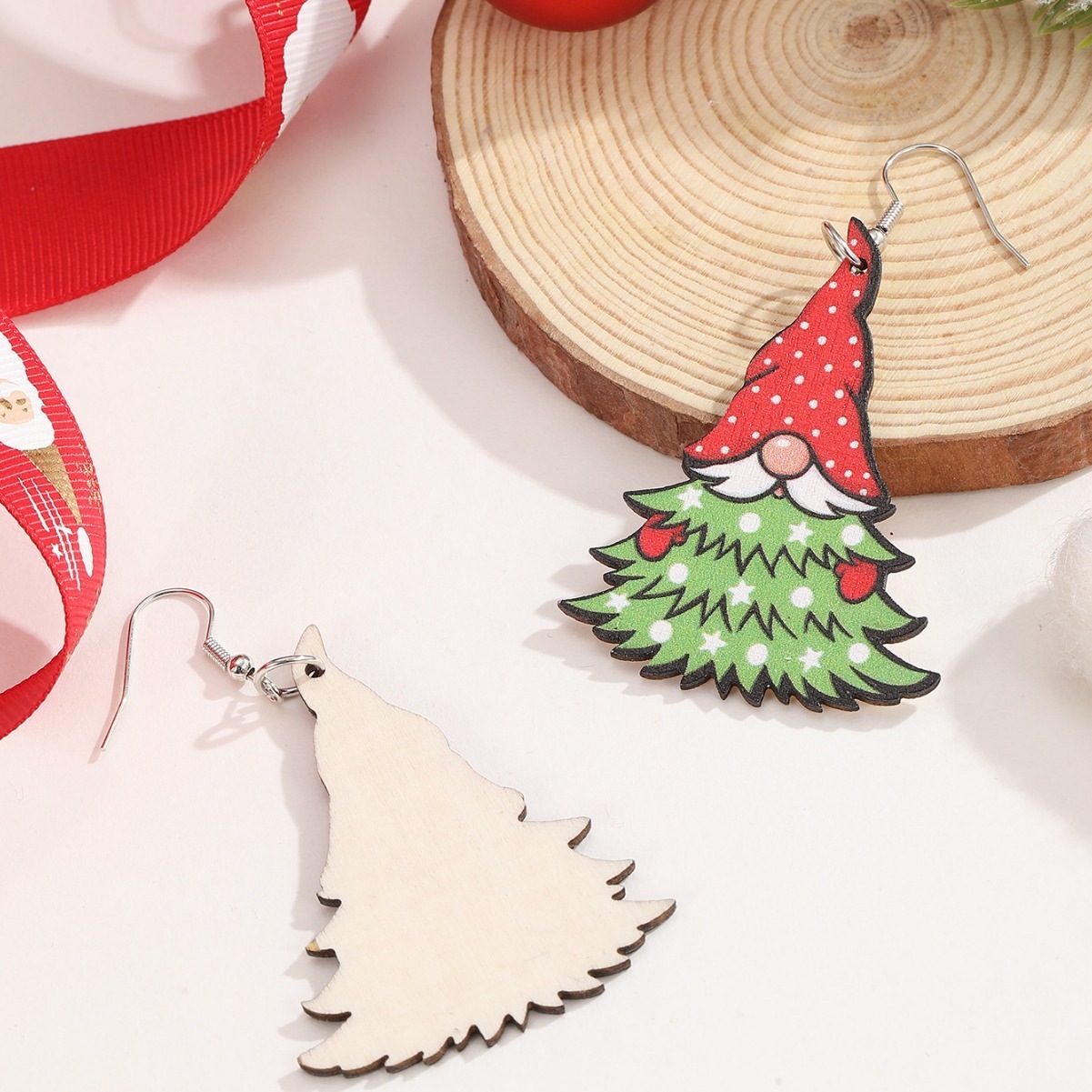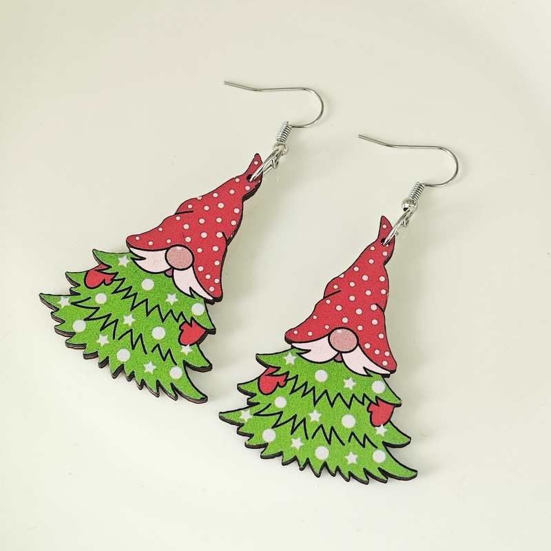 欧美新款创意圣诞节木片耳饰跨境热卖圣诞老人衔接圣诞树木质耳环