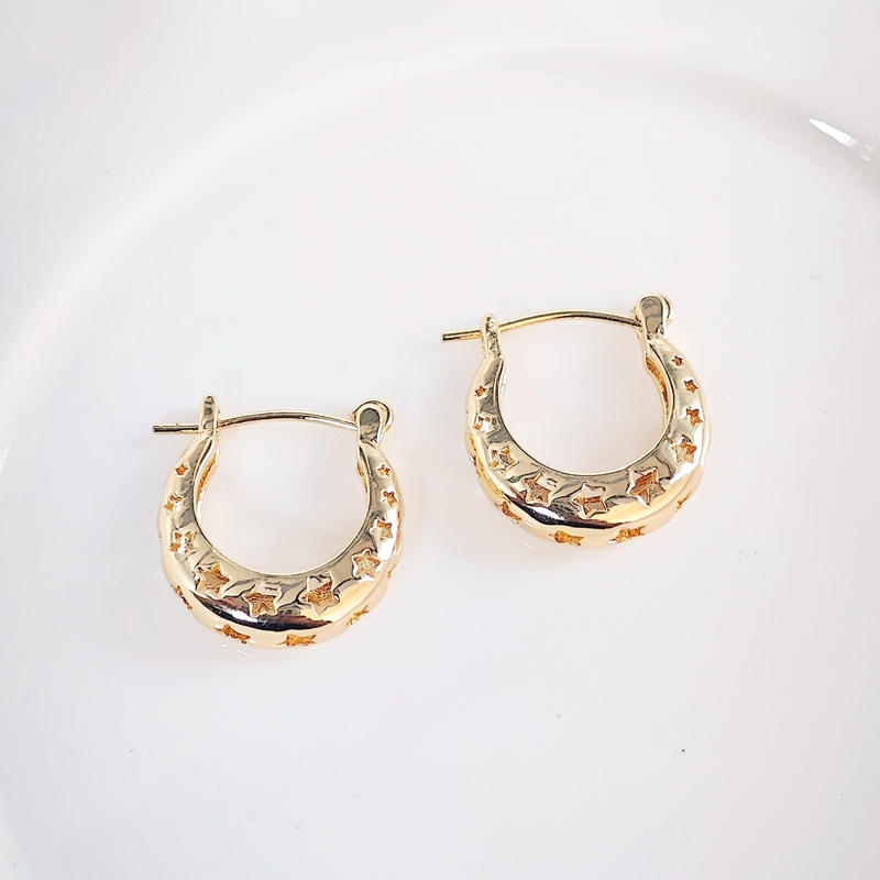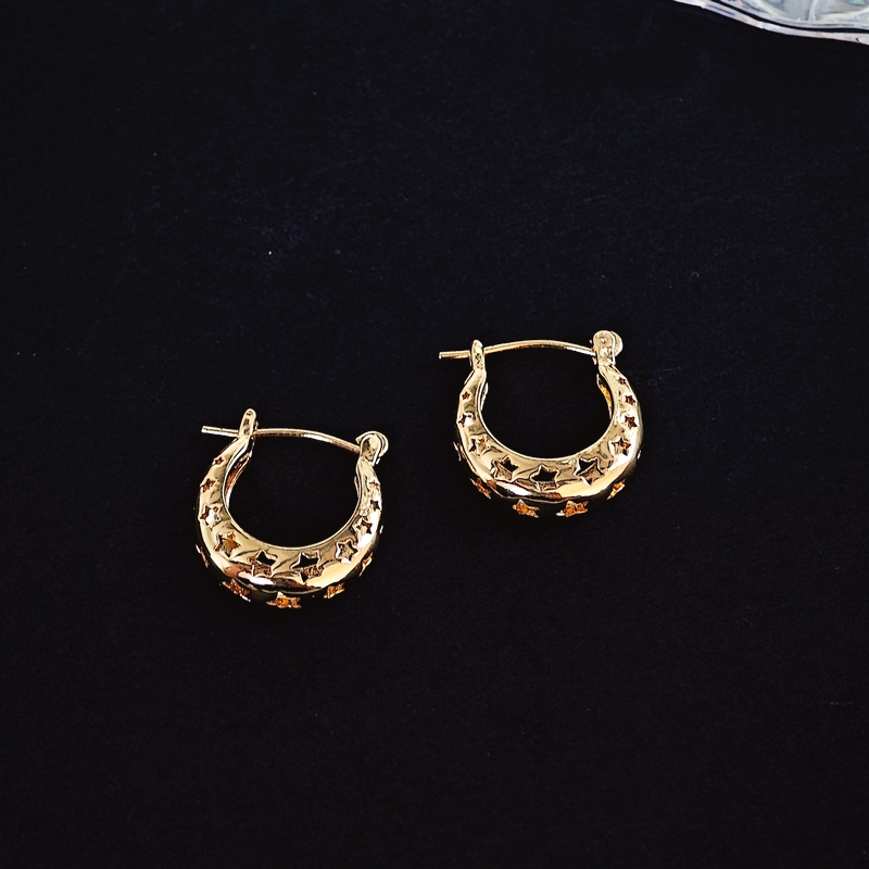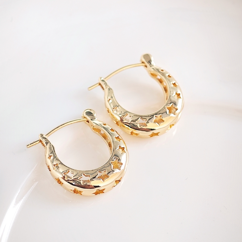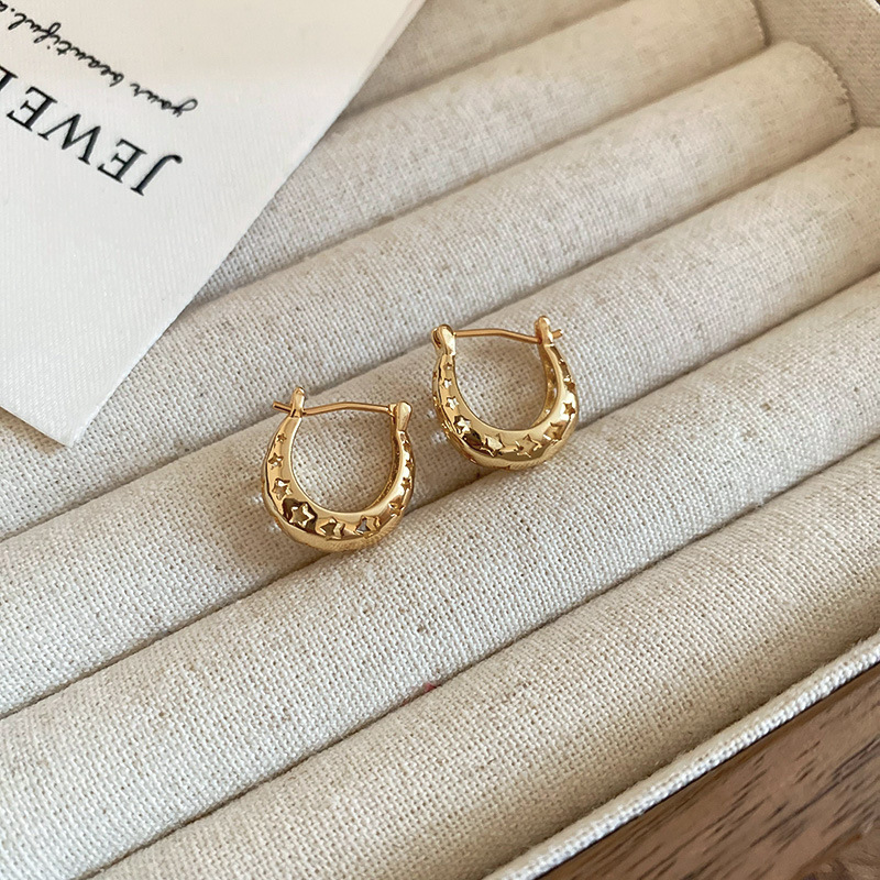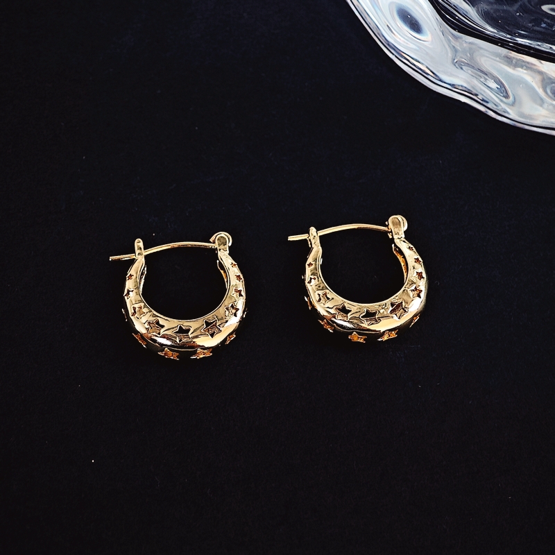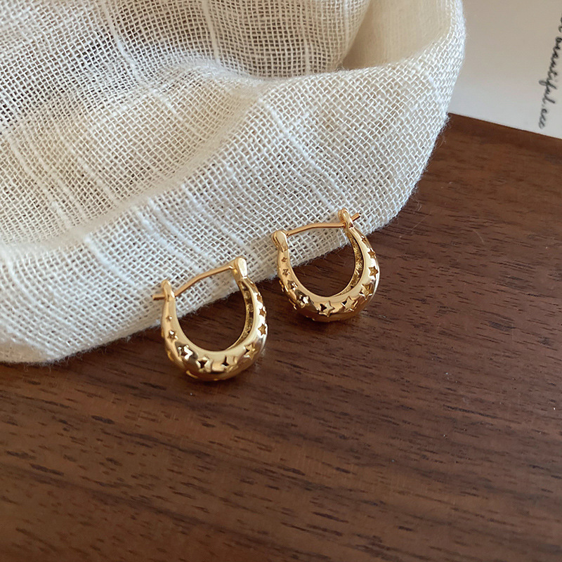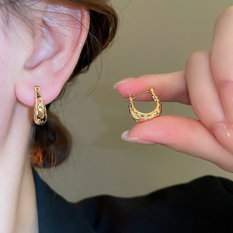 【铜产品】韩国镂空星星耳环金属几何耳扣耳圈ins风潮流设计感耳饰