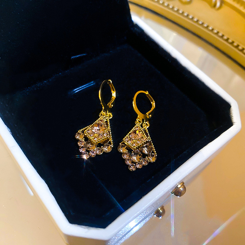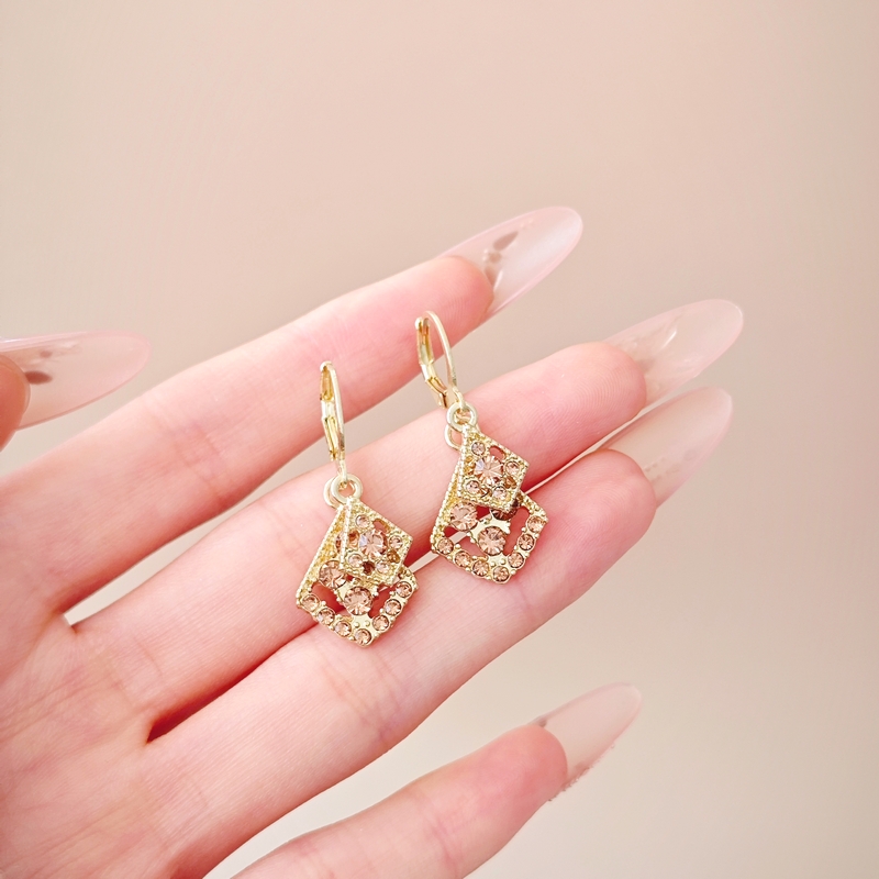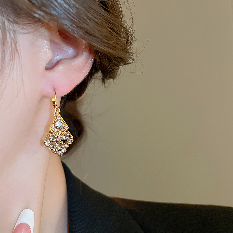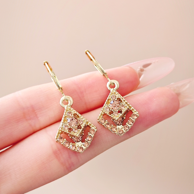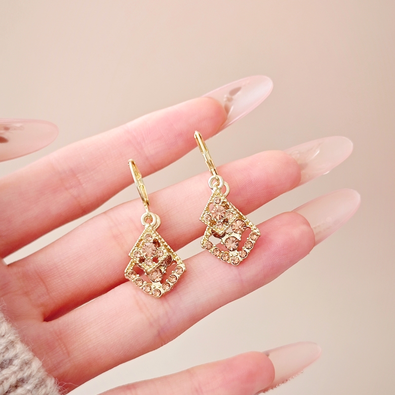 跨境新品菱形镶钻耳扣个性时尚设计感耳环高级感轻奢气质耳饰批发