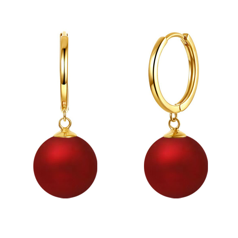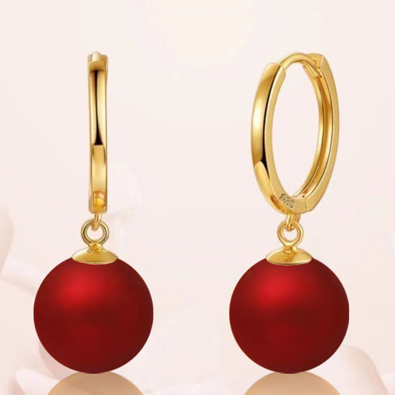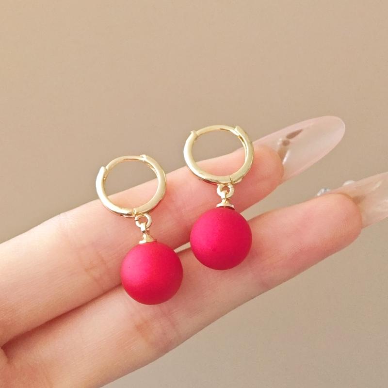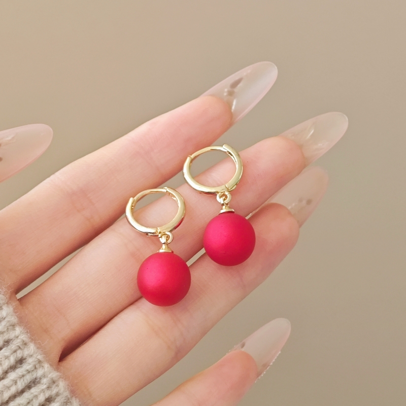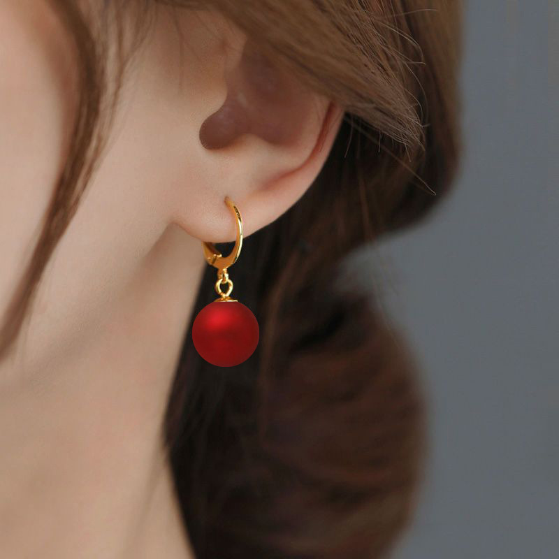 韩国精致时尚简约安可拉红珍珠耳扣女小众轻奢设计感气质百搭耳坠批发