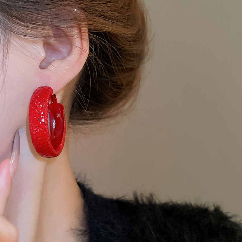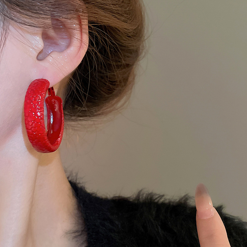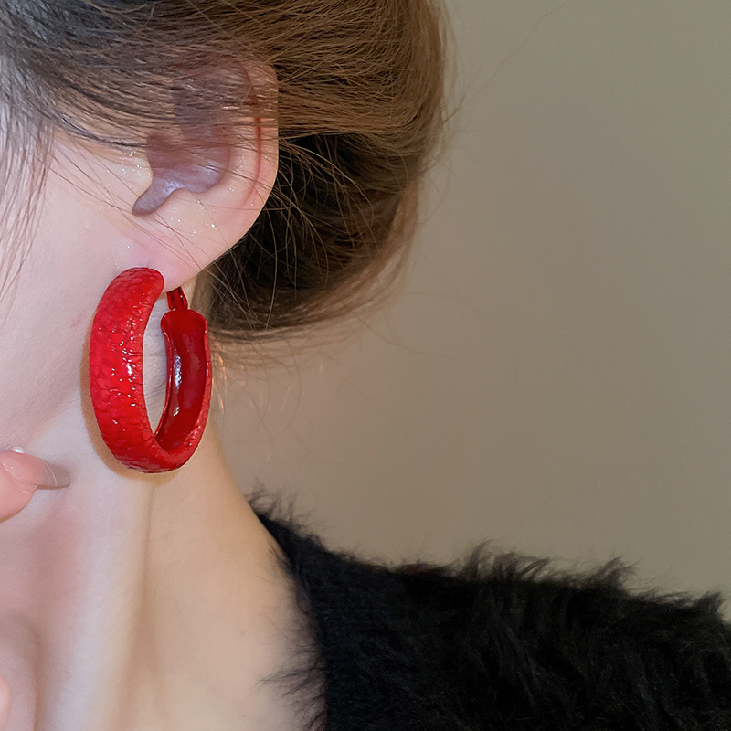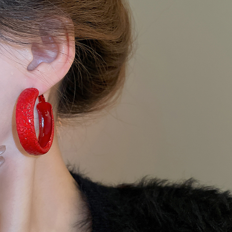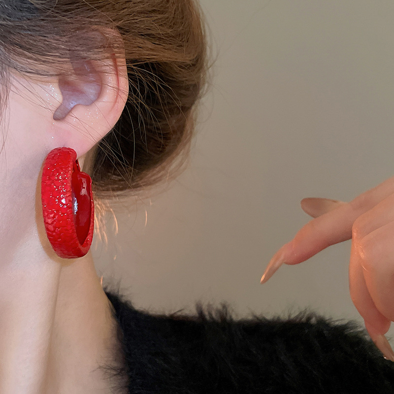 韩国安可拉红色喷漆纹路耳环简约设计感耳圈新品潮流高级感耳饰女