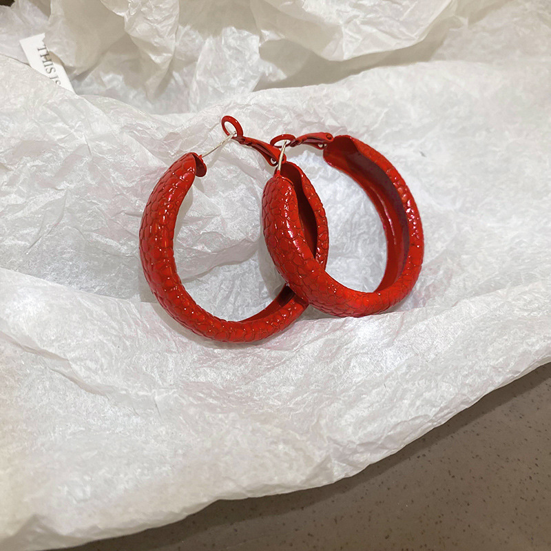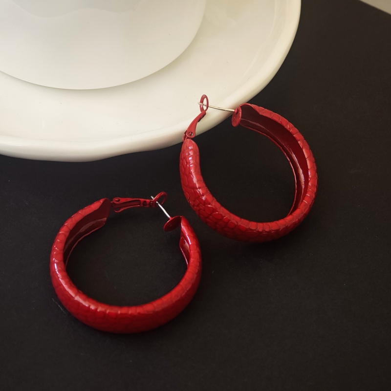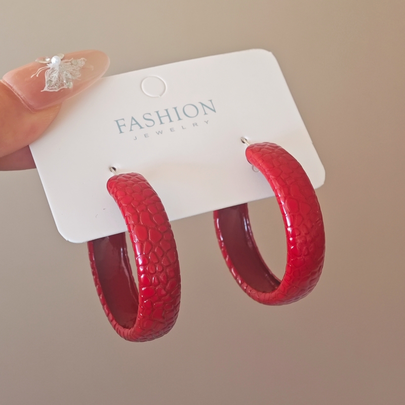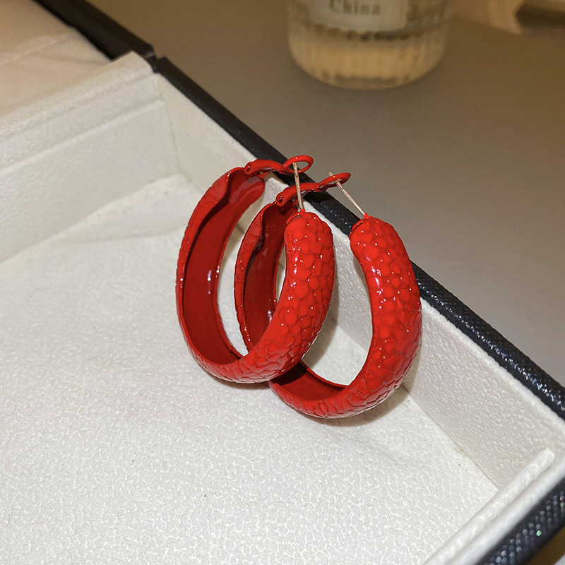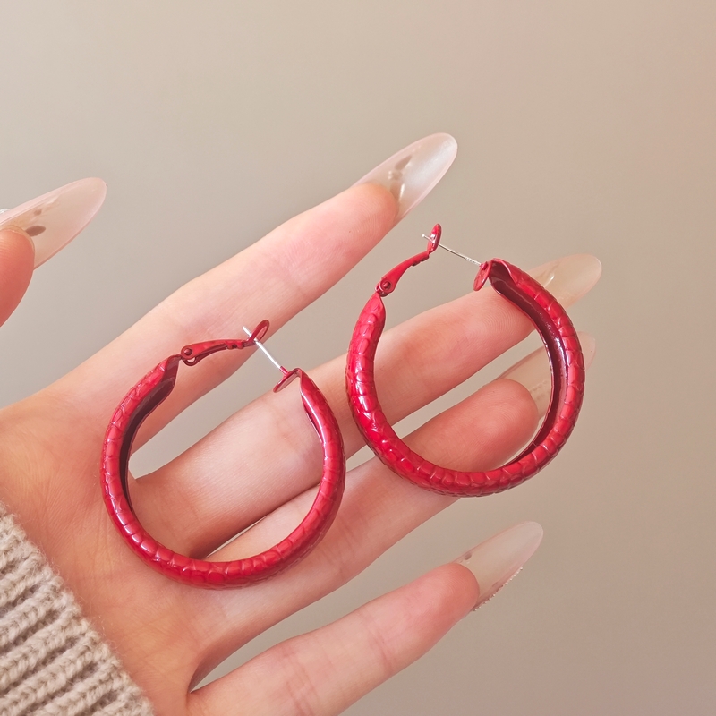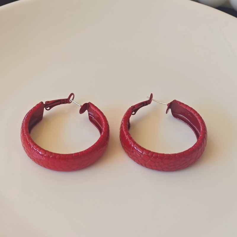 韩国安可拉红色喷漆纹路耳环简约设计感耳圈新品潮流高级感耳饰女