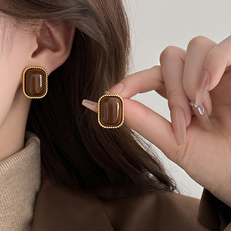 美拉德扭曲纹路几何耳钉复古港风气质耳环时尚简约耳饰高级感